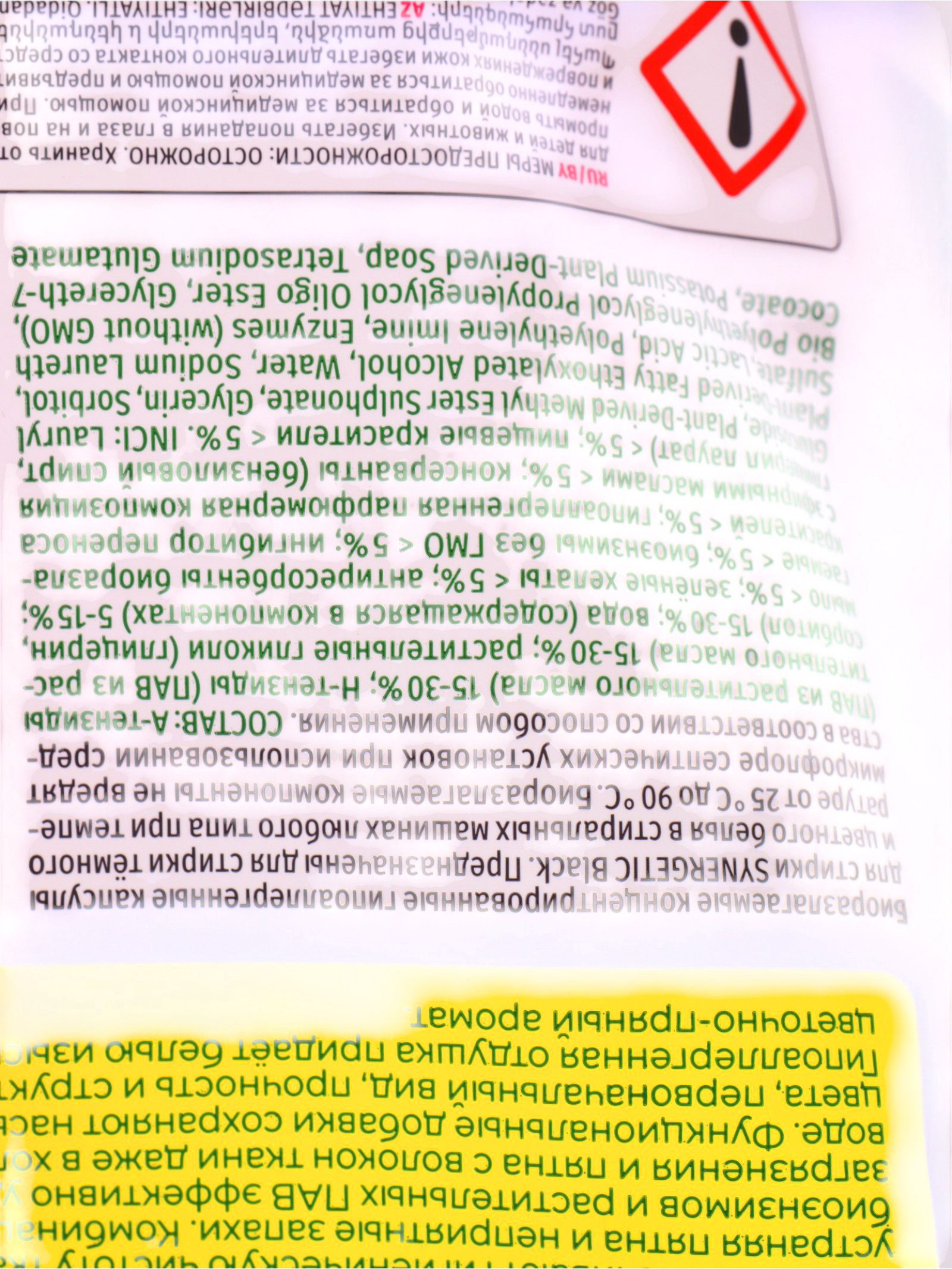 Способ применения: Поместите одну капсулу в барабан стиральной машины перед загрузкой белья. Не вскрывайте капсулу вручную. Выберите подходящий режим стирки и запустите машину. Капсулы для стирки темного и цветного белья SYNERGETIC WHITE "Табак и Ваниль", 100 шт это удобное, безопасное и эффективное решение для поддержания насыщенности цветов, мягкости ткани и свежего аромата белья при каждой стирке. | ||
