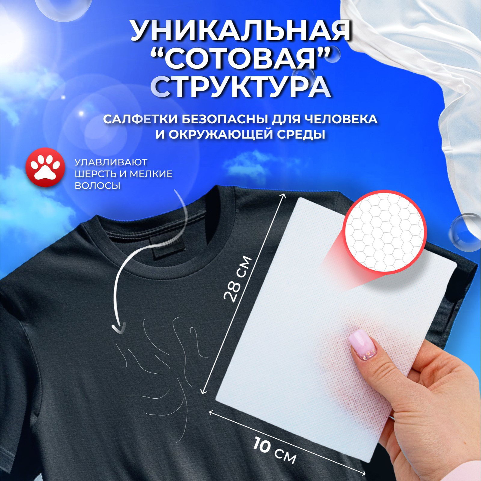 Размер упаковки: 12 x 16 x 6 см. tnved: 3402500000 Запрет реализации по сегментам: 00000000208 В упаковке, шт.: 50 Назначение: Для цветных тканей Активные салфетки для стирки "Мой выбор" препятствуют окрашиванию тканей и дают возможность стирать белую и разноцветную одежду вместе. Краски остаются яркими и насыщенными, чёрное чёрным, а белое белым. Способ применения: