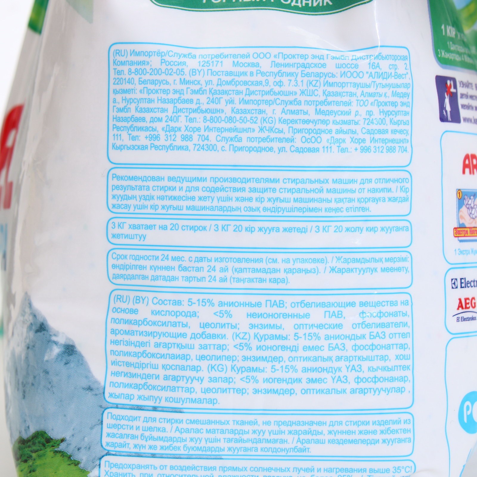 Порошок стиральный автомат "Горный родник", 3 кг, Ariel, Россия
