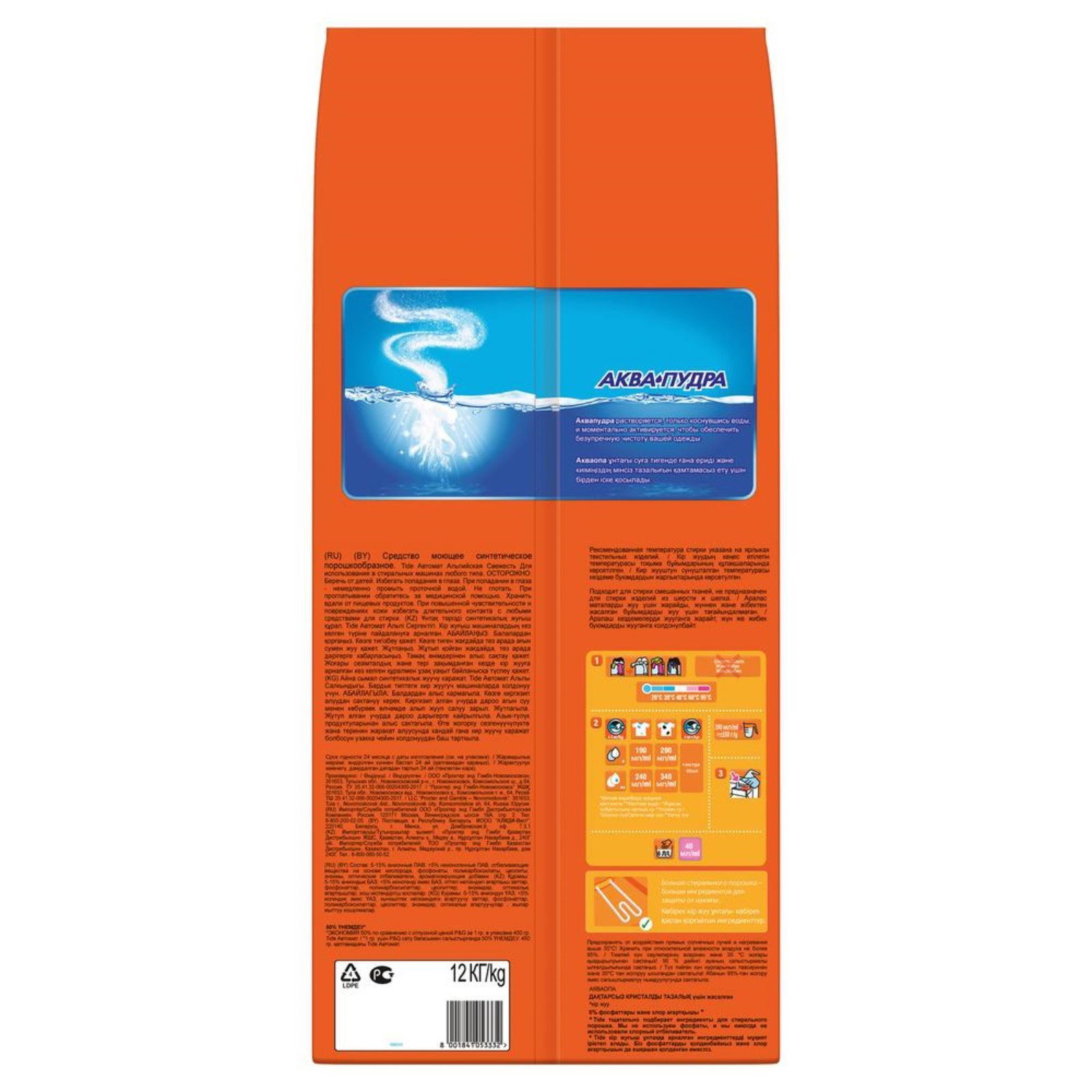 Стиральный порошок "Альпийская свежесть", автомат, 12 кг, 25x10x62 см., Tide, Россия