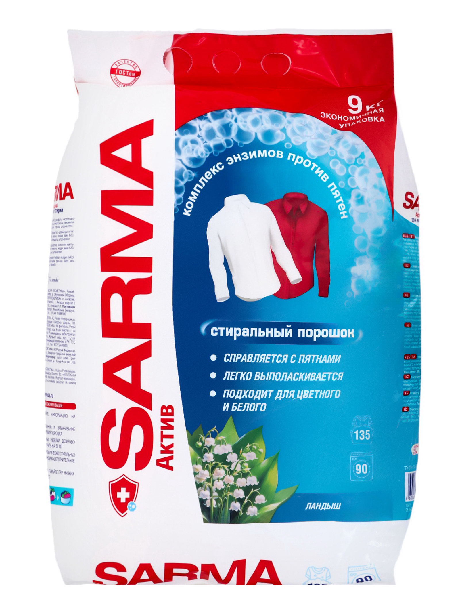 Размер упаковки: 28 x 11 x 38 см. tnved: 3402500000 Назначение: Для всех видов тканей Вид стирки: Для всех видов стирки Вес, кг: 9 Запрет реализации по сегментам: 00000000208 Стиральный порошок Сарма Актив Ландыш 9 кг, предназначен для всех типов стирки. 5 Энзимов против пятен. Легко выполаскивается, сохраняет волокна тканей, защищает стиральную машину от накипи,подходит для цветных тканей. Антибактериальный эффект без хлора. Состав: 15-30%: фосфаты, 5-15%: кислородный отбеливатель, анионные ПАВ, <5%: поликарбоксилаты, энзимы, пеногаситель, неионогеннеы ПАВ, оптический отбеливатель, отдушка, цитронеллол | ||