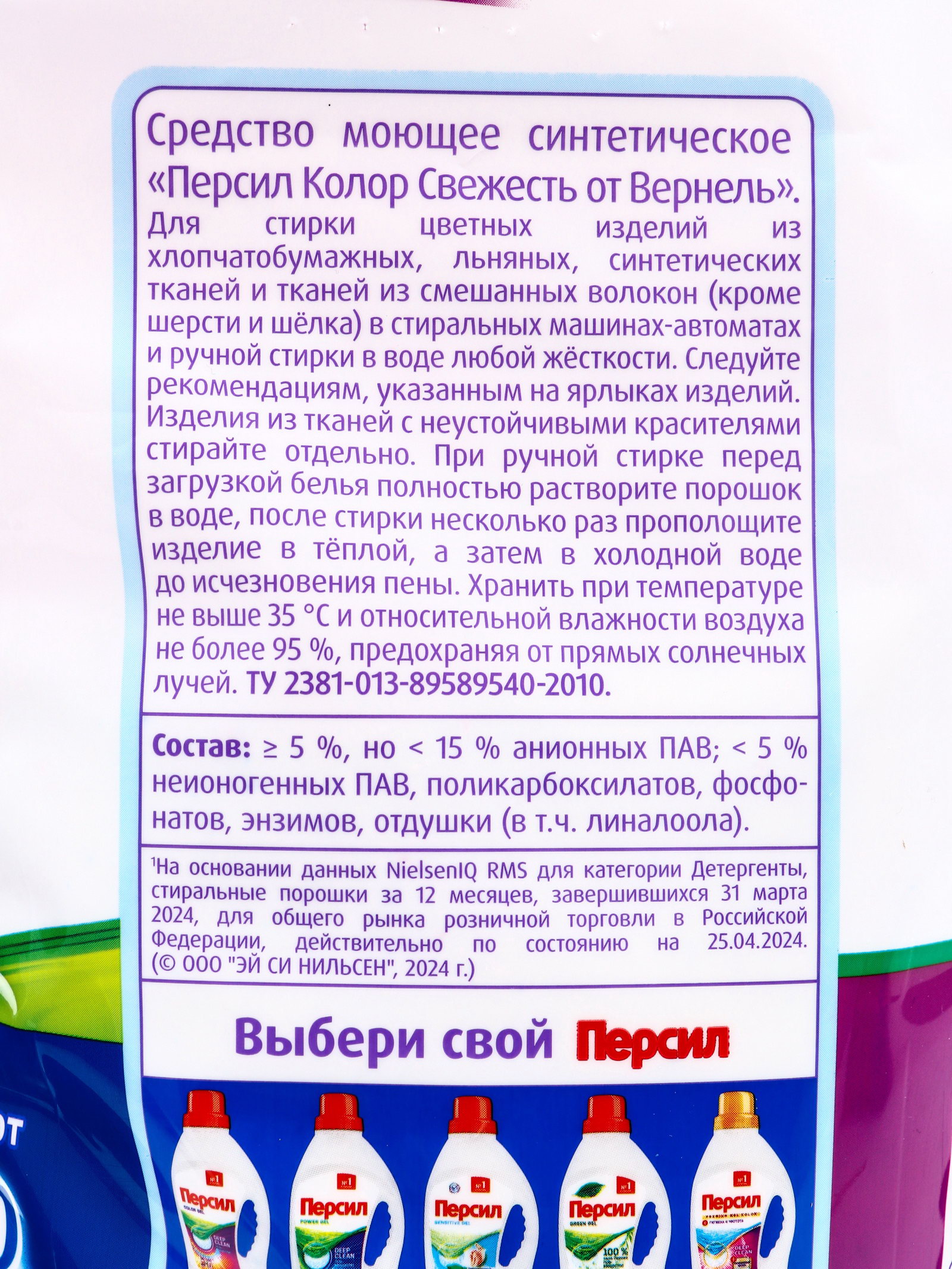Стиральный порошок Color "Свежесть от Вернель" для цветного белья, 8 кг, Персил, Россия