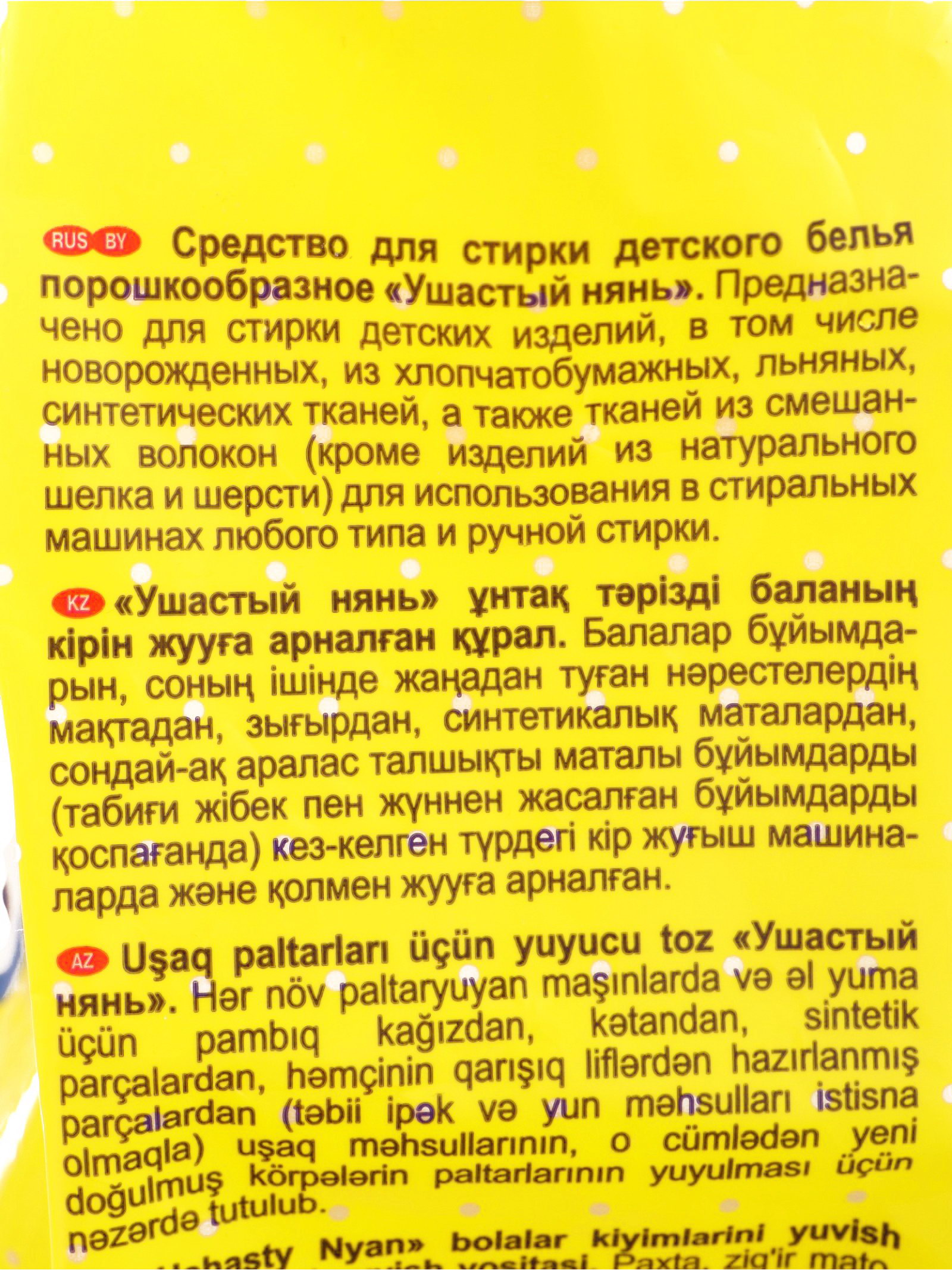 Стиральный порошок для детского белья, 2.4 кг, 13x27x30 см., Ушастый нянь, Россия