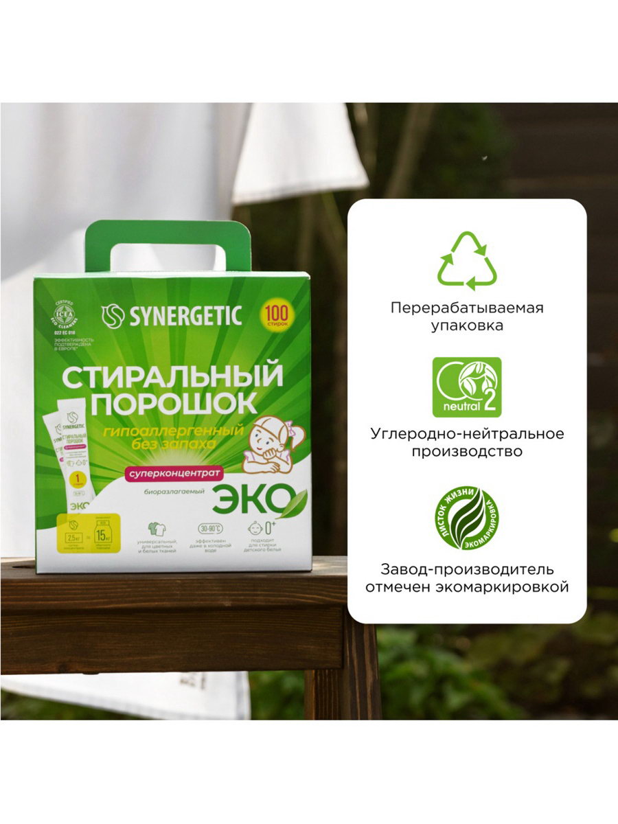 Порошок для стирки универсальный, 100 стирок, Synergetic, Россия