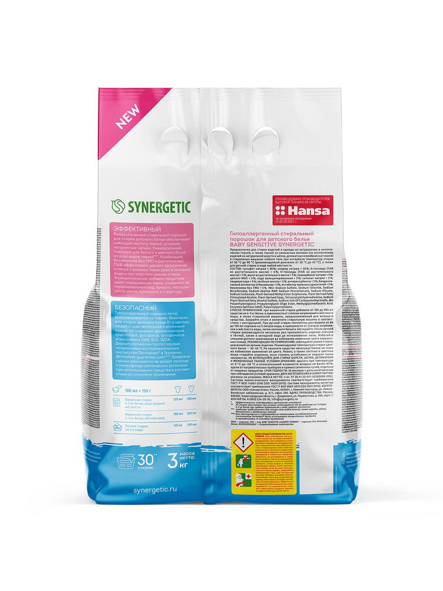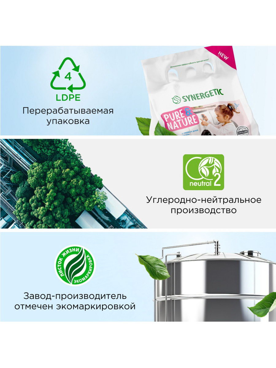 Стиральный порошок "Детский", 3 кг, Synergetic, Россия