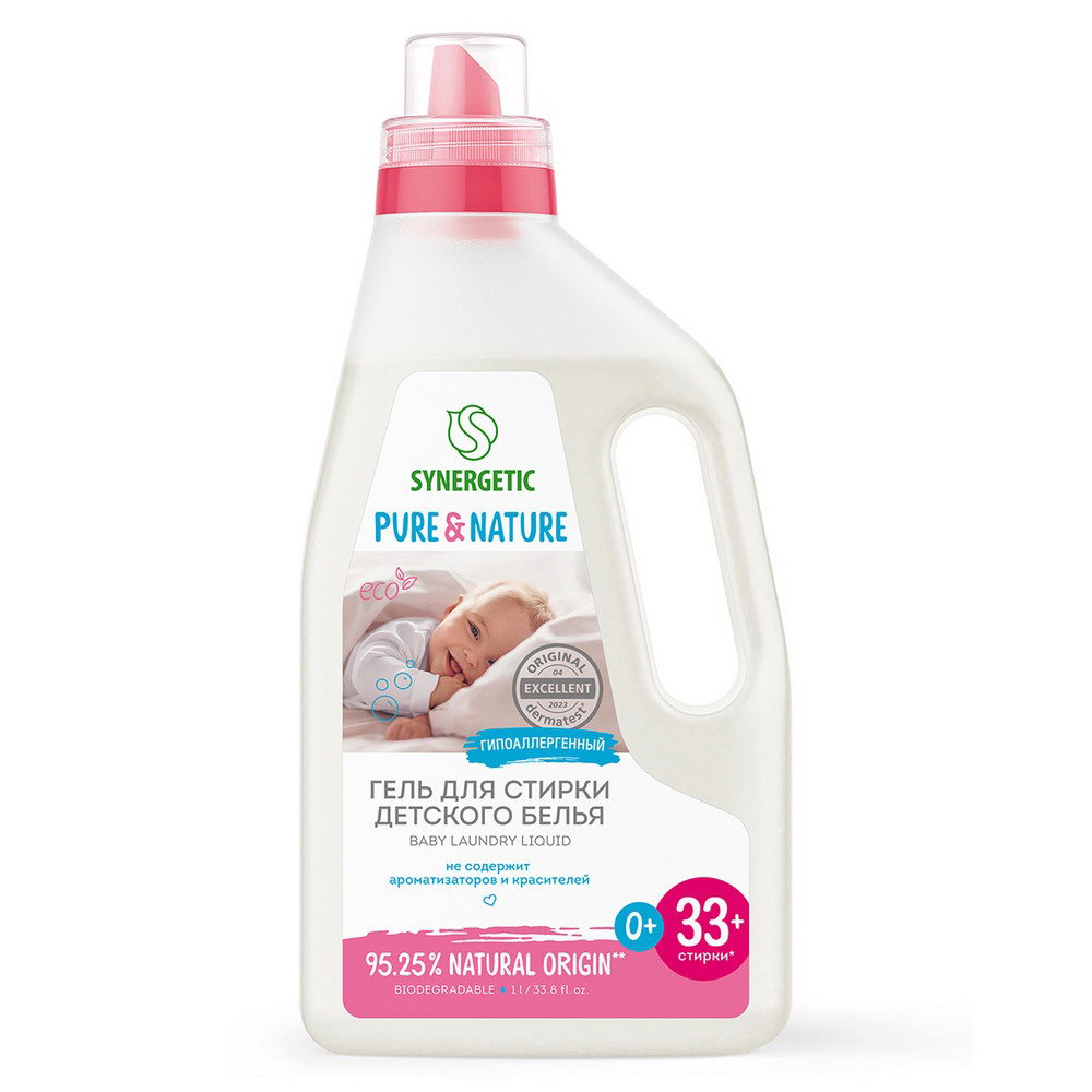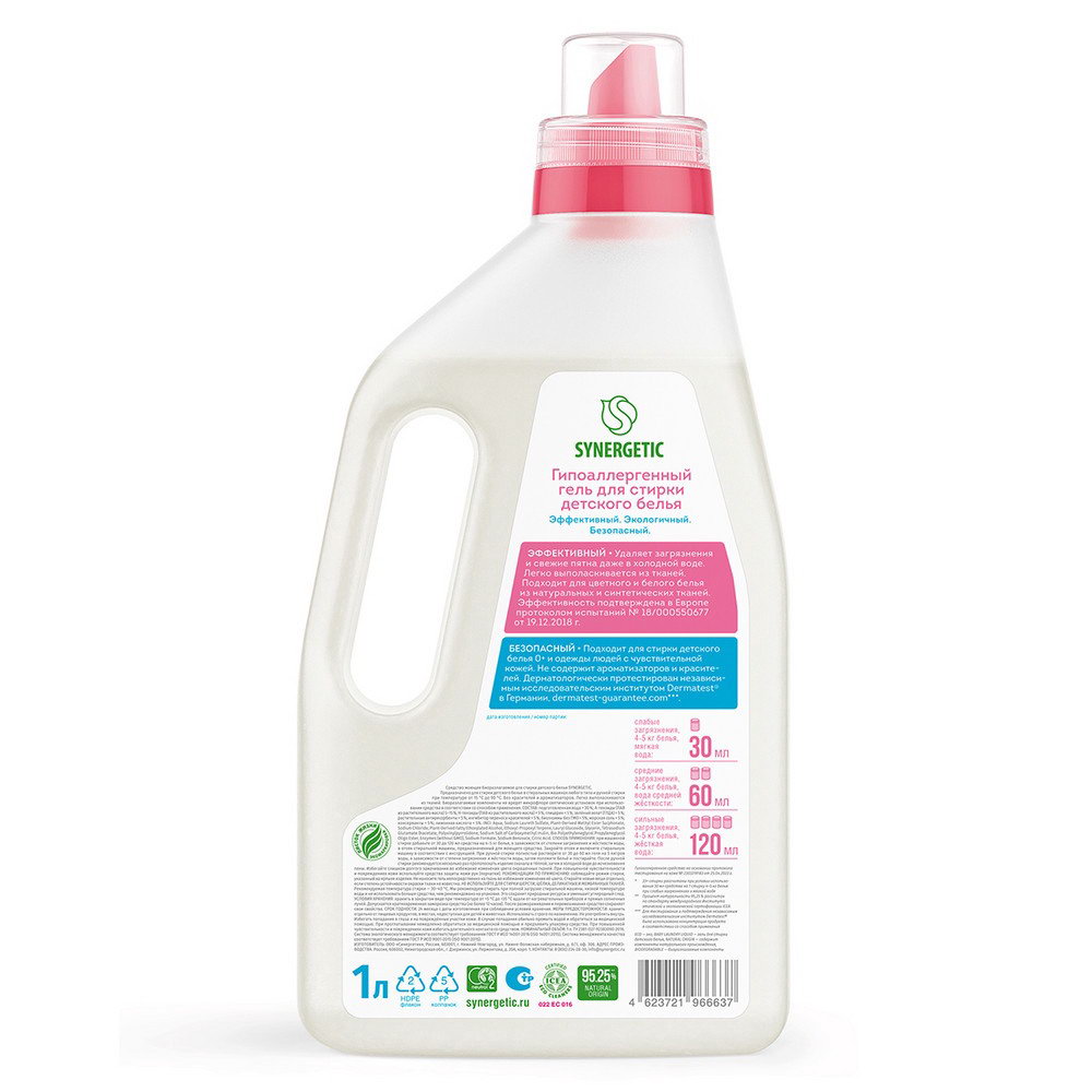 Жидкое средство для стирки гель, для детского белья, 1 л, 1000 мл., Synergetic, Россия