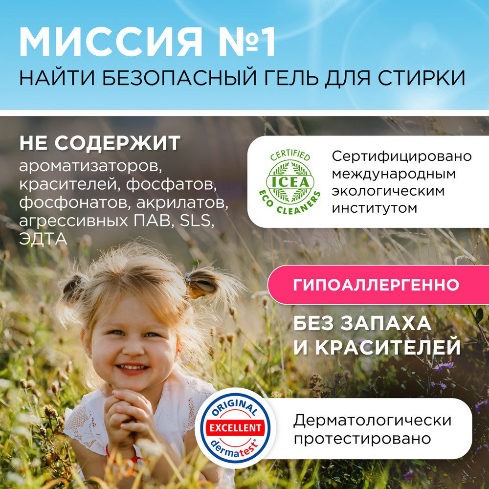Размер упаковки: 9 x 6.5 x 26.5 см. Назначение: Для детского белья Вес, г/Объём, мл: 1000 Вид стирки: Для всех видов стирки Ароматизированные: Нет Антибактериальное: Нет Вес/Объём: 1 л Вес/Объём: 1 л tnved: 3402500000 Вид средства: Гель Запрет реализации по сегментам: 00000000208 Особенности средства: Гипоаллергенность Биоразлагаемый концентрированный гель для стирки SYNERGETIC для детского белья обеспечивает бережное и эффективное очищение тканей и устраняет неприятные запахи. Уникальный комплекс растительных тензидов и зеленых хелатов эффективно удаляет загрязнения и свежие пятна с волокон ткани даже в холодной воде. Функциональные добавки предотвращают окрашивание, а также повторное оседание загрязнений на ткани, сохраняя ее первоначальный вид, насыщенность цвета, прочность и структуру. Гель предназначен для стирки цветного и белого белья из натуральных и синтетических тканей, для детского белья 0+ и одежды людей с чувствительной кожей. Средство можно использовать в стиральных машинах любого типа и при ручной стирке при температуре 20 - 90 °C. Биоразлагаемый гель полностью выполаскивается из тканей. Для автоматической стирки от одного до четырех колпачков средства, в зависимости от степени загрязнения и жесткости воды. Для ручной стирки добавить средство в воду от одного до четырех колпачков на пять литров воды, в зависимости от степени загрязнения и жесткости воды. Соблюдайте режим стирки, указанный на ярлыке изделия. Не наносите гель непосредственно на ткань во избежание изменения ее цвета. Стирайте цветные вещи при температуре не выше 40 °C. Новые, а также белые и цветные вещи стирайте отдельно, если степень устойчивости окраски ткани не известна. Не используйте для стирки шерсти, шелка, деликатных и мембранных тканей. Хранить отдельно от пищевых продуктов, в местах, недоступных для детей и животных. Избегать попадания в глаза, рот и на повреждённые участки кожи. В случае попадания обильно промыть водой и обратиться за медицинской помощью. Использовать перчатки. Не смешивать с другими средствами бытовой химии. Использовать строго по назначению. Не использовать на горячих и повреждённых поверхностях; поверхностях из мрамора и цветных металлов; деревянных поверхностях. Перед применением проверить совместимость средства с обрабатываемой поверхностью на небольшом незаметном участке. Состав:Подготовленная вода > 30%; комплекс биоразлагаемых кислот (гликолевая, лимонная, молочная) 5–15%; комплекс биоразлагаемых Н-тензидов (ПАВ из растительного масла) < 5%; загуститель (ксантановая камедь) < 5%; гипоаллергенная парфюмерная композиция с маслами грейпфрута, апельсина, померанца, мандарина < 0,5%; пищевой краситель < 0,5%. | ||