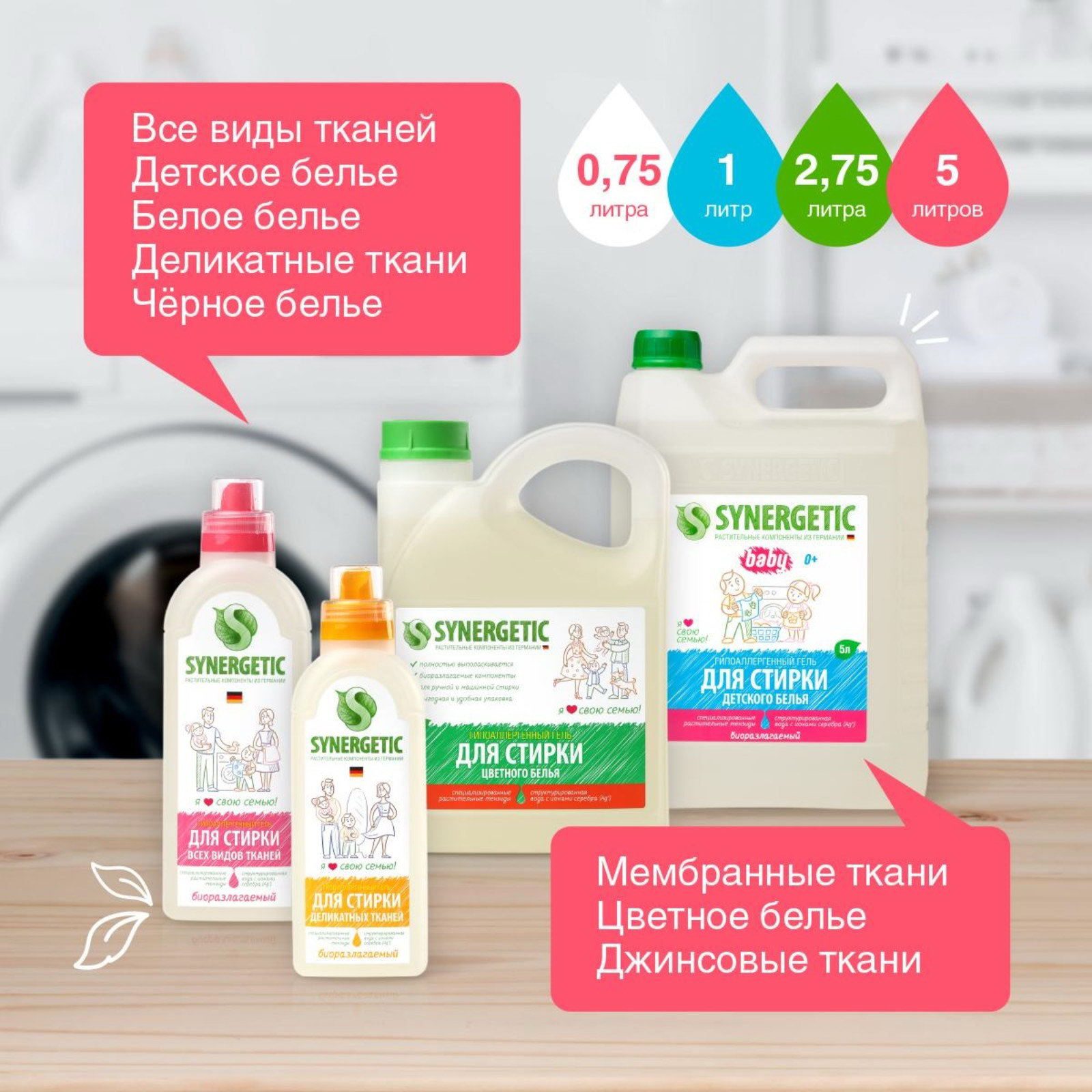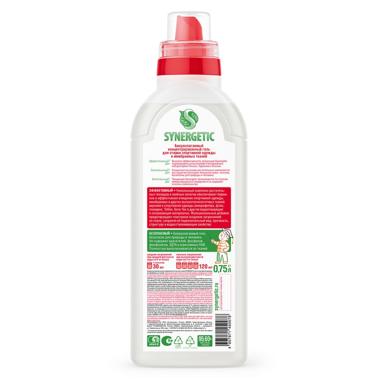 Жидкое средство для стирки гель, для спортивных и мембранных тканей, гипоаллергенное, 750 мл, 750 мл., Synergetic, Россия