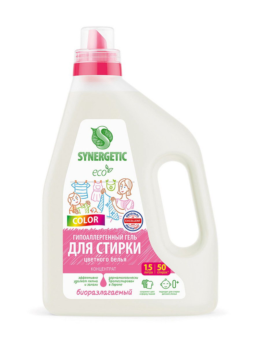 Гель для стирки цветного белья концентрат, 1.5 л, 1500 мл., Synergetic, Россия