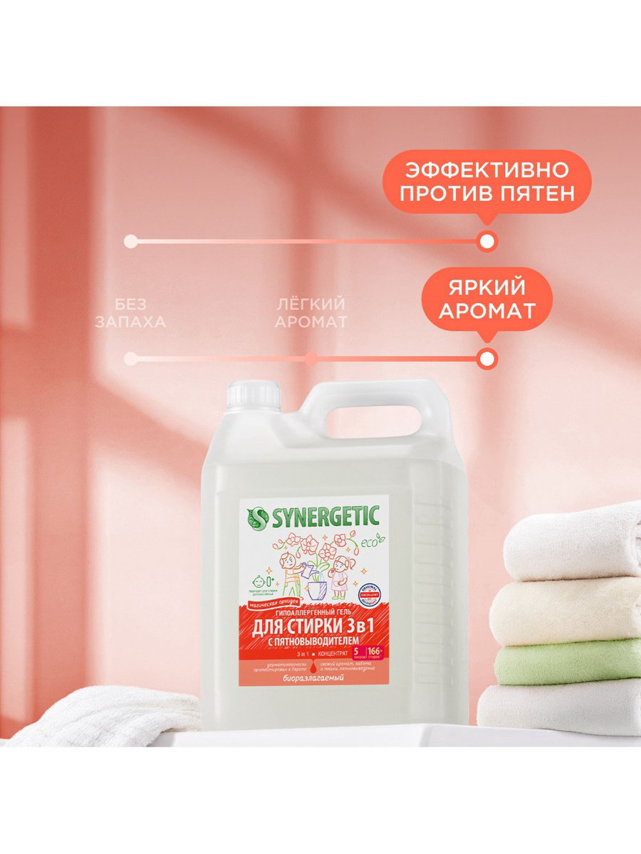 Гель для стирки 3 IN 1 "Магическая орхидея", гипоаллергенный, биоразлагаемый,5 л, 5000 мл., Synergetic, Россия