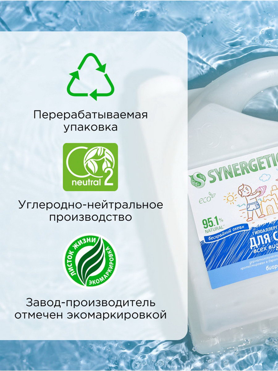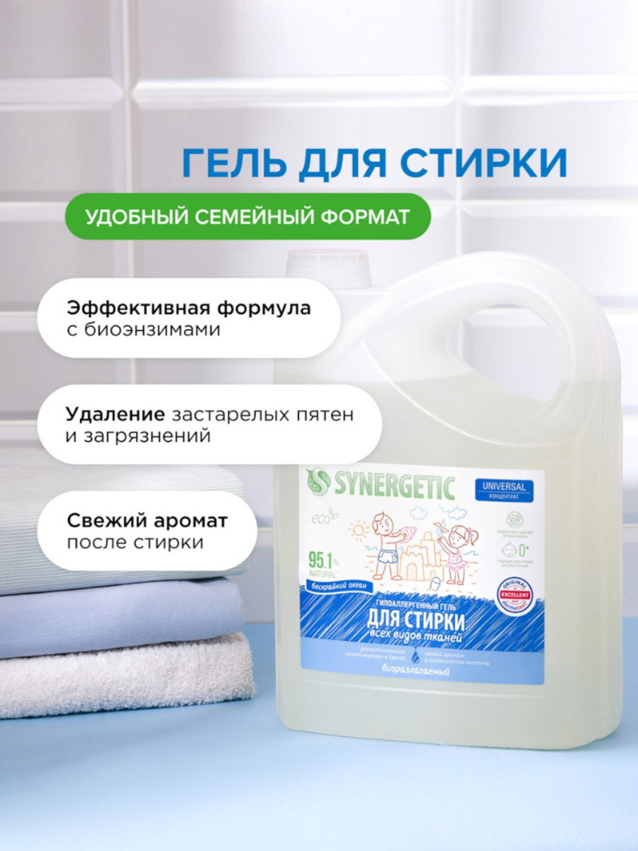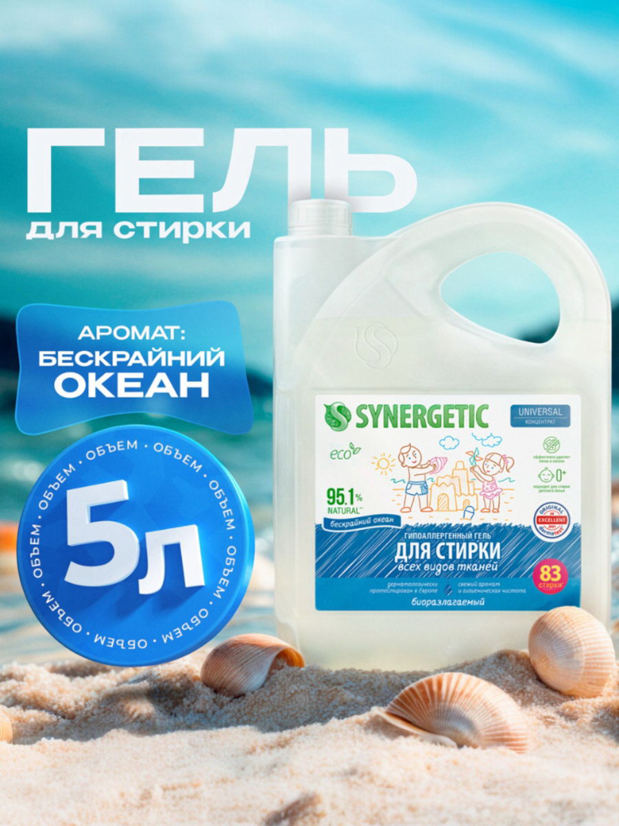 Гель для стирки UNIVERSAL "Бескрайний океан", гипоаллергенный, 5 л, 5000 мл., Synergetic, Россия