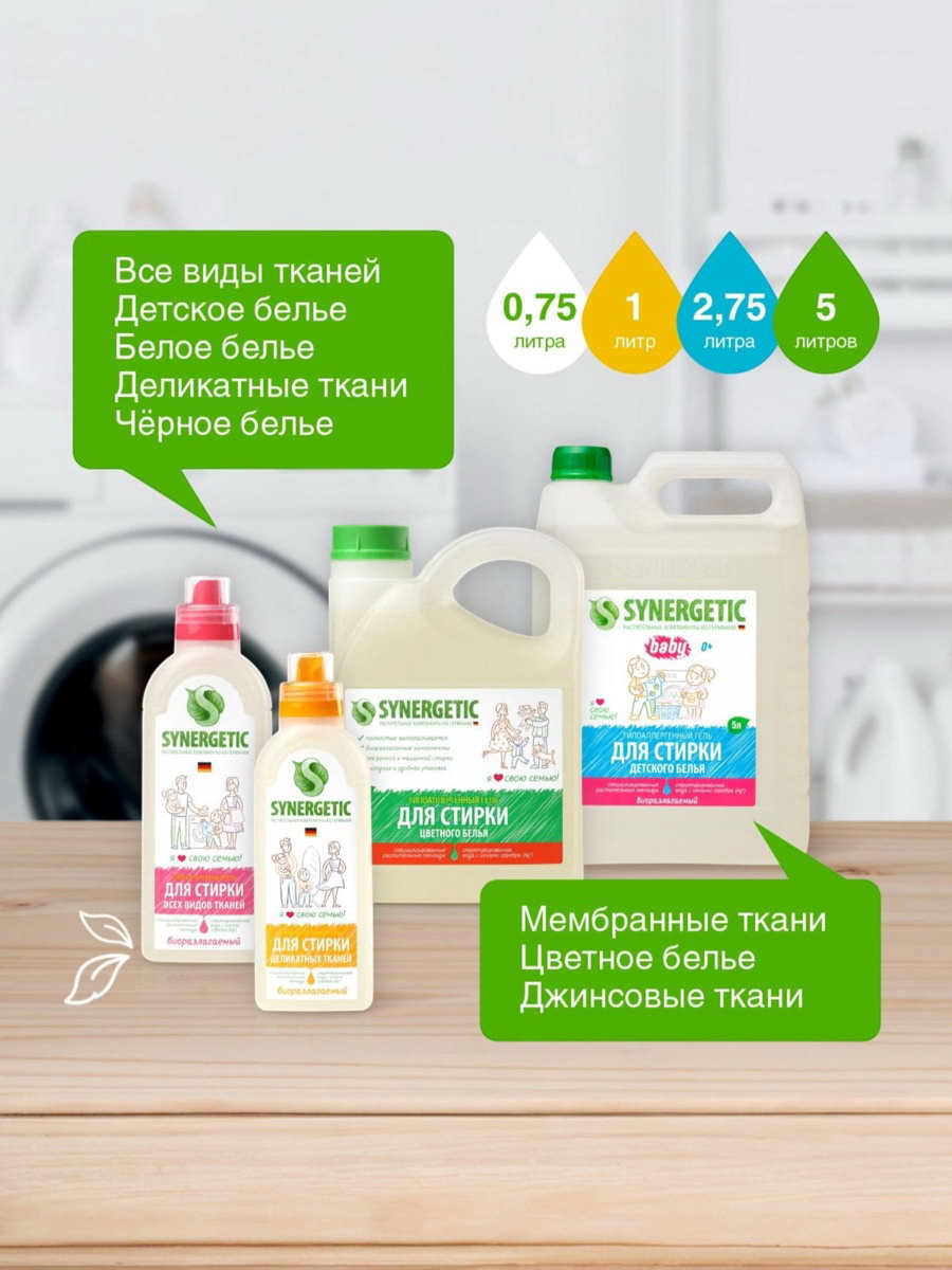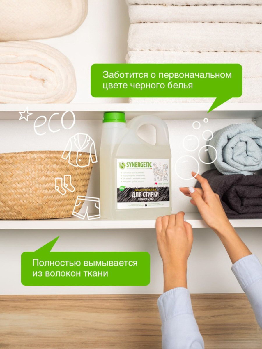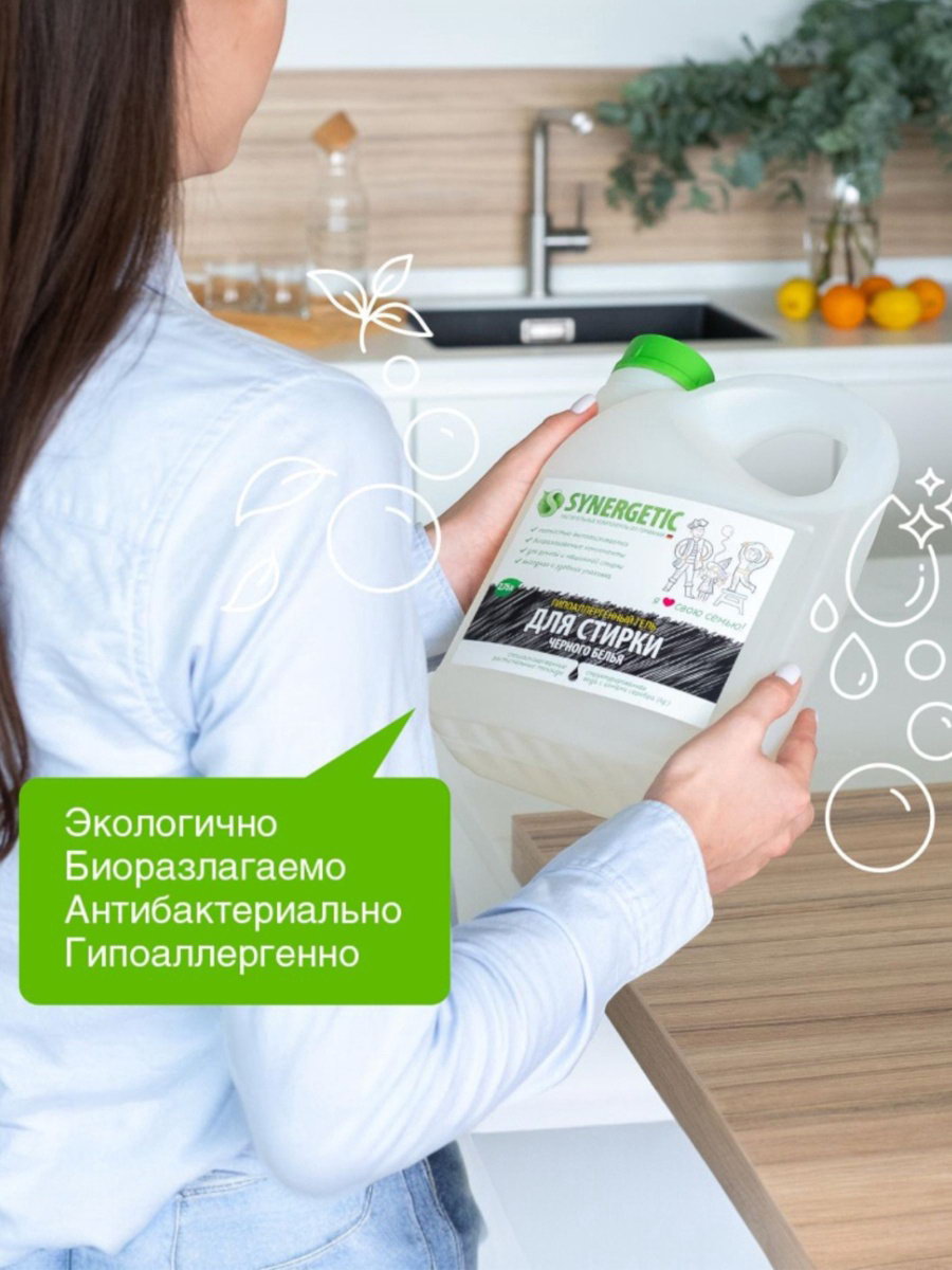 Идеальная забота о вещах: Использование этого геля способствует сохранению текстуры и формы ваших вещей. Забудьте о потускневших тканях – с Synergetic они останутся яркими и привлекательными долгое время. Идеальное решение для тех, кто ценит качество и долгосрочную защиту своих любимых вещей. Выбирайте Synergetic для уверенности в каждом этапе стирки! | ||
