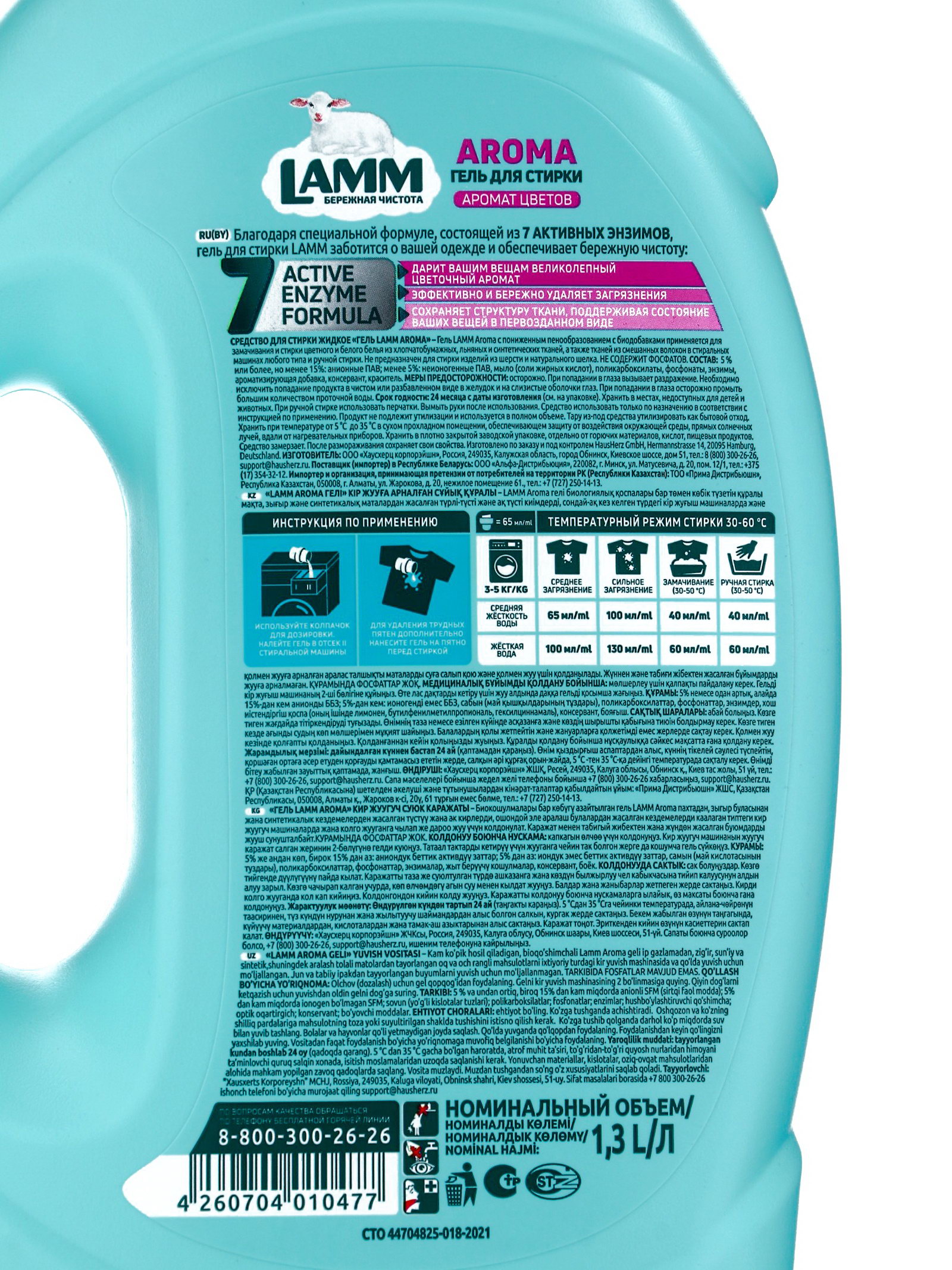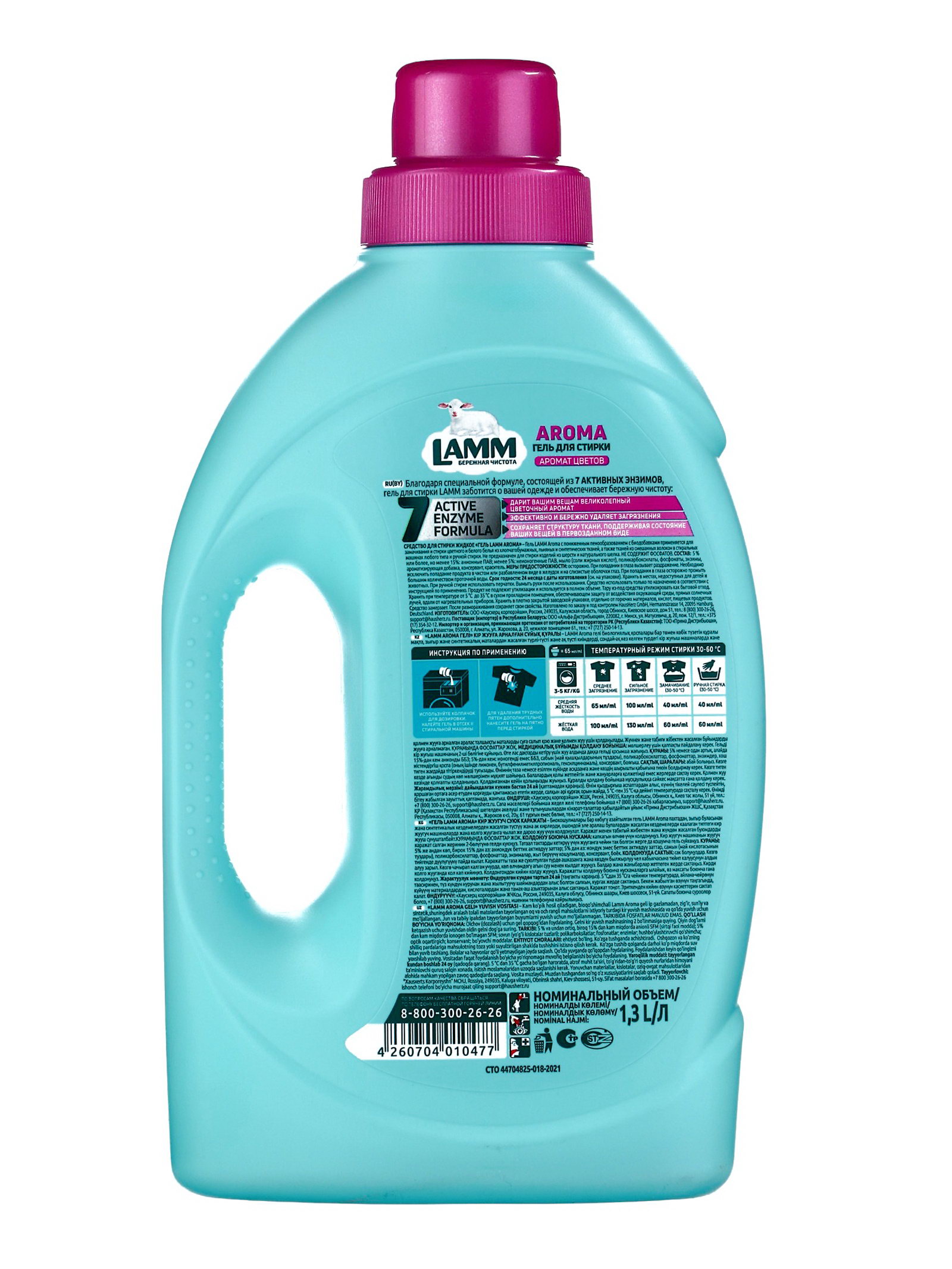 Гель для стирки Aroma, аромат цветов, 1.3 л, 1300 мл., Lamm, Россия