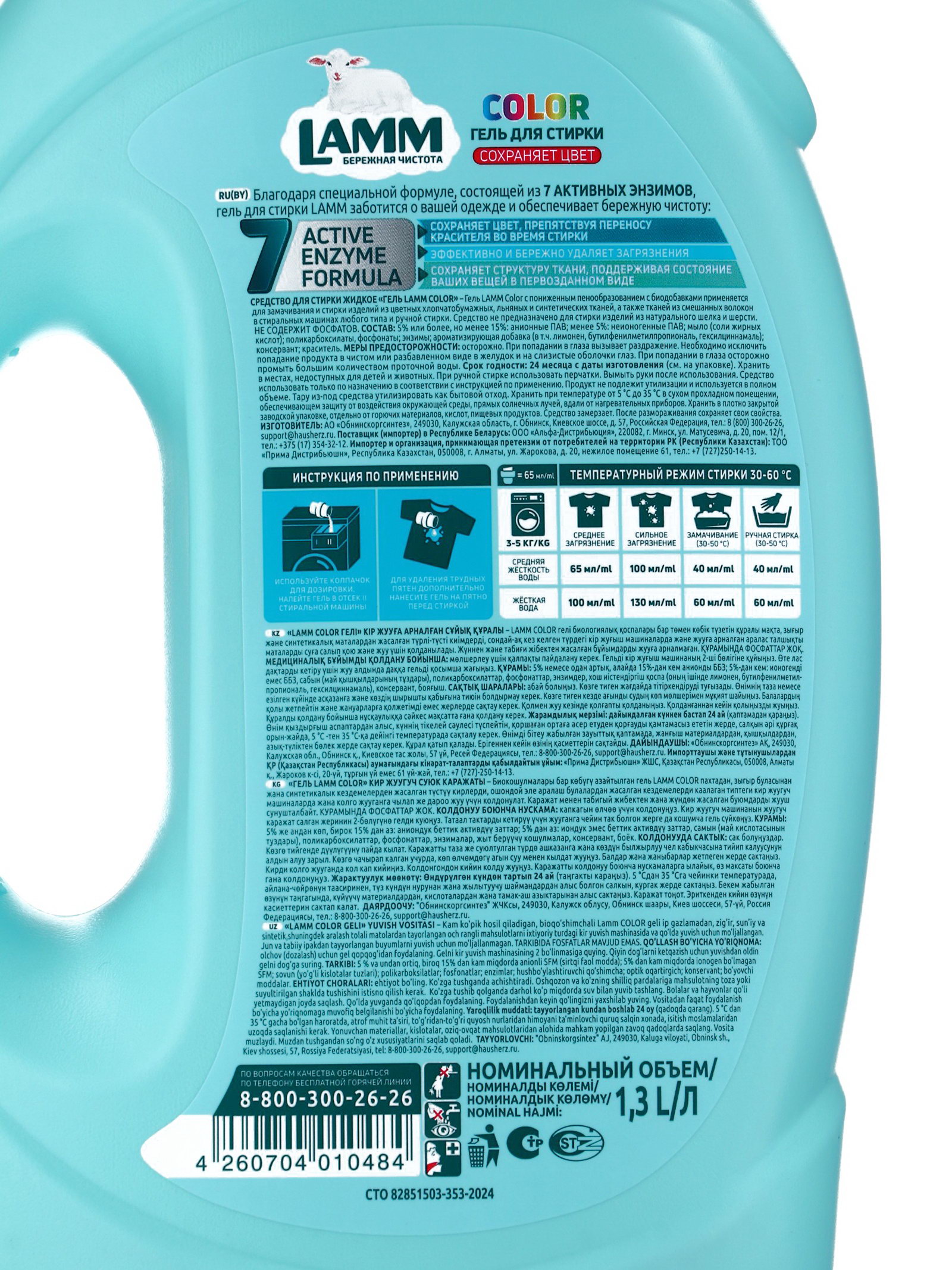Гель для стирки Color, 1.3 л, 1300 мл., Lamm, Россия
