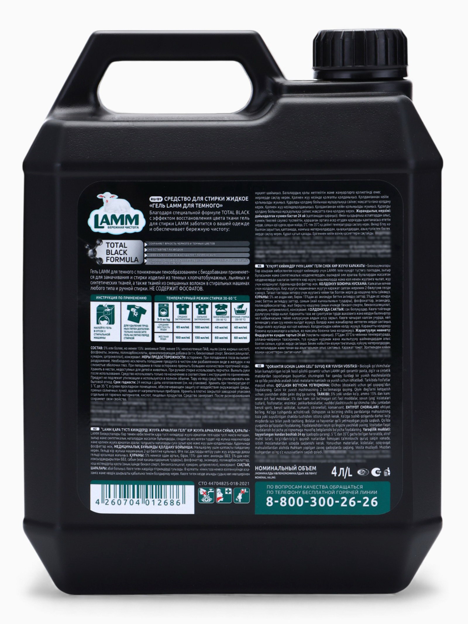Гель для стирки для тёмного, 4 л, 4000 мл., Lamm, Россия