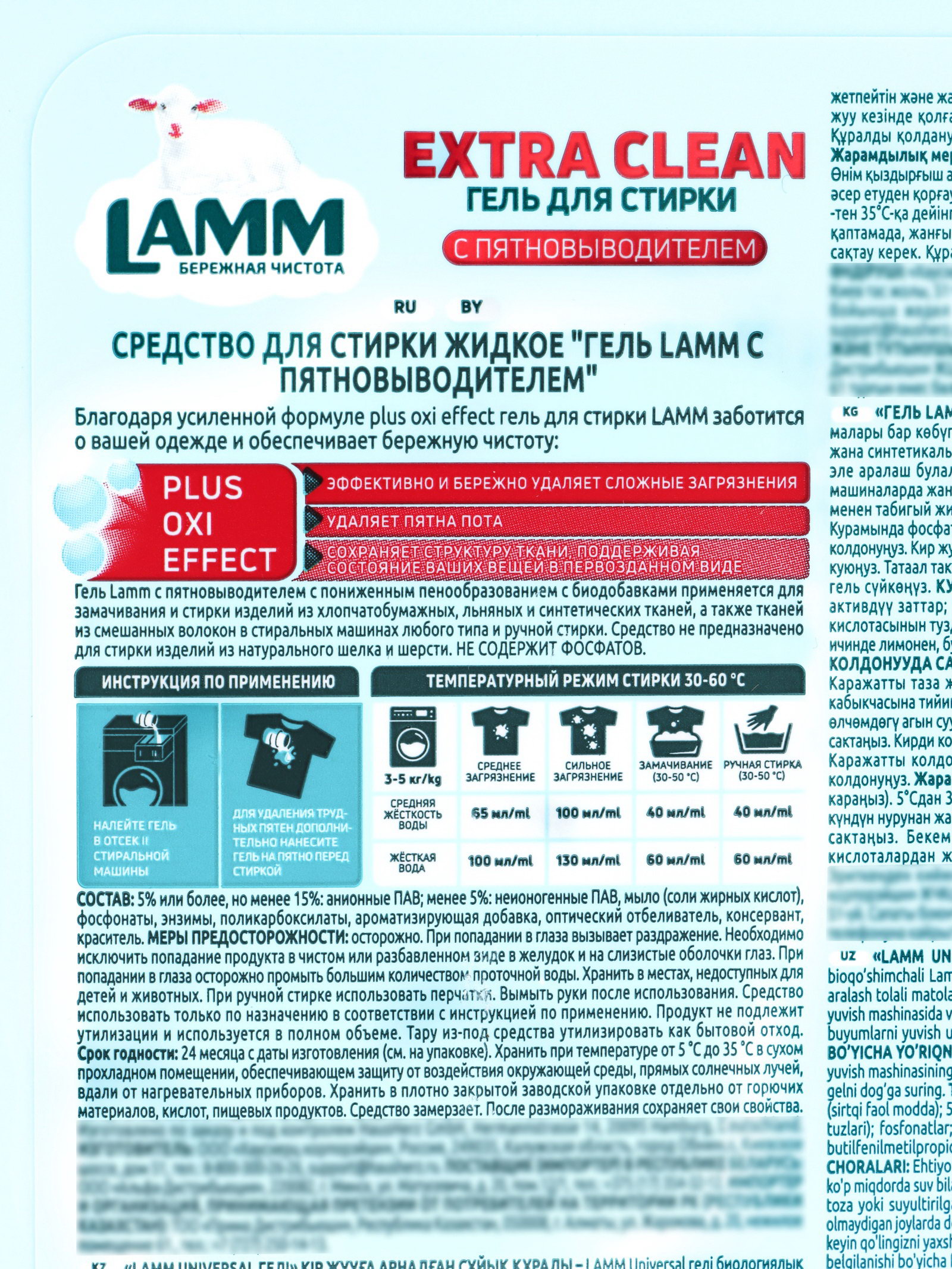 Применение Гель подходит для машинной и ручной стирки. Рекомендуется использовать согласно инструкции на упаковке, дозируя средство в зависимости от степени загрязнения и объёма белья. Для кого LAMM с пятновыводителем создан для тех, кто ценит безупречную чистоту и заботу о вещах. Средство идеально подходит для регулярной стирки и помогает поддерживать одежду и текстиль в идеальном состоянии. | ||
