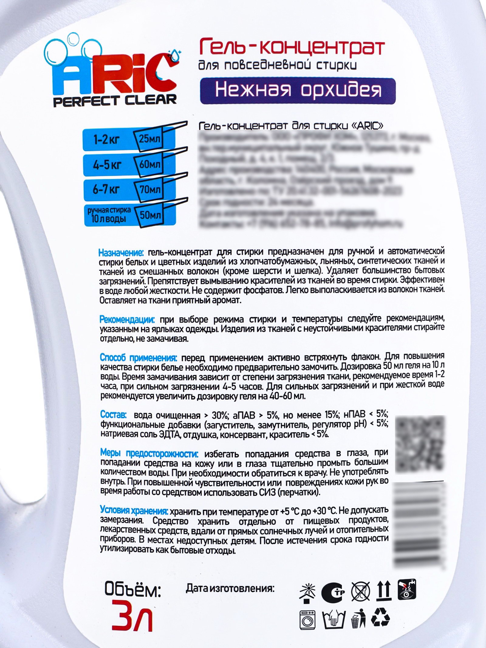 Гель-концентрат для стирки "Нежная орхидея", для повседневной стирки, 3 л, 3000 мл., ARIC, Россия