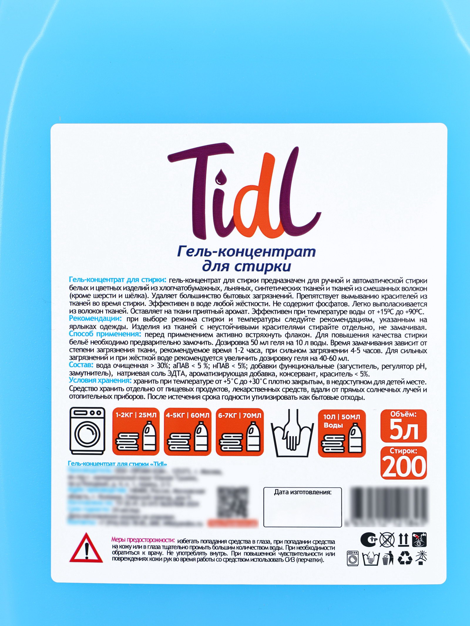 Вид стирки: Автомат, Для всех видов стирки, Ручная Размер упаковки: 13 x 29.5 x 17 см. tnved: 3402500000 Запрет реализации по сегментам: 00000000208 Температурное ограничение: Нет Вес, г/Объём, мл: 5000 Особенности средства: Концентрат Форма выпуска: Гель Назначение: Для всех видов тканей Гель для стирки TIDL "Цветущий оазис" объёмом 5 литров это современное средство для эффективной и бережной стирки всех типов тканей. Благодаря продуманной формуле гель глубоко проникает в волокна, эффективно удаляя загрязнения различной сложности, при этом сохраняя структуру ткани и насыщенность цвета. Средство подходит как для машинной, так и для ручной стирки, обеспечивая качественный результат даже при низких температурах. Гелевая текстура быстро растворяется в воде и равномерно распределяется по белью, что способствует более эффективному очищению без разводов и следов. Средство помогает сохранить мягкость тканей, облегчает процесс глажки и придаёт вещам приятный свежий аромат "Цветущий оазис", который надолго остаётся на одежде. Благодаря высокой концентрации активных компонентов гель экономичен в использовании и подходит для регулярной стирки повседневной одежды, постельного белья, полотенец и других текстильных изделий. Удобная канистра обеспечивает комфортное хранение и дозирование. | ||