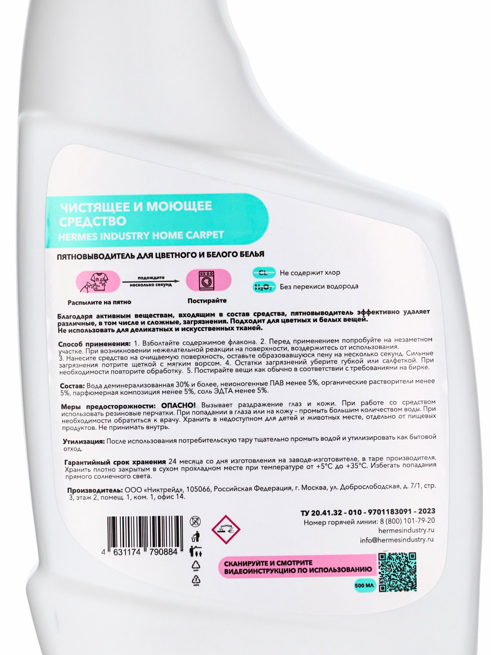 Пятновыводитель HOME для цветного и белого белья, спрей, 500 мл, Hermes industry, Россия