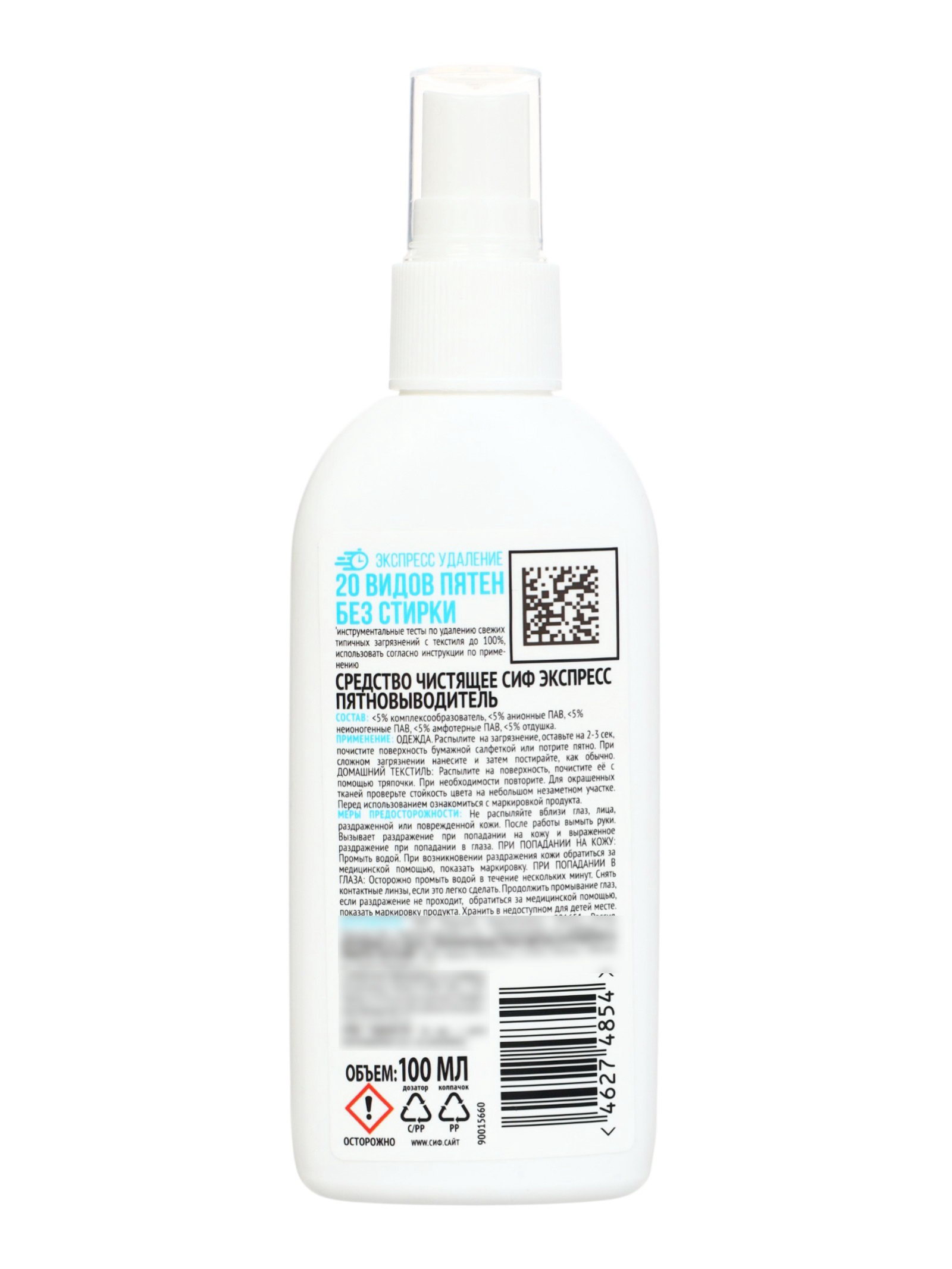 Средство чистящее экспресс пятновыводитель "СИФ", эффект без стирки, 100 мл, Cif, Россия