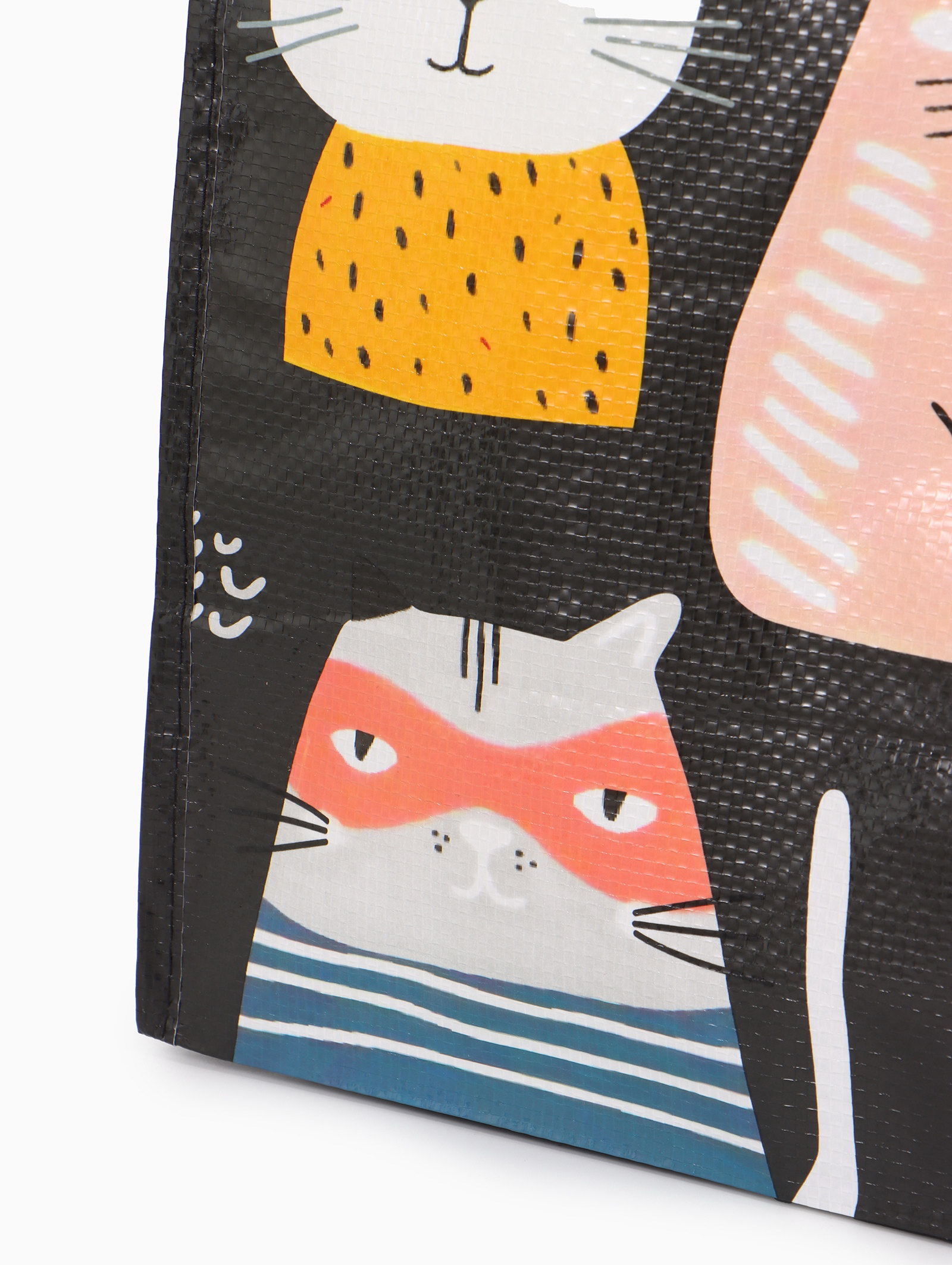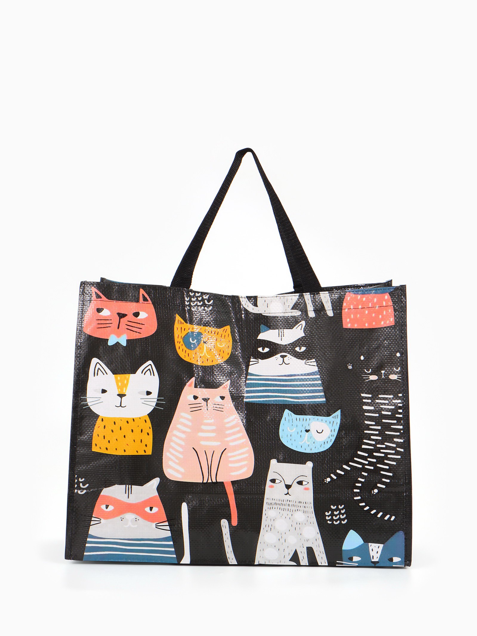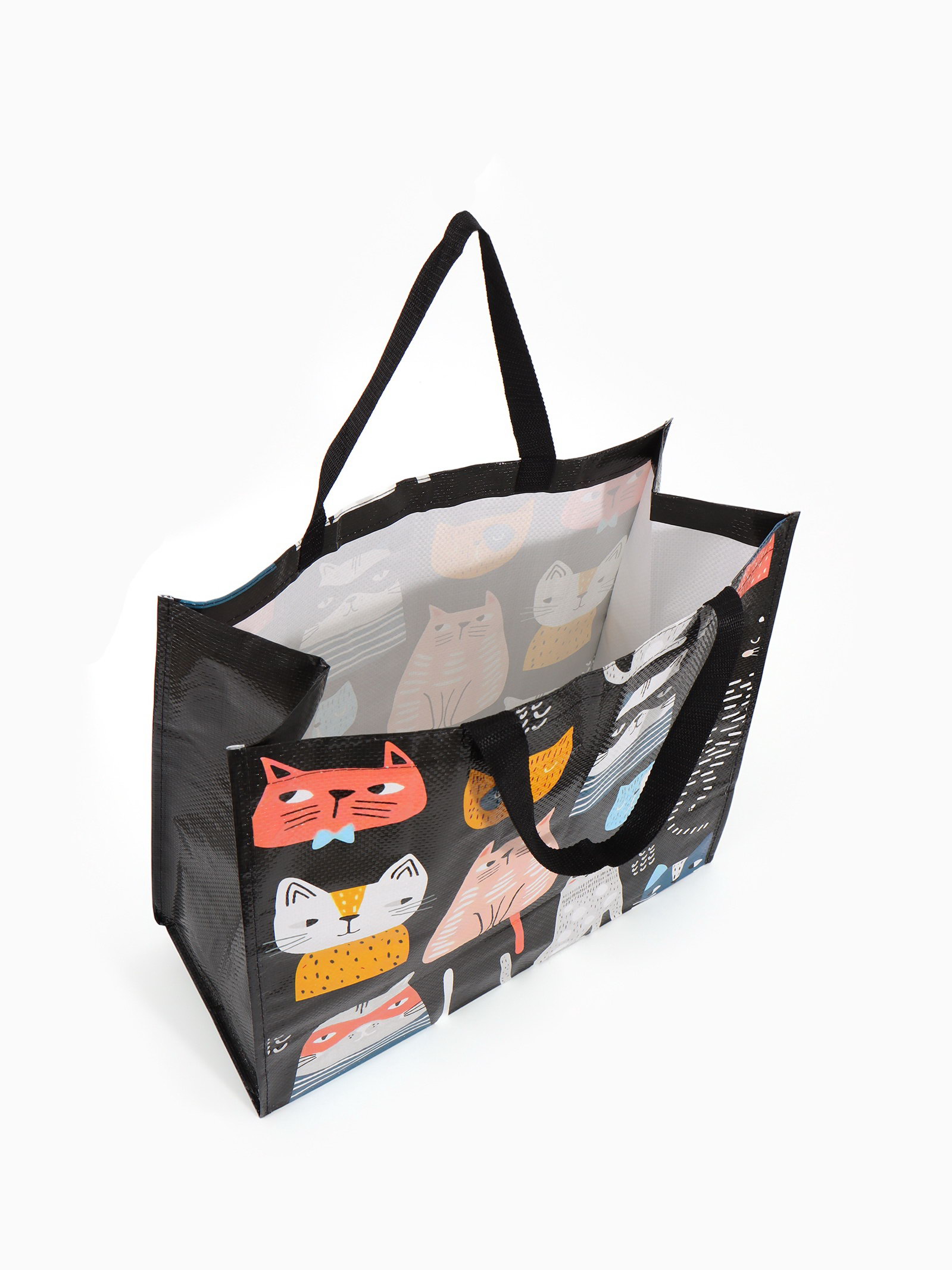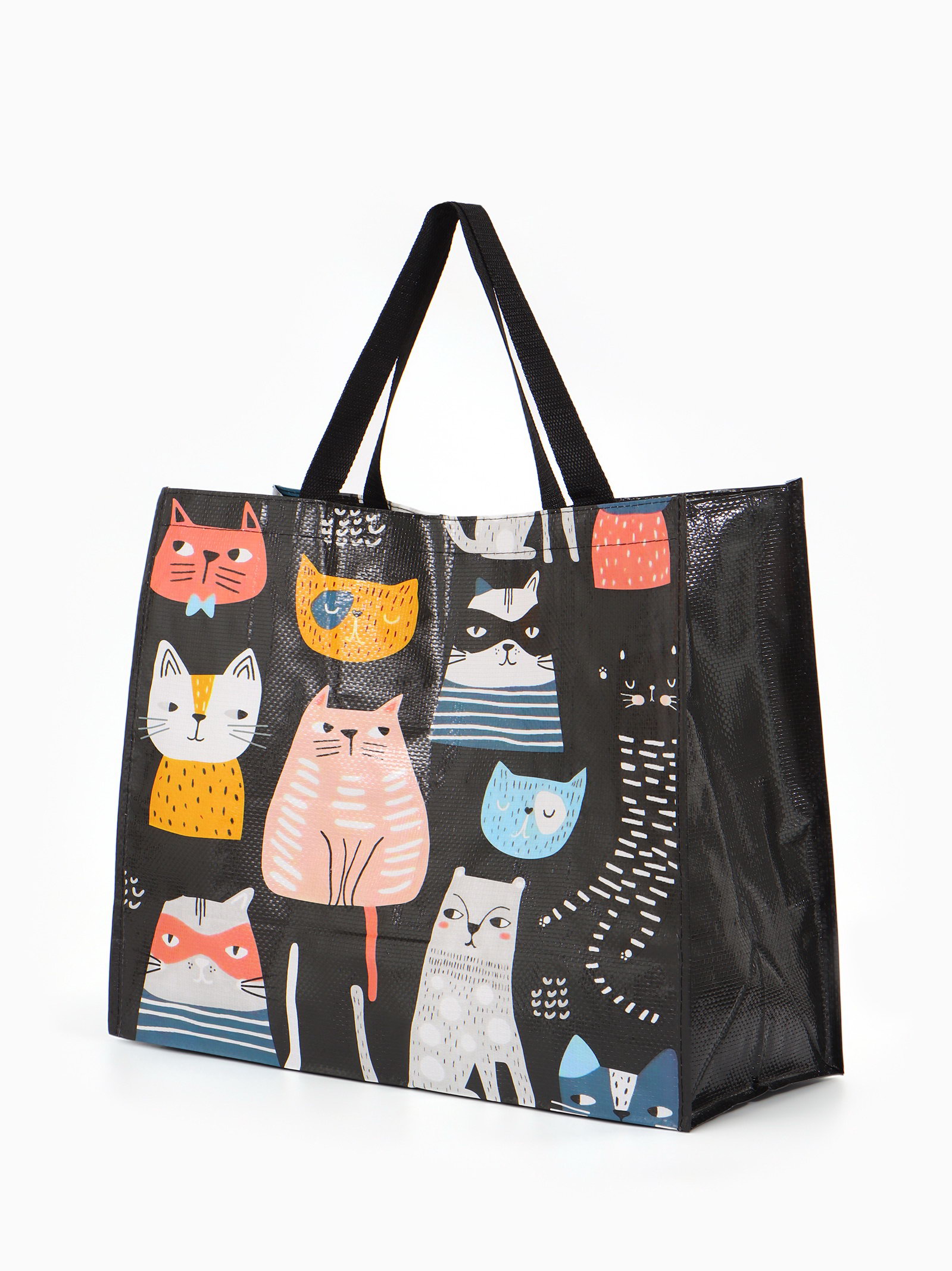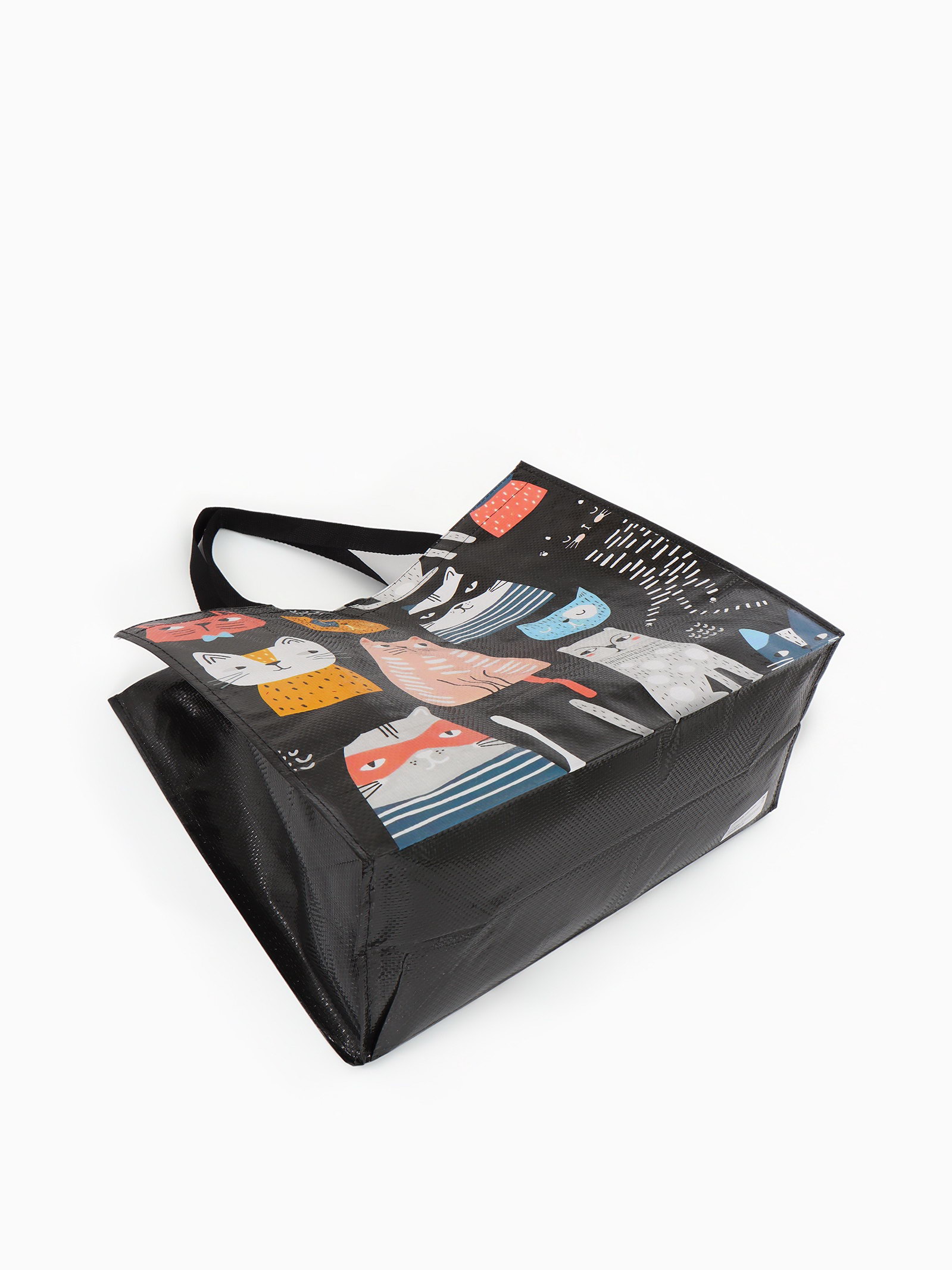 Сумка хозяйственная без застёжки, с принтом, 45x20x37 см, чёрная, 20x45x37 см., Китай