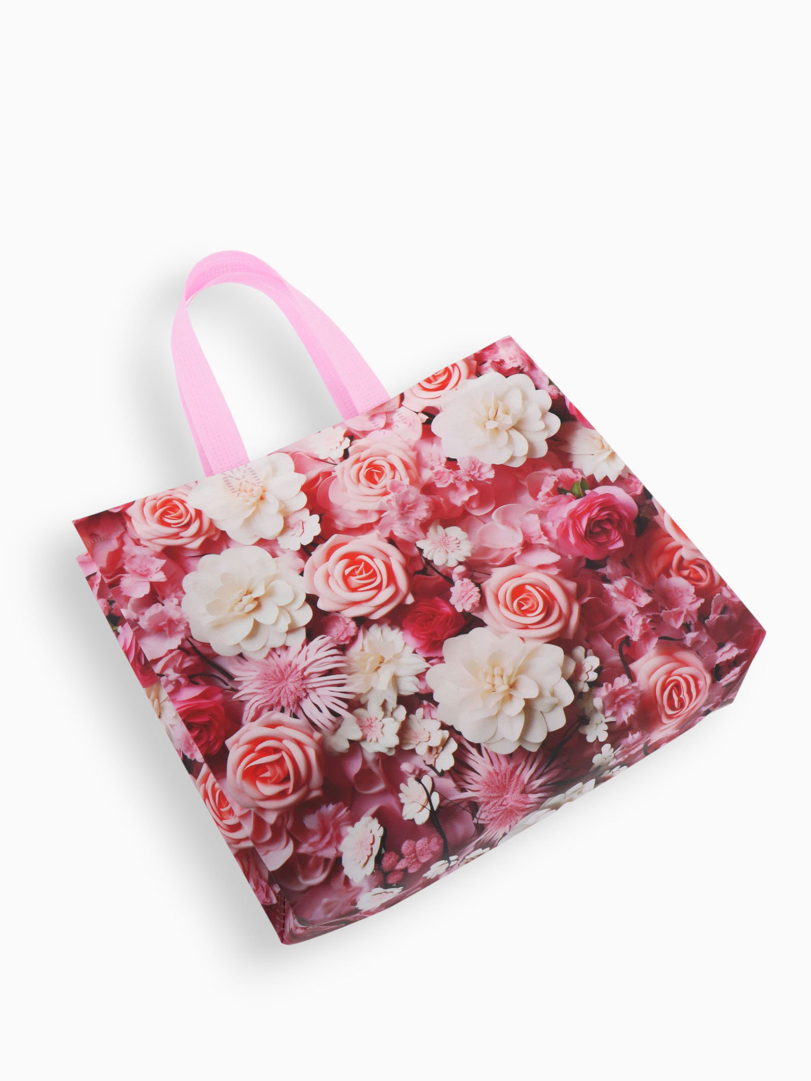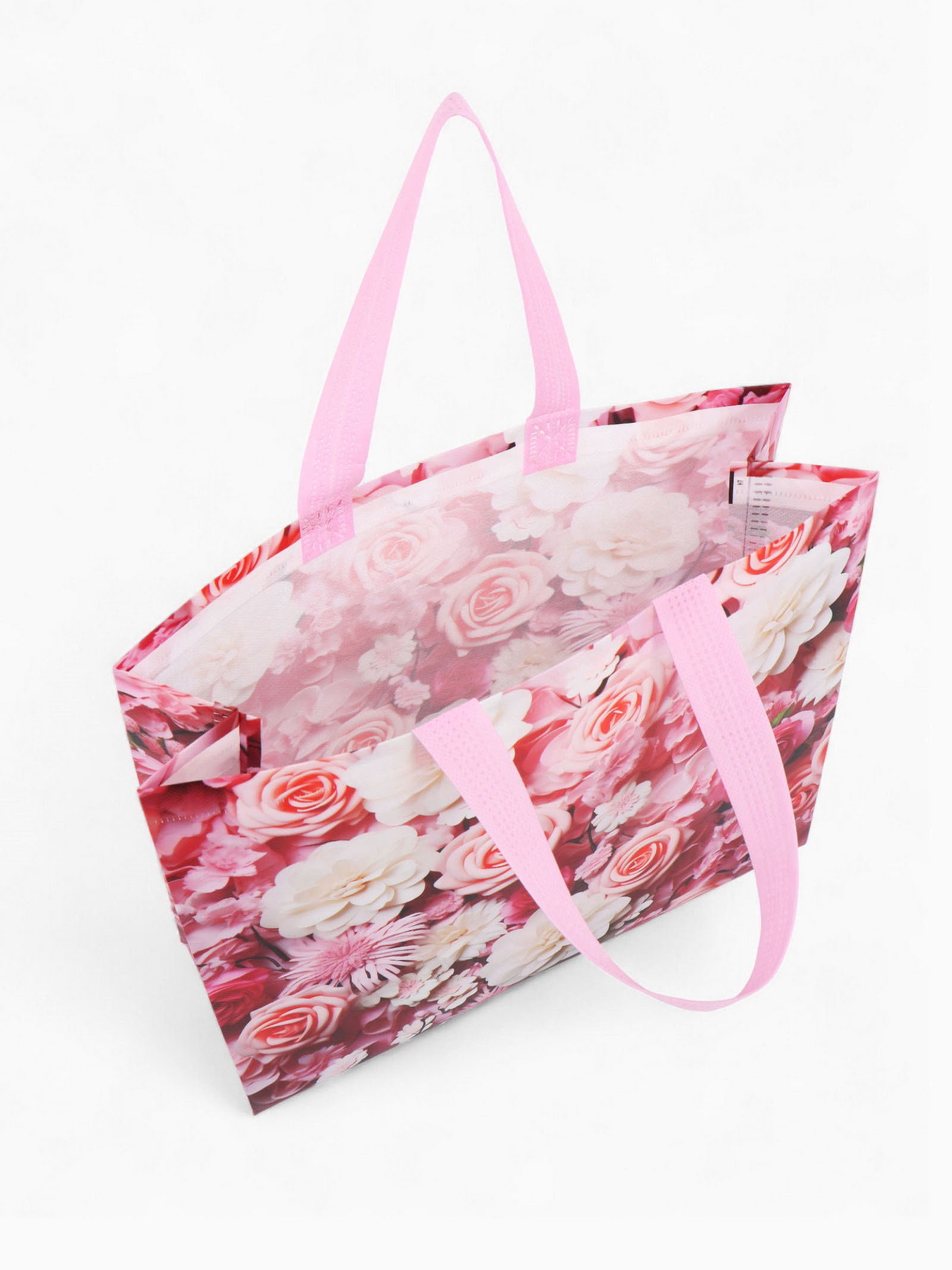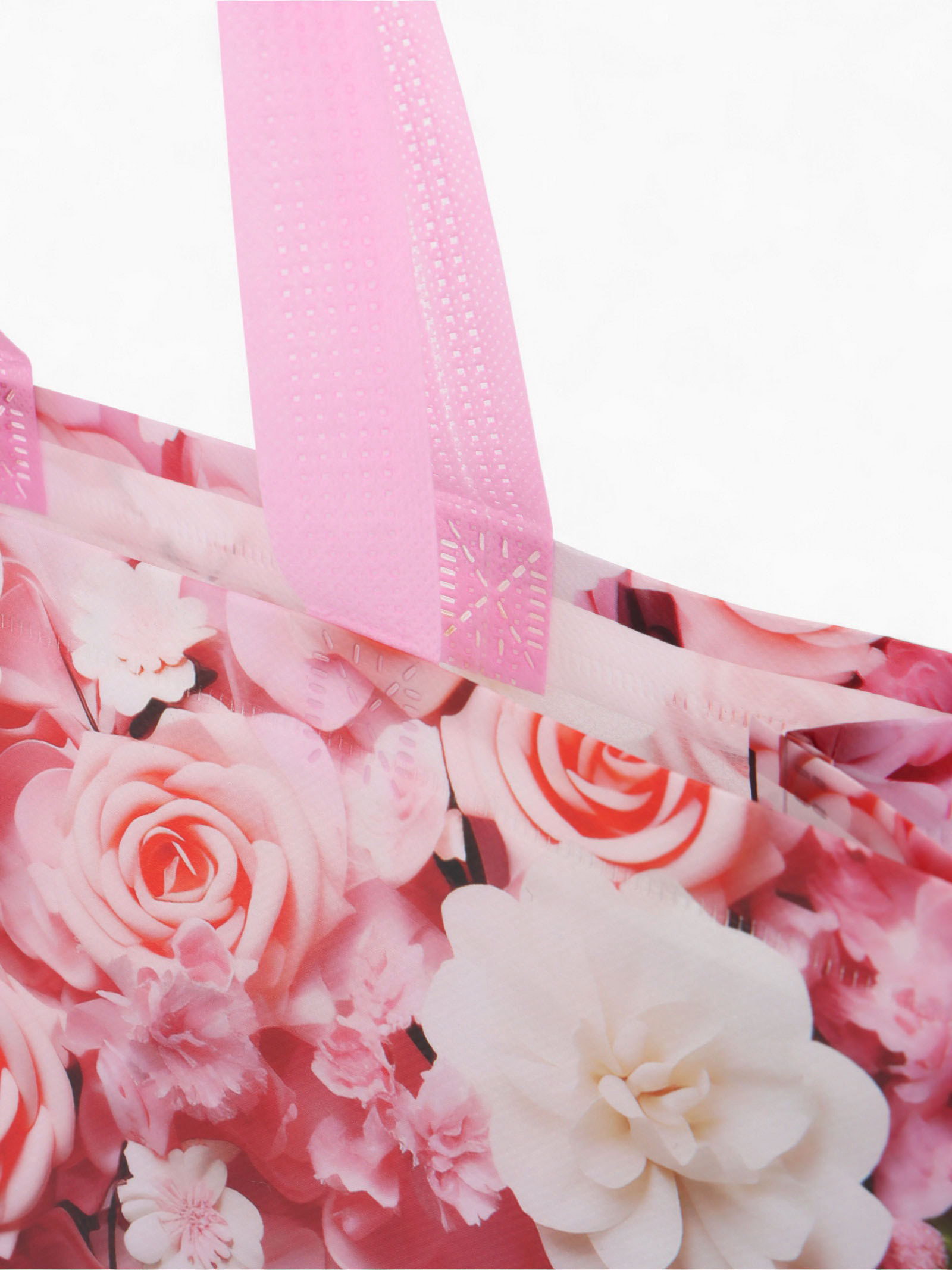 Сумка хозяйственная без застёжки, с цветочным принтом, 32x10x26 см, розовая, 10x32x26 см., Китай