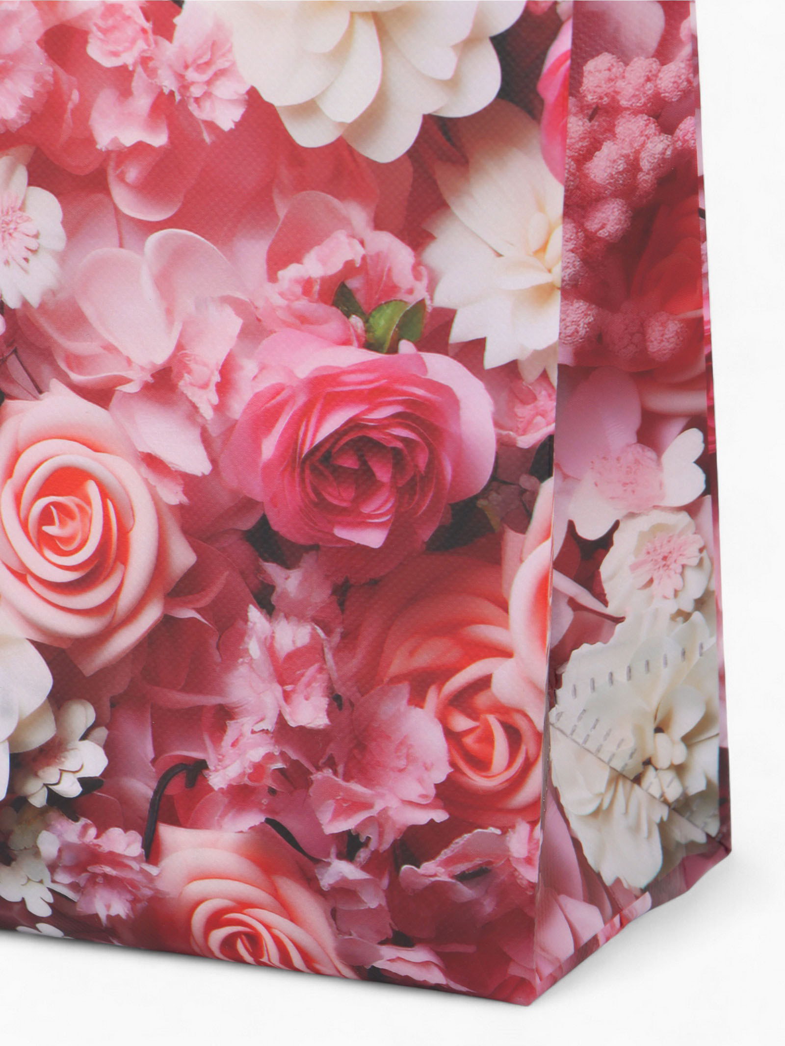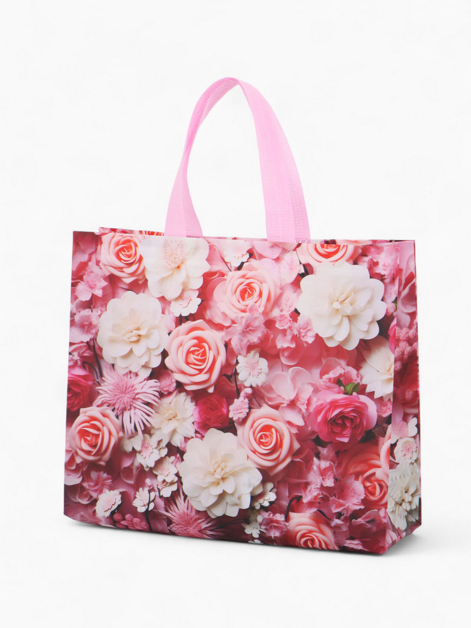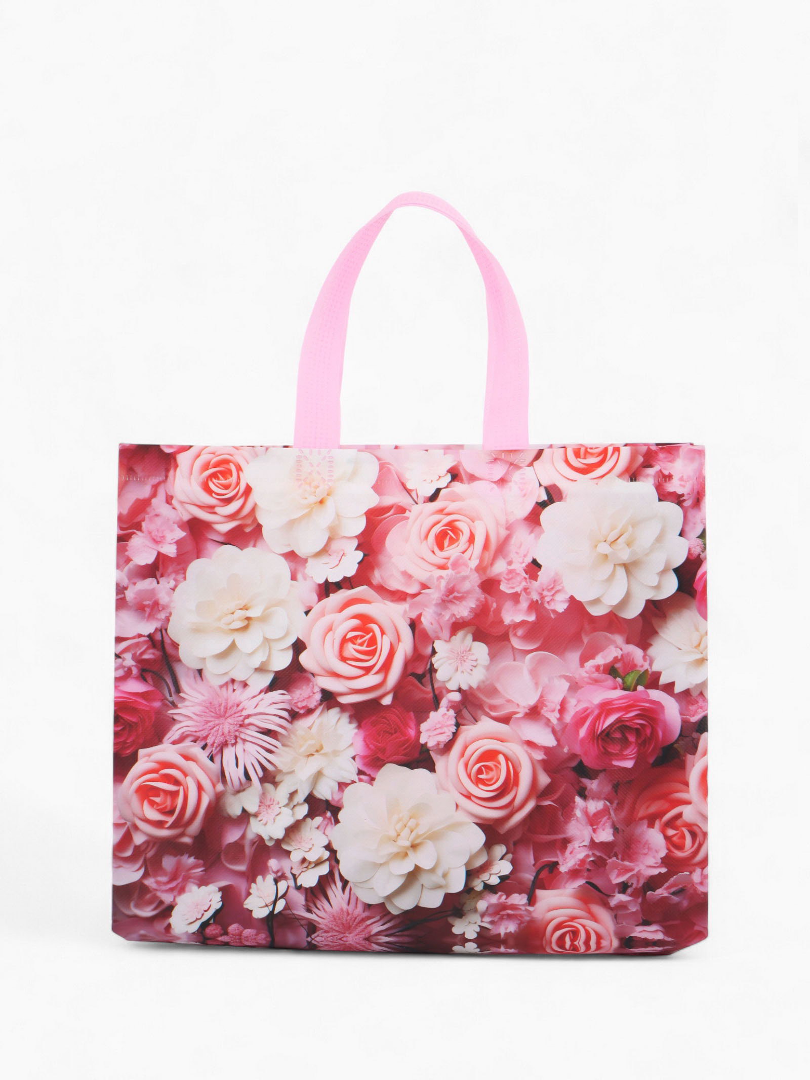 Сумка хозяйственная без застёжки, с цветочным принтом, 32x10x26 см, розовая, 10x32x26 см., Китай