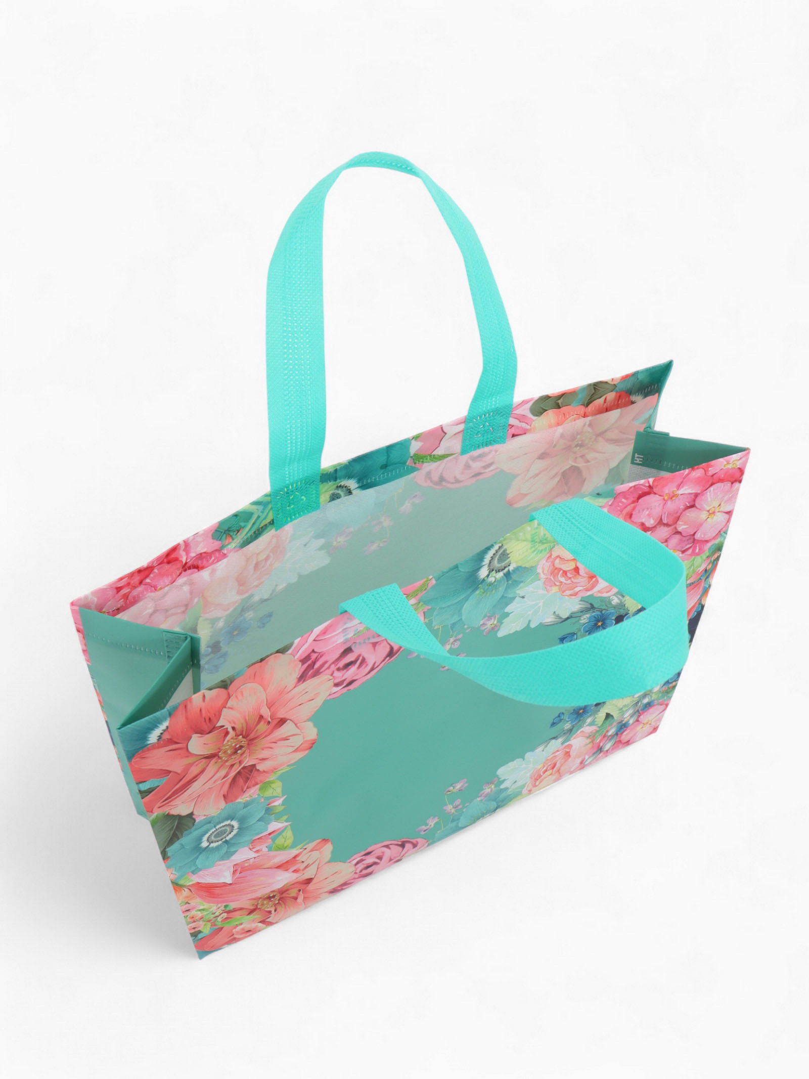Сумка хозяйственная без застёжки, с цветочным принтом, 32x10x26 см, голубая, 10x32x26 см., Китай