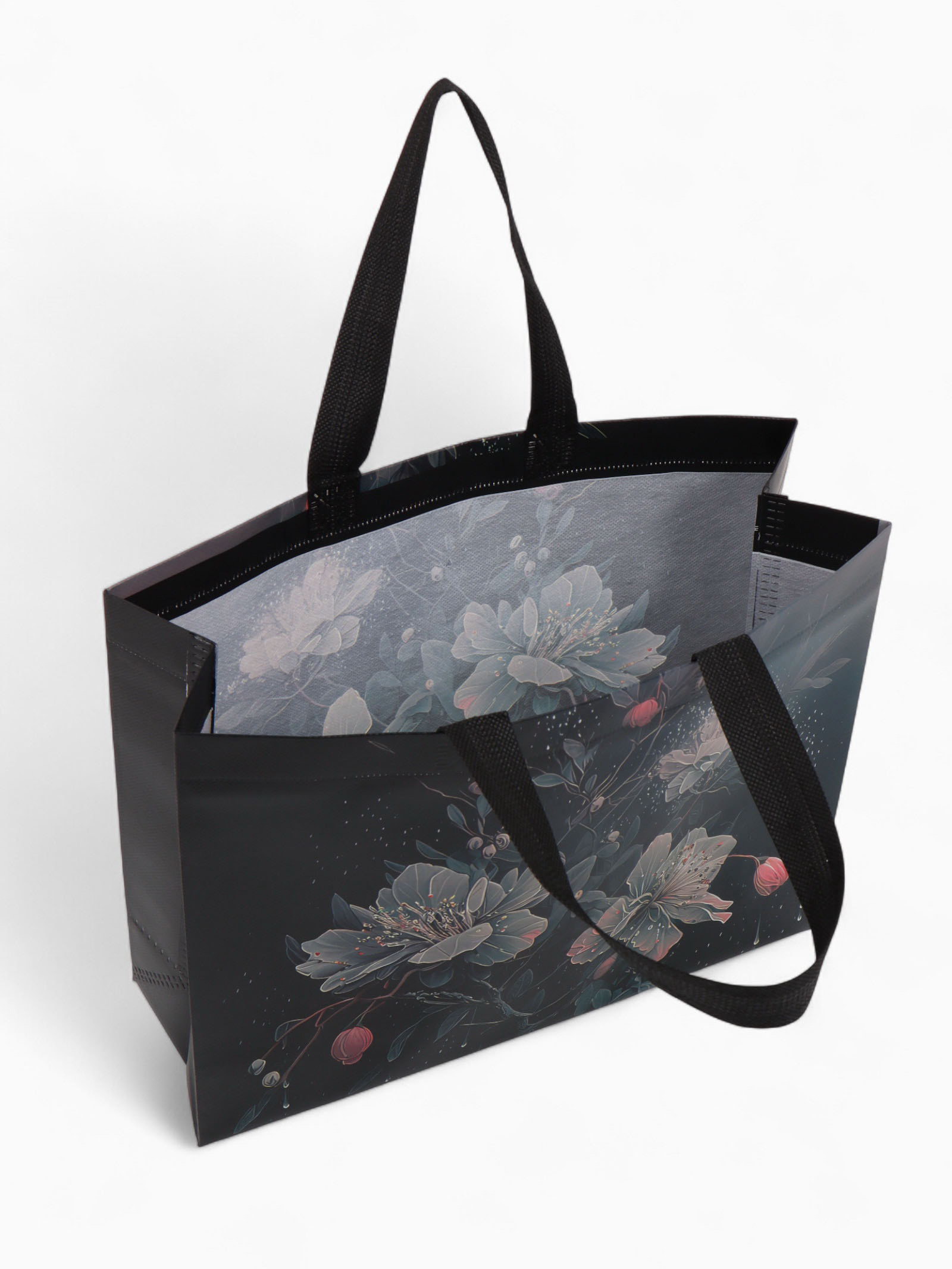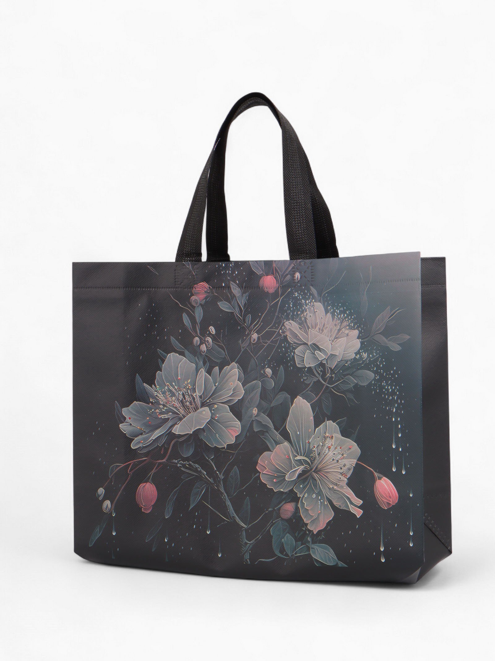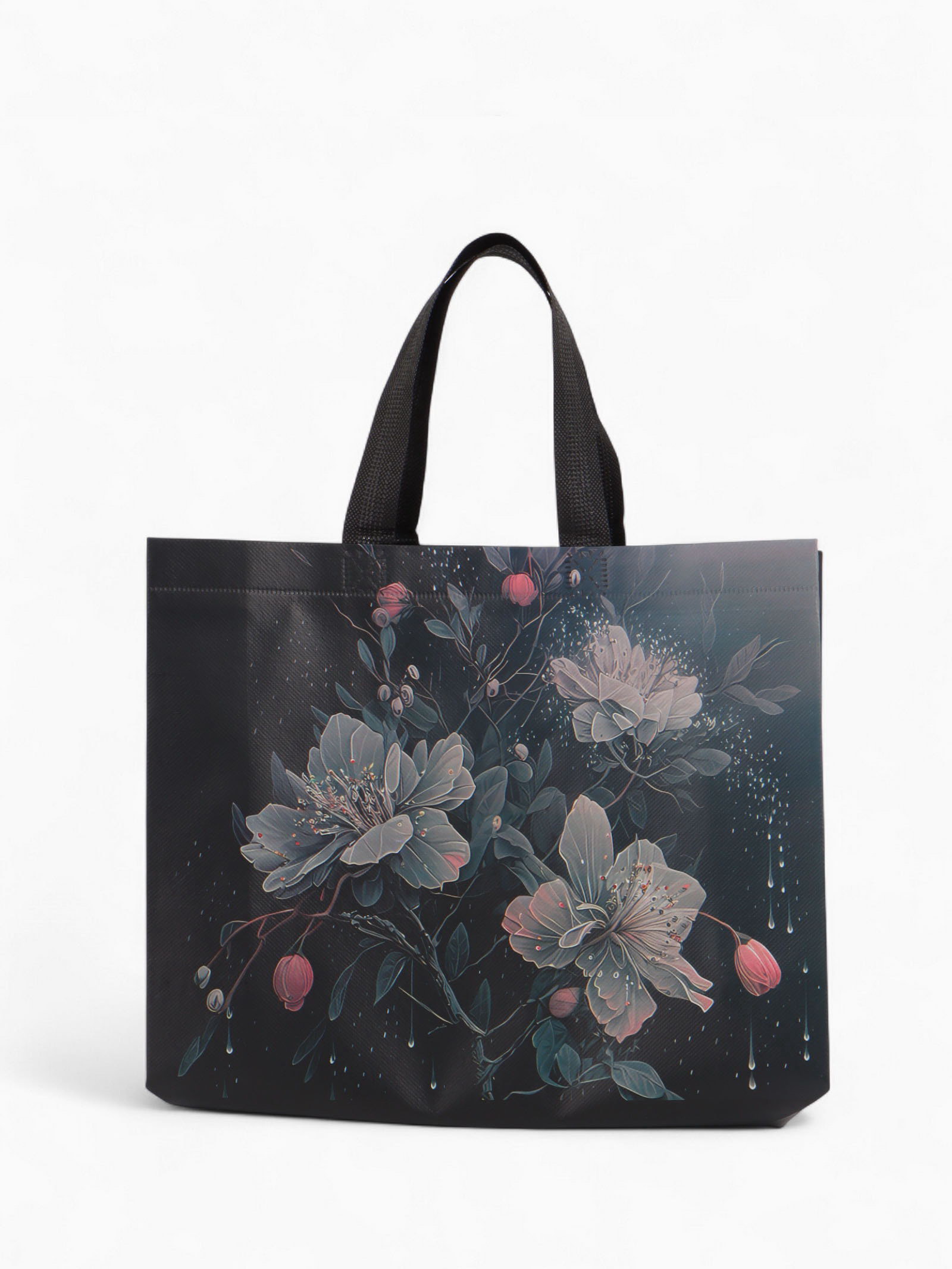 Сумка хозяйственная "Букет", без застёжки, 32x10x26 см, чёрная, 10x32x26 см., Китай