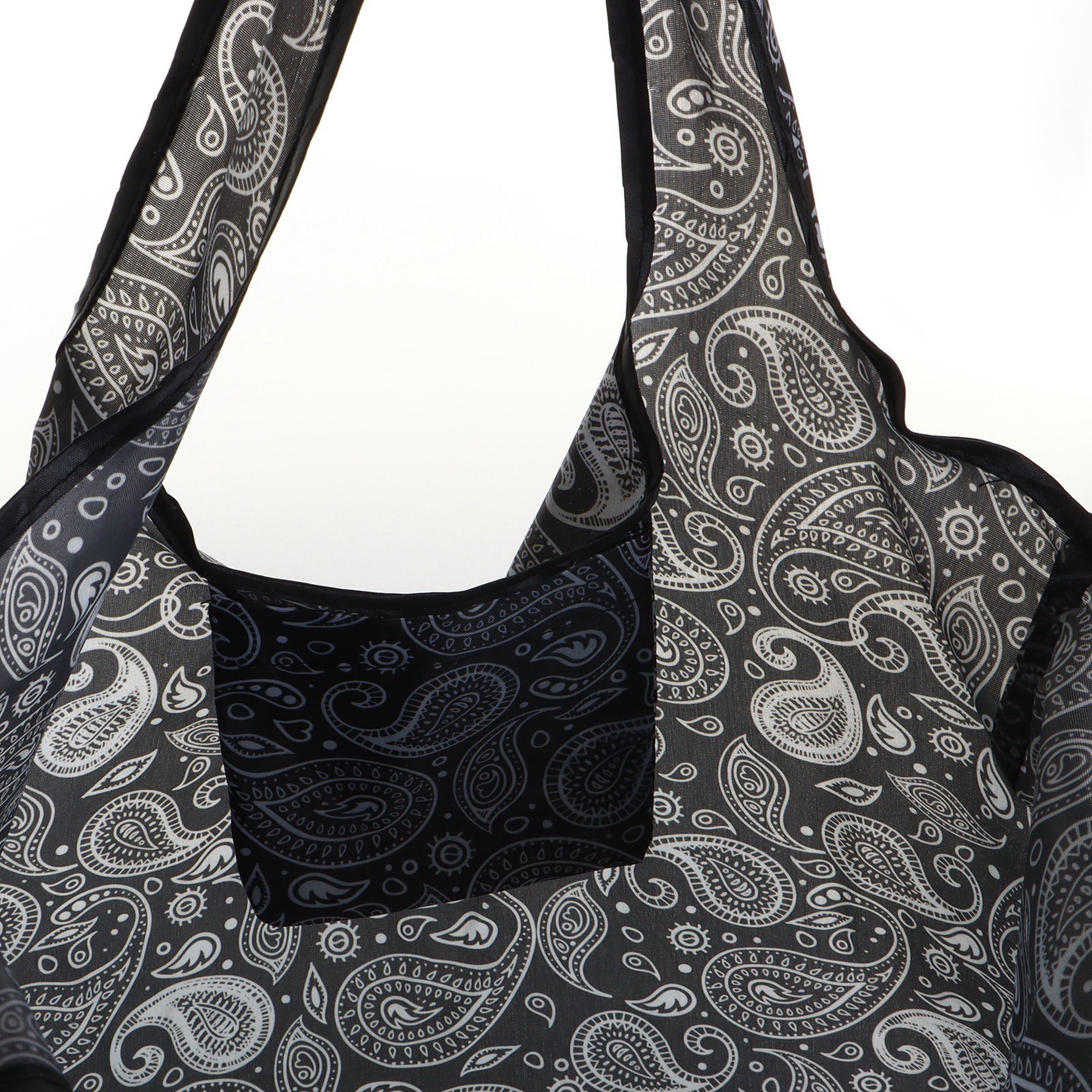 Размер упаковки: 10 x 1 x 10 см. Назначение: Хозяйственные Цвет: Чёрный Для кого: Для женщины Температурное ограничение: Нет Модель сумки: Складная Дополнительный объём: Без увеличения На колёсиках: Нет Рисунок: Да Вид застёжки: Без застёжки Maксимальная нагрузка, кг: 5 Ширина, см: 0.5 Длина, см: 46 Тематика: Орнамент Высота, см: 63 tnved: 4202990000 Черная складная сумка верный помощник в хозяйственных делах для женщин, ценящих удобство и стиль. Порадуйте себя вместительной и практичной моделью, которая с легкостью вмещает покупки или необходимые вещи. Компактный дизайн без застежки позволяет быстро разворачивать и складывать сумку по мере необходимости, что делает ее идеальным спутником в вашем ежедневном ритме жизни. Ключевые особенности: