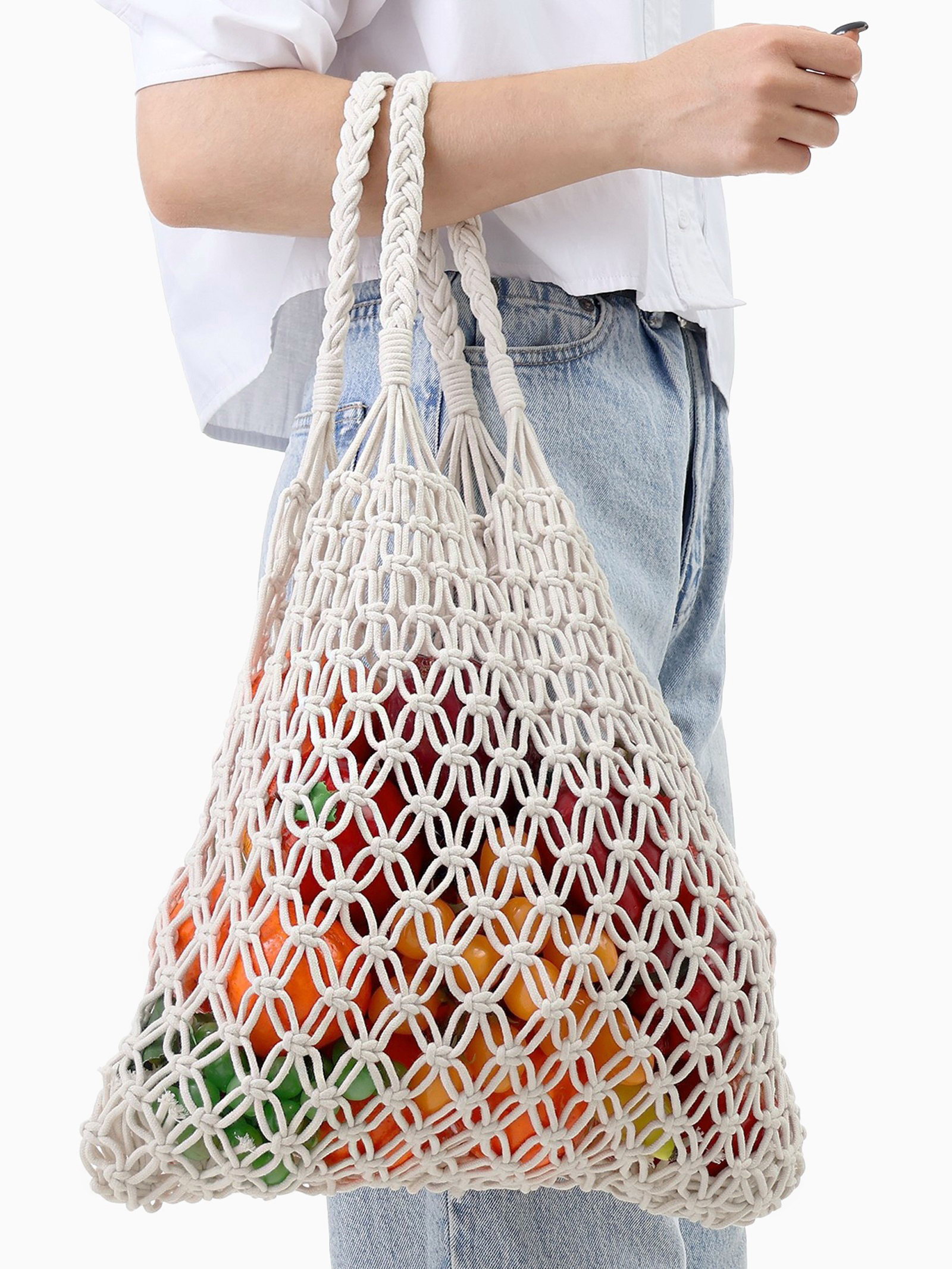 Сумка-авоська плетёная, клетка 3.5 см, белая, 1x35x48 см., TAKE IT EASY, Китай