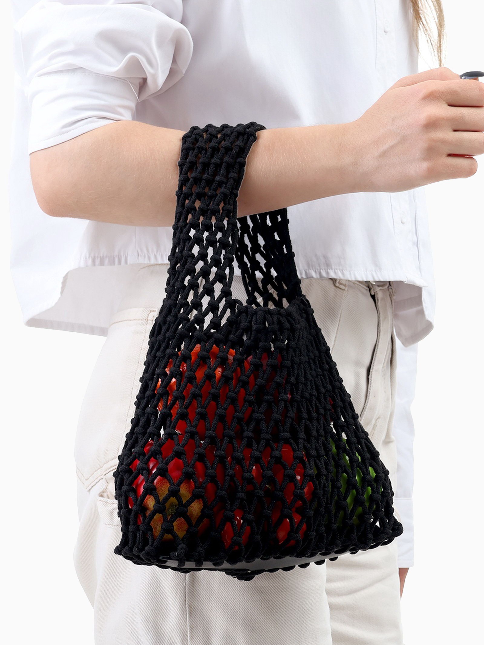 Авоська плетёная, маленькая, клетка 1.5 см, чёрная, 1x20x30 см., TAKE IT EASY, Китай