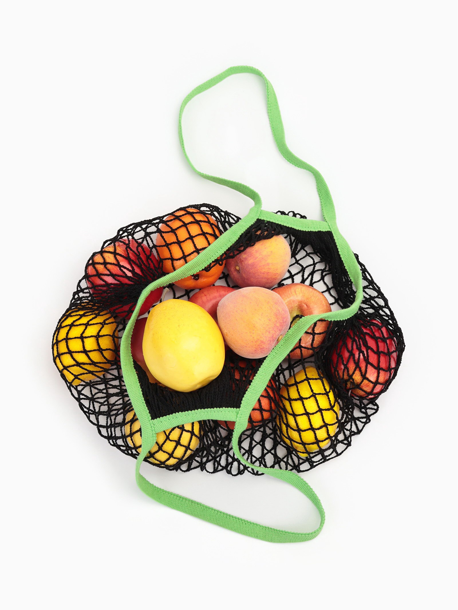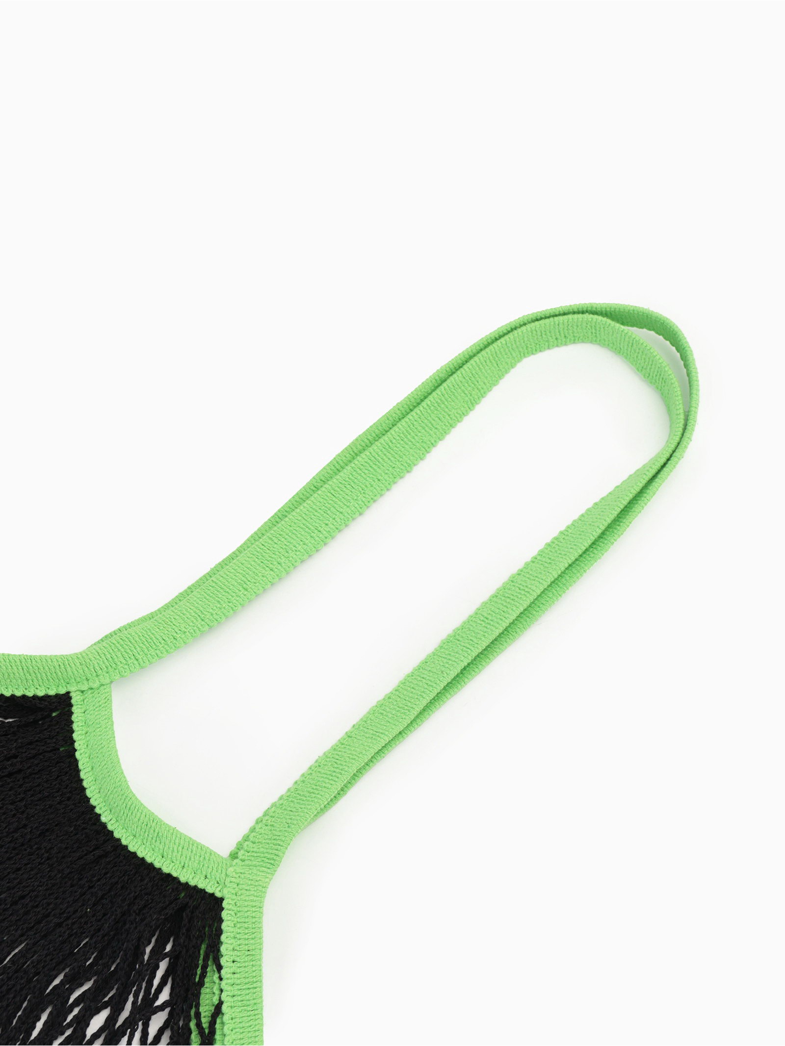Сумка-авоська плетёная, клетка 1.5 см, чёрная/зелёная, 1x27x41 см., TAKE IT EASY, Китай