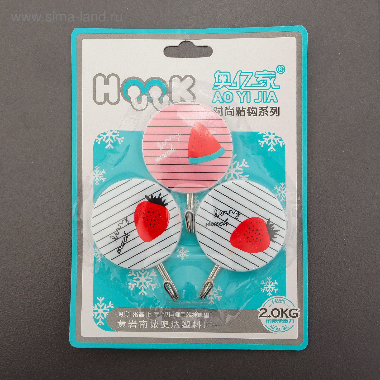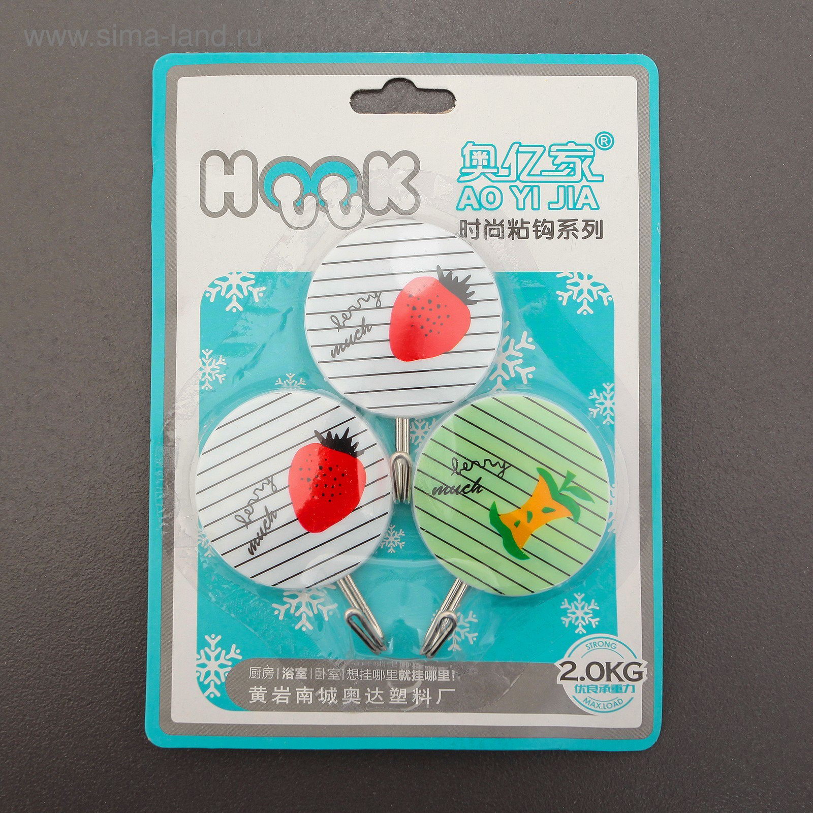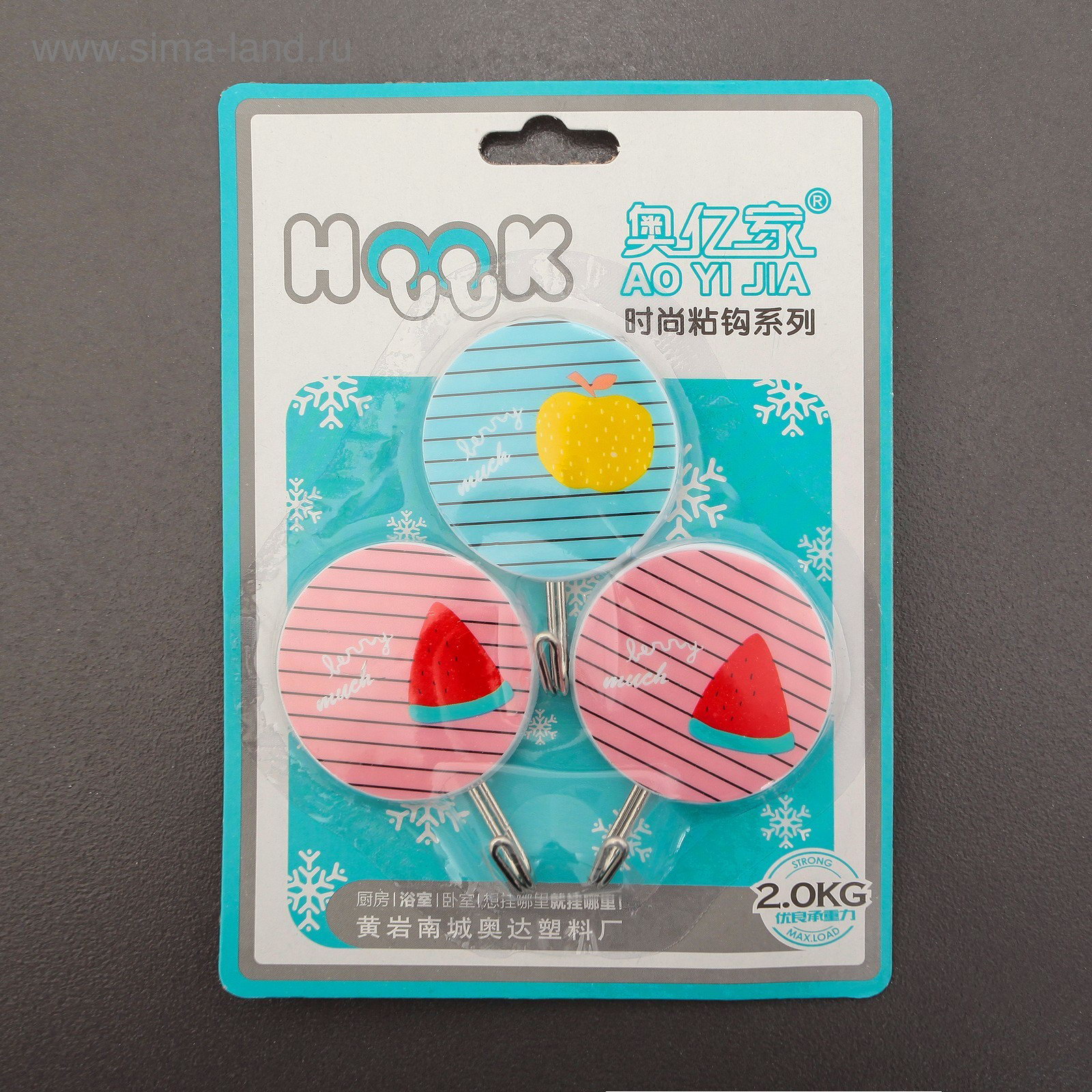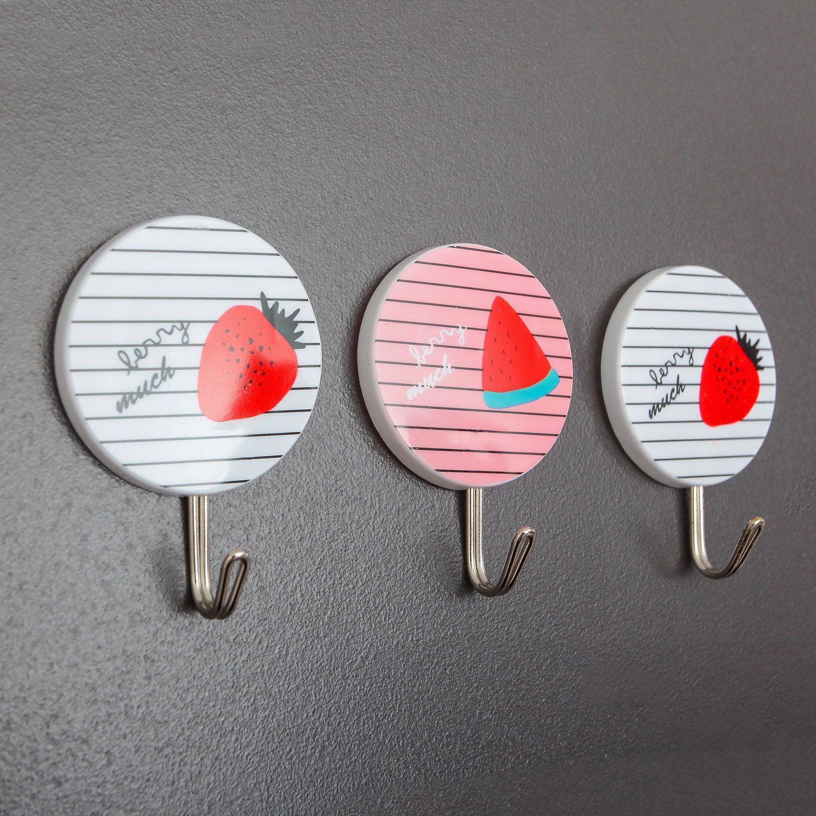 Крючок на липучке "Полосатые фрукты", 3 шт, цвет МИКС, 7x5x2 см., Китай