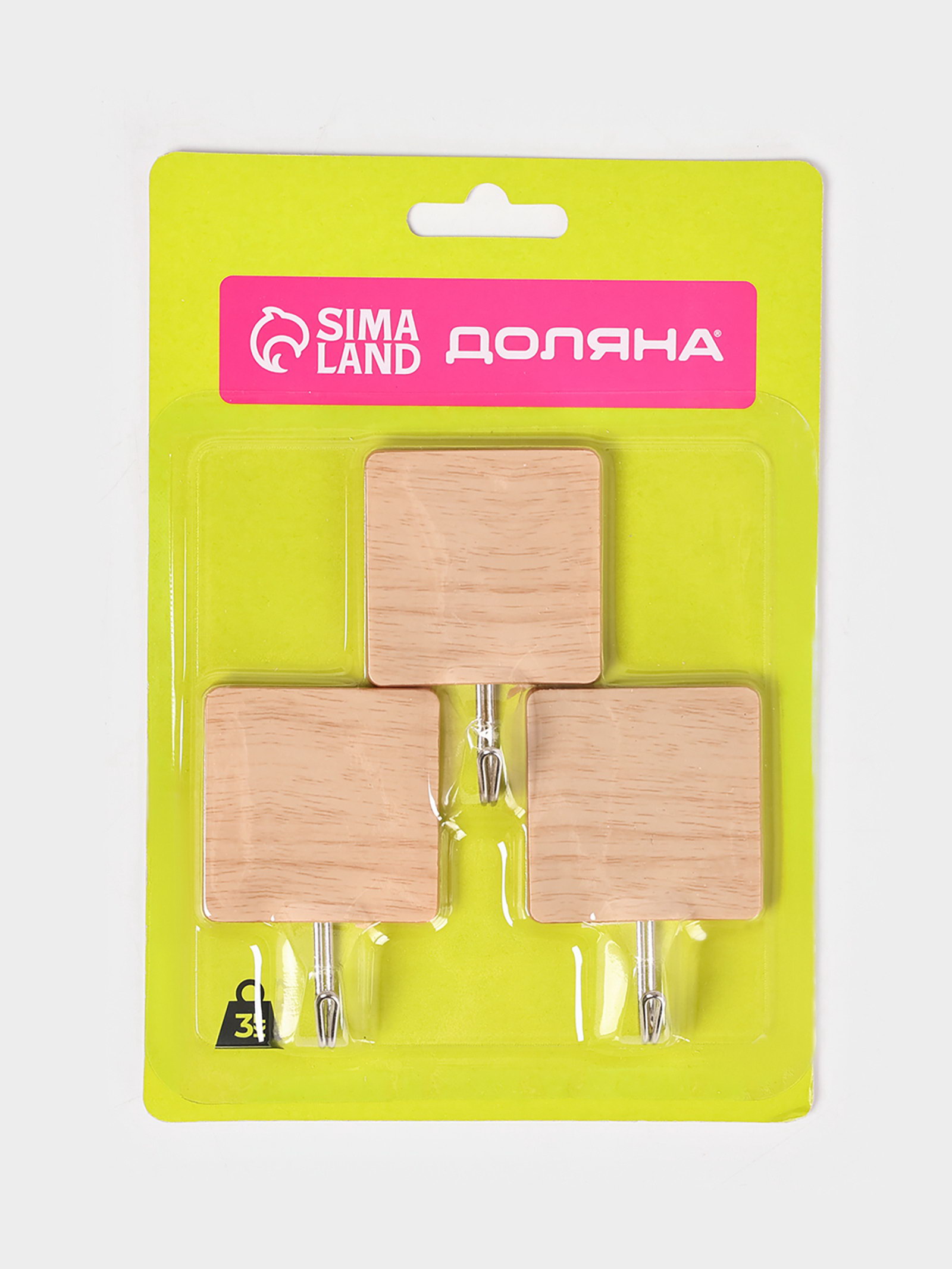 Крючки самоклеящиеся "Квадрат", 3 шт., светлое дерево, 6.8x4.6x2 см., Доляна, Китай