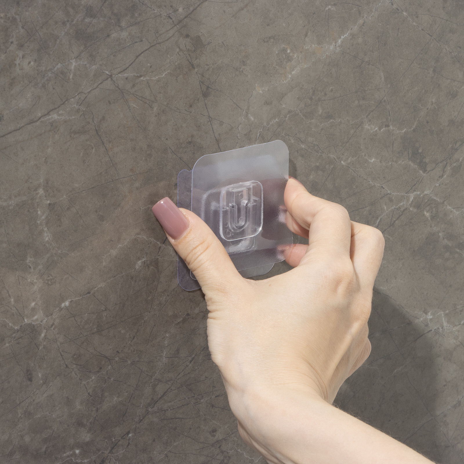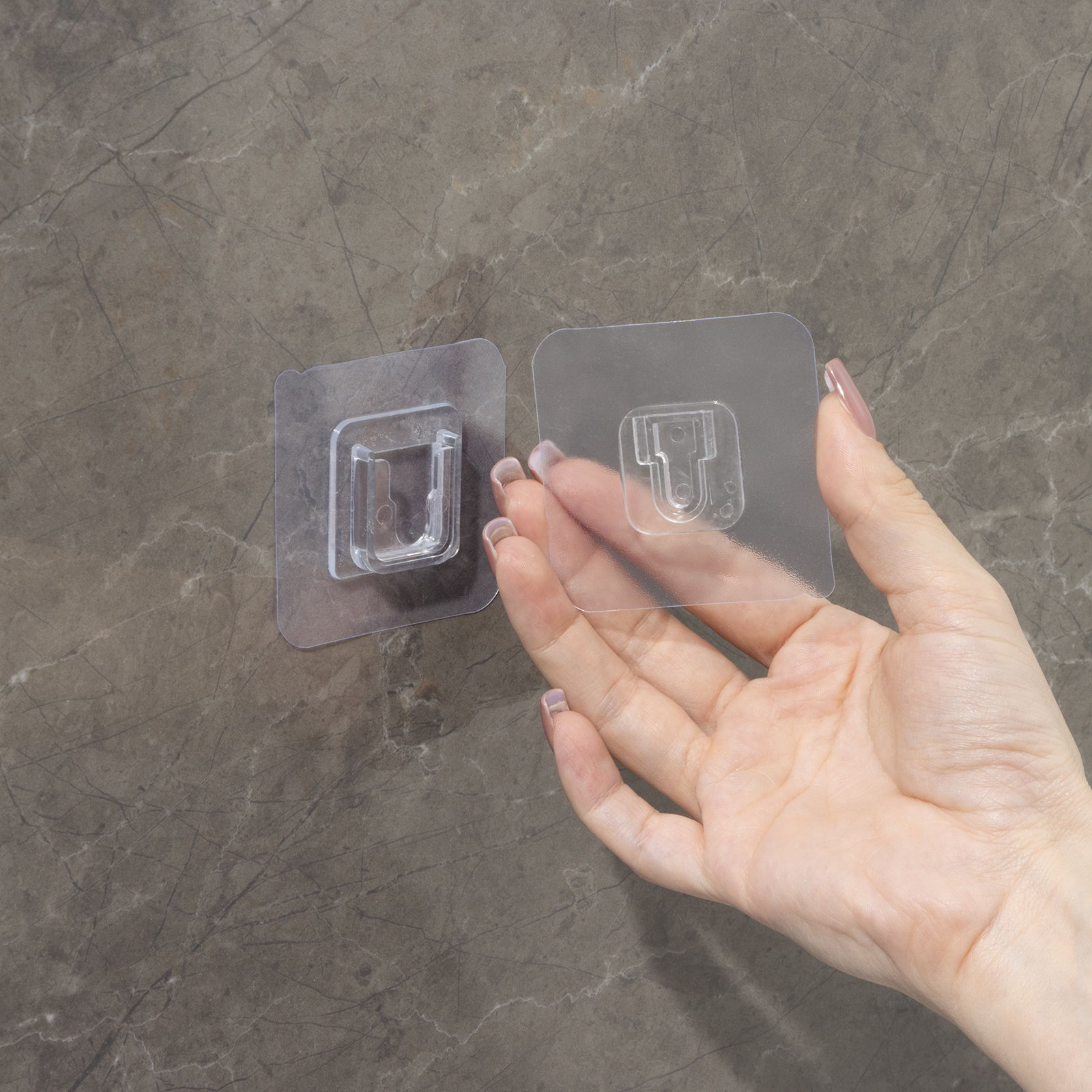 Крючок держатель самоклеящийся 2 детали, 5.7x5.7x1 см, прозрачный, 5.7x5.7x1 см., Доляна, Китай