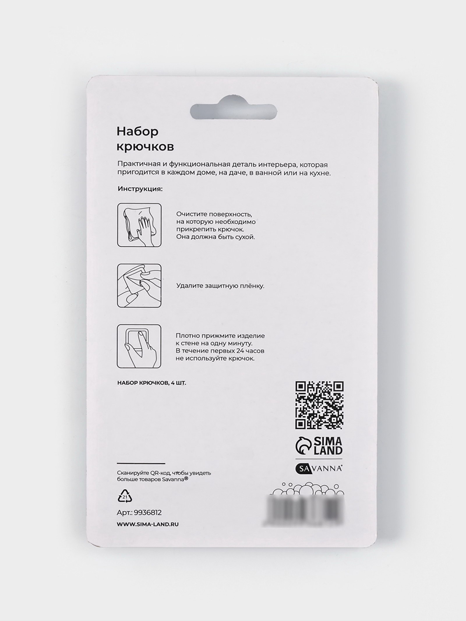 Размер упаковки: 17 x 1.5 x 10.5 см. На клеевой основе: Да Вид крючка: Самоклеящийся Вид установки: Настенный (навесной) Особенности: Без особенностей Цвет: Чёрный Набор: Да С полочкой: Нет Вид крепления: Клеевая основа Количество крючков: 4 tnved: 8302500000 Набор металлических самоклеящихся крючков SAVANNA Black Loft Gear состоит из 4 штук с гранью 2 см Они идеально подходят для использования в ванной комнате, кухне, прихожей и других помещениях. Крючки легко крепятся к любой поверхности благодаря самоклеящейся основе и надёжным липучкам.