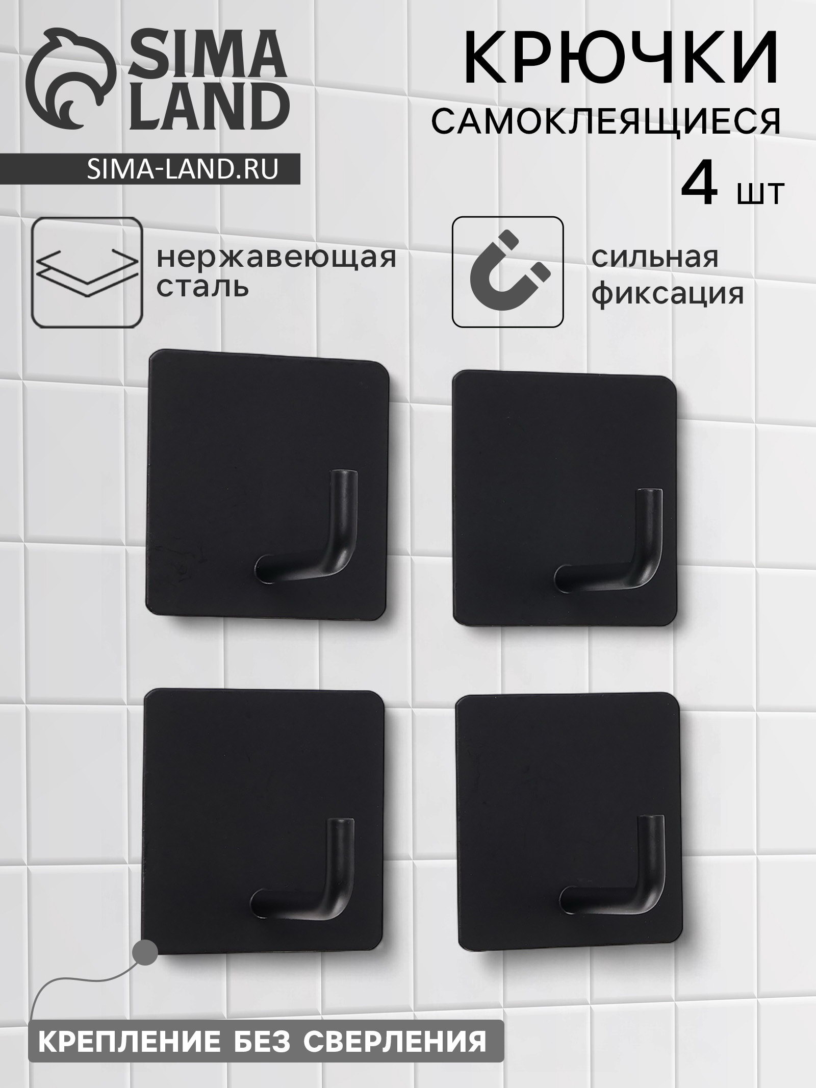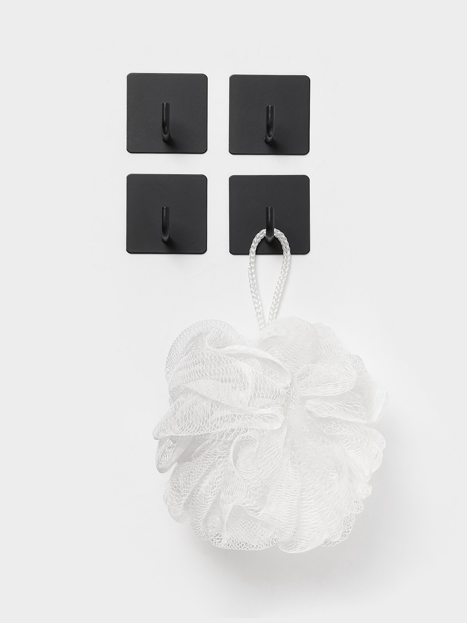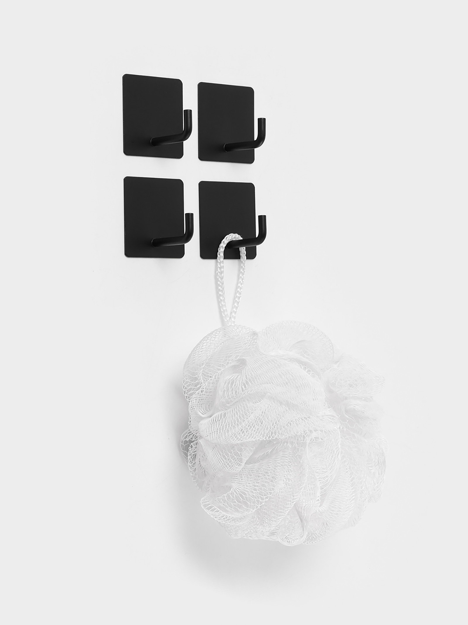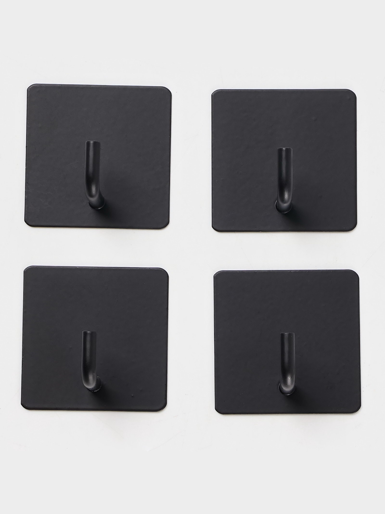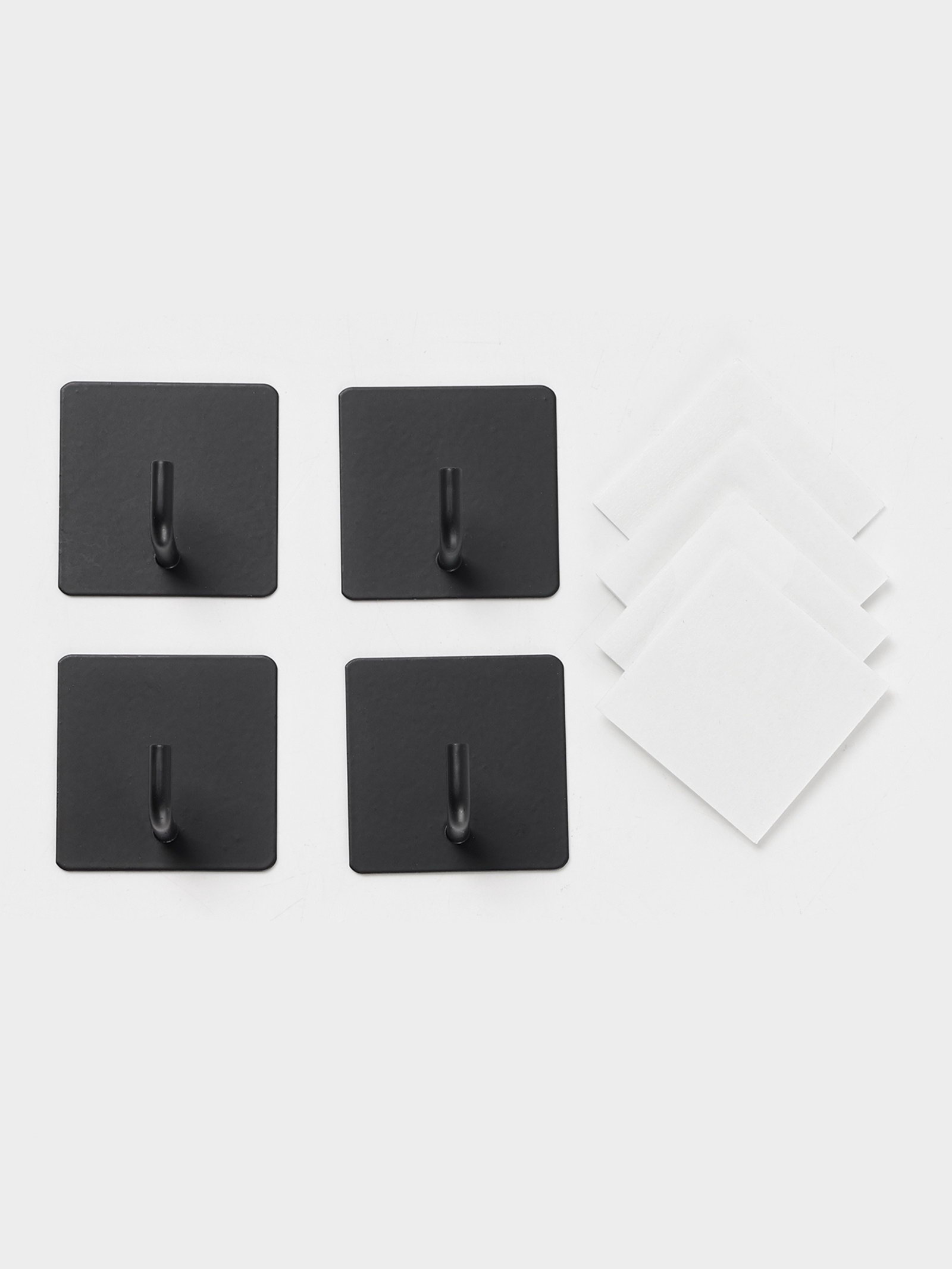 Набор крючков металлических на липучке 4 шт., чёрный, 4.5x4.5x3 см., Китай