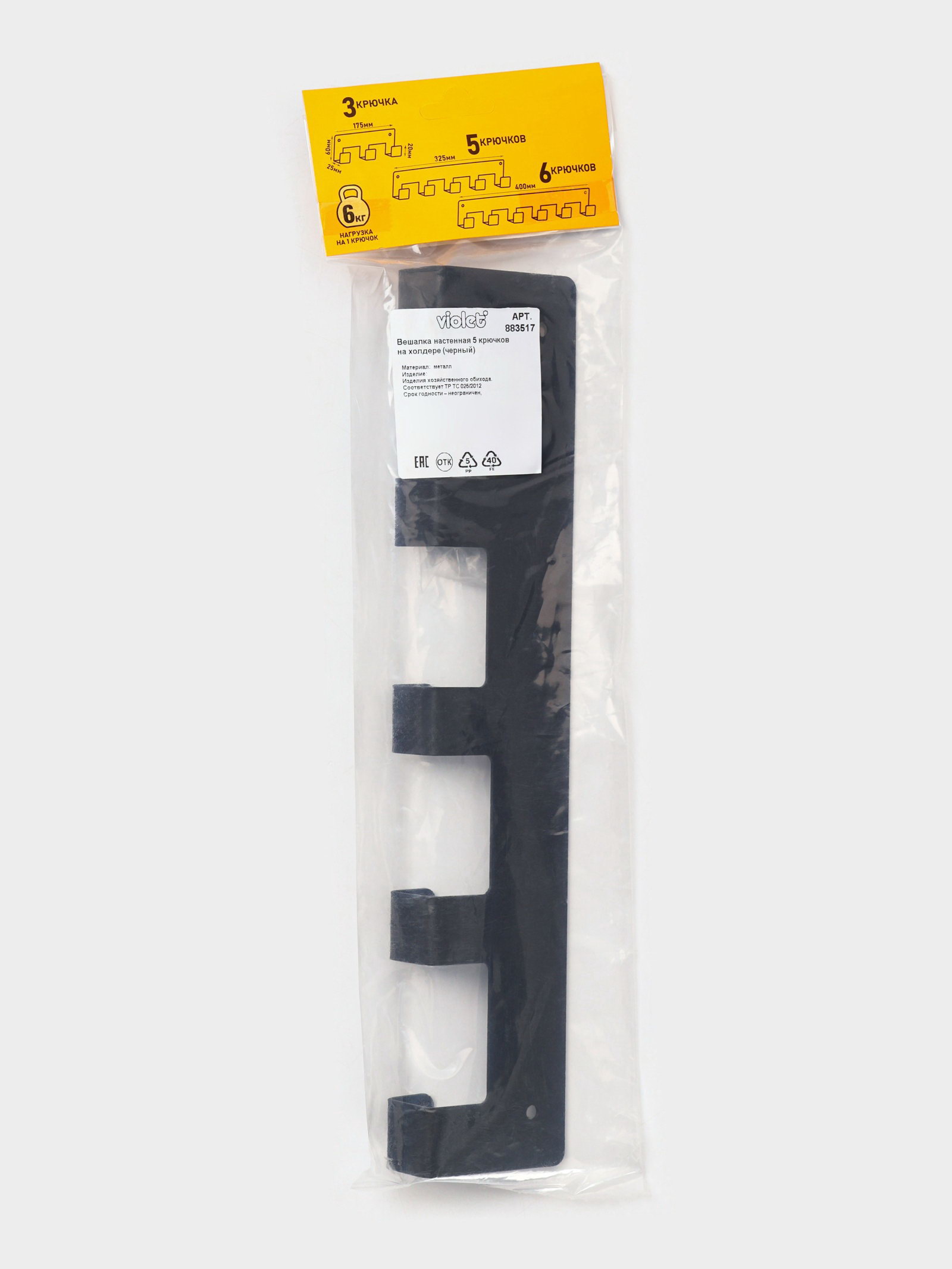 Вешалка настенная, 5 крючков, чёрная, Россия