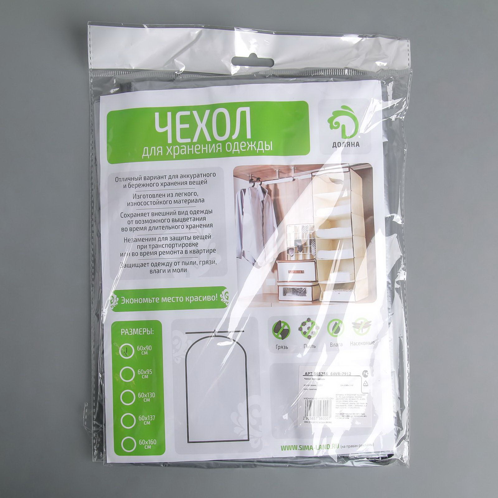 Чехол для одежды 60x90 см, серый, 60x2x90 см., Доляна, Китай