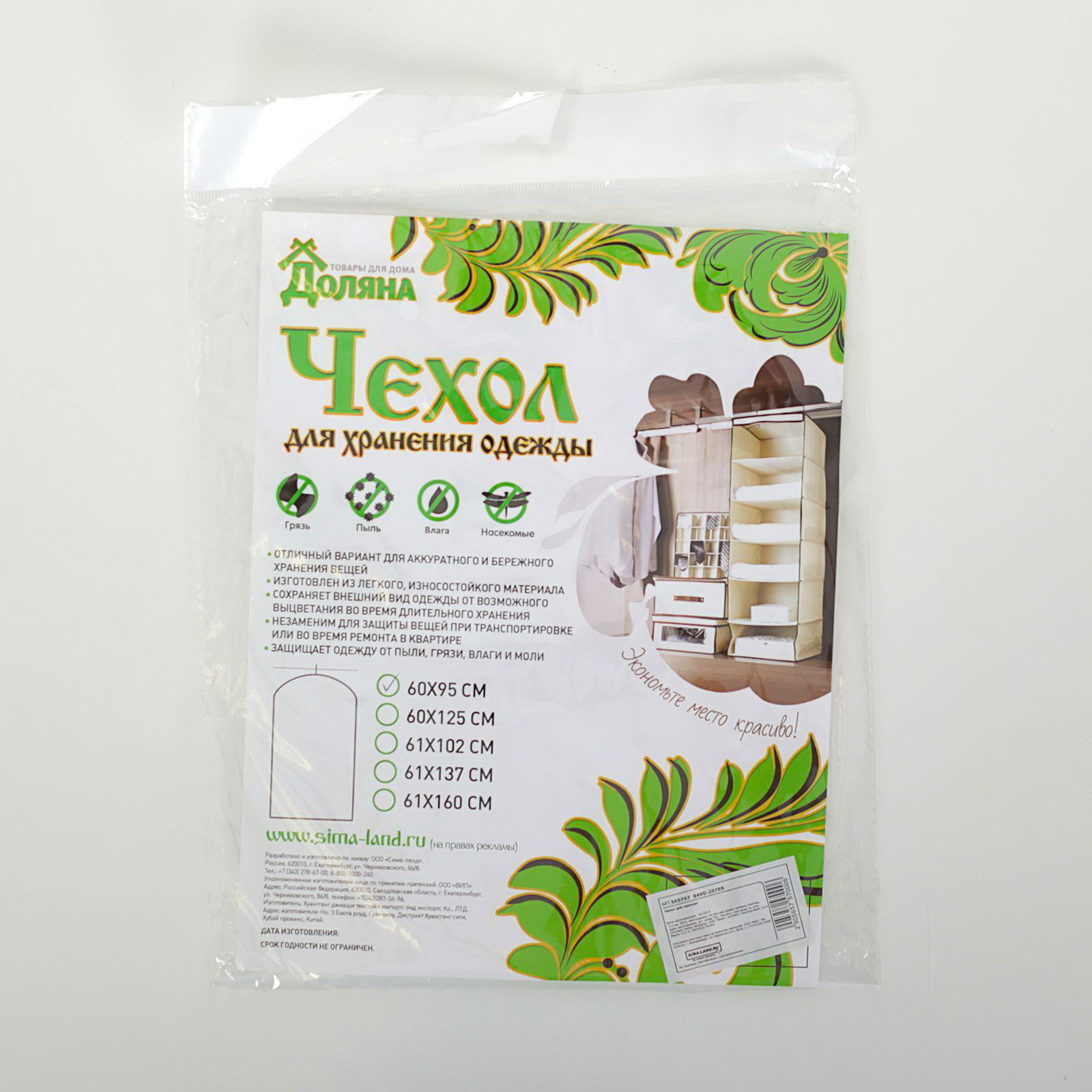 Размер упаковки: 21 x 1 x 26 см. Вид: Чехол для одежды Цвет: Чёрный Цвет: Чёрный tnved: 3924900000 Размер, см: 60 x 90 Набор: Нет Рисунок: Нет Чтобы ваша одежда служила вам долго, необходимо правильно за ней ухаживать. Грамотное хранение позволит продлить срок её службы и сохранить привлекательный внешний вид. Поможет нам в этом чехол для одежды ! Преимущества