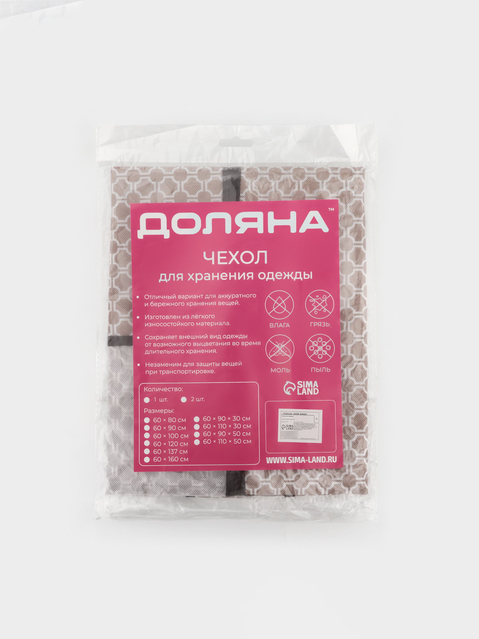 Чехол для одежды "Браун", ПВХ окно, плотный, 90x60 см, коричневый, 0.3x60x90 см., Доляна, Китай