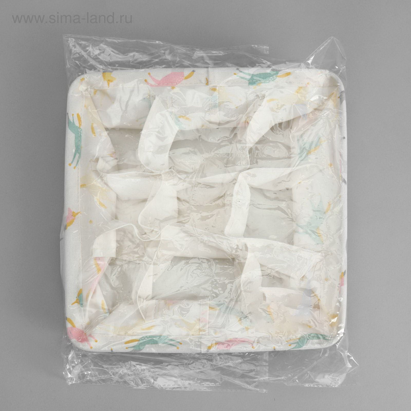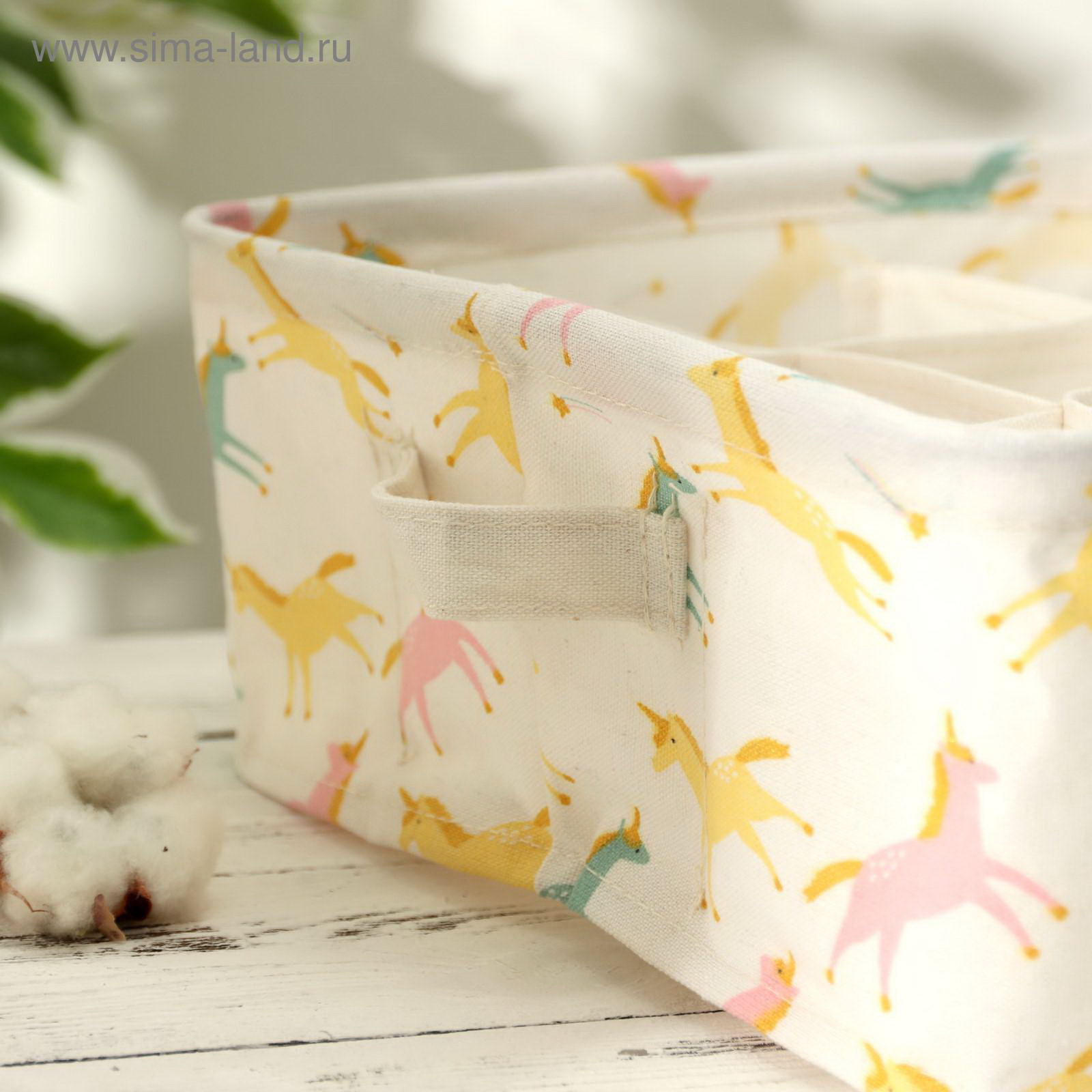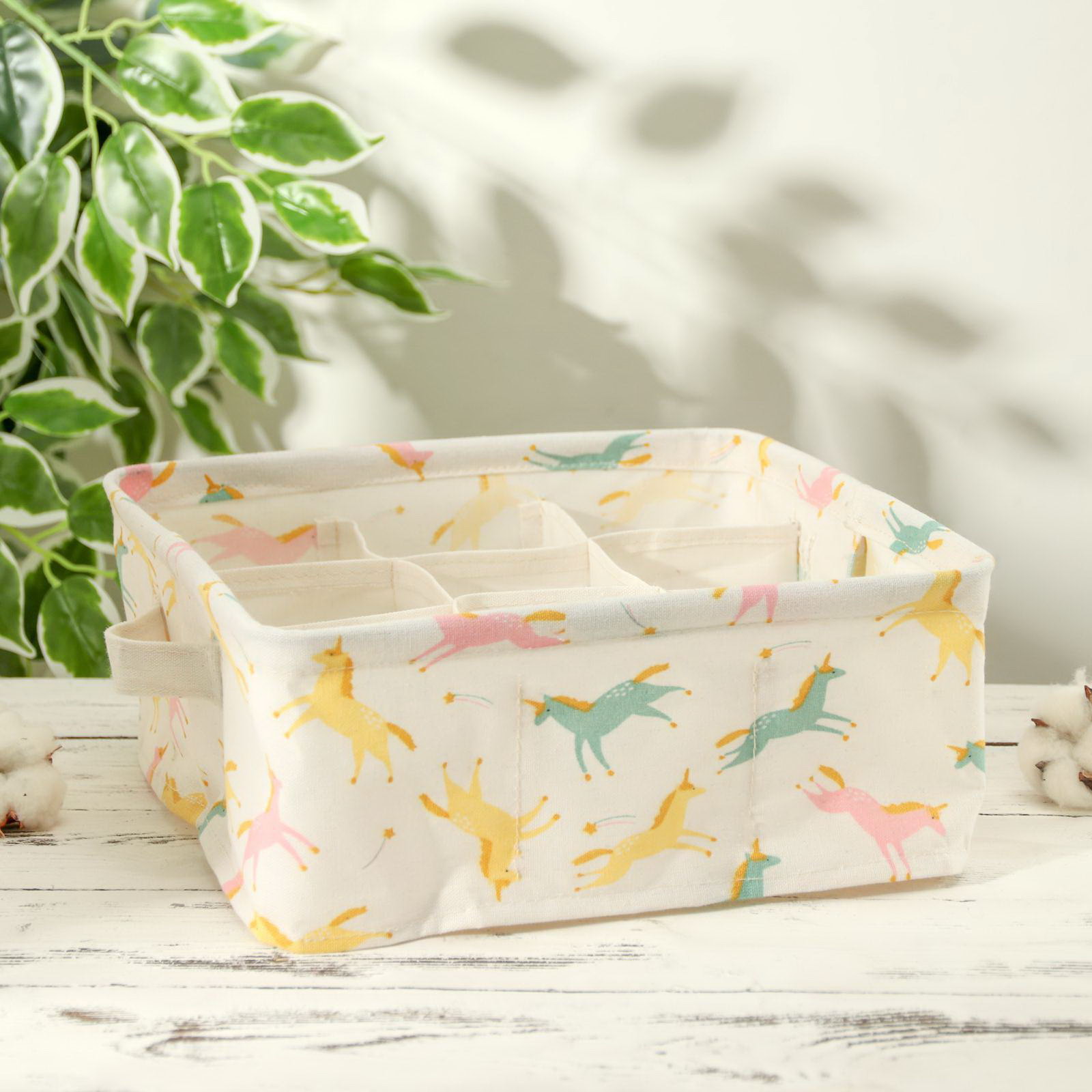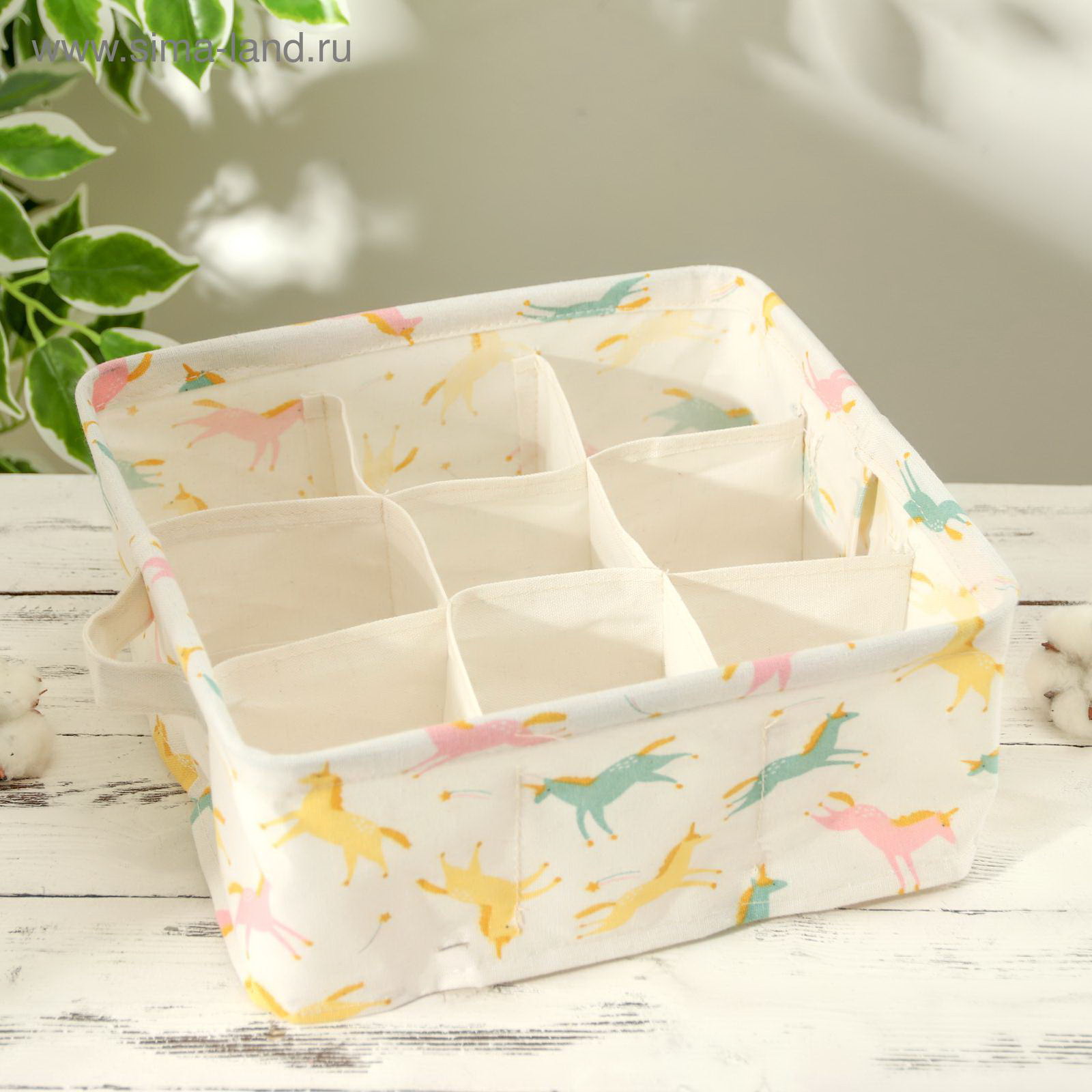 Органайзер для хранения с ручками "Единорожки", 9 ячеек, 28x28x12 см, цвет белый, 28x28x12 см., Китай