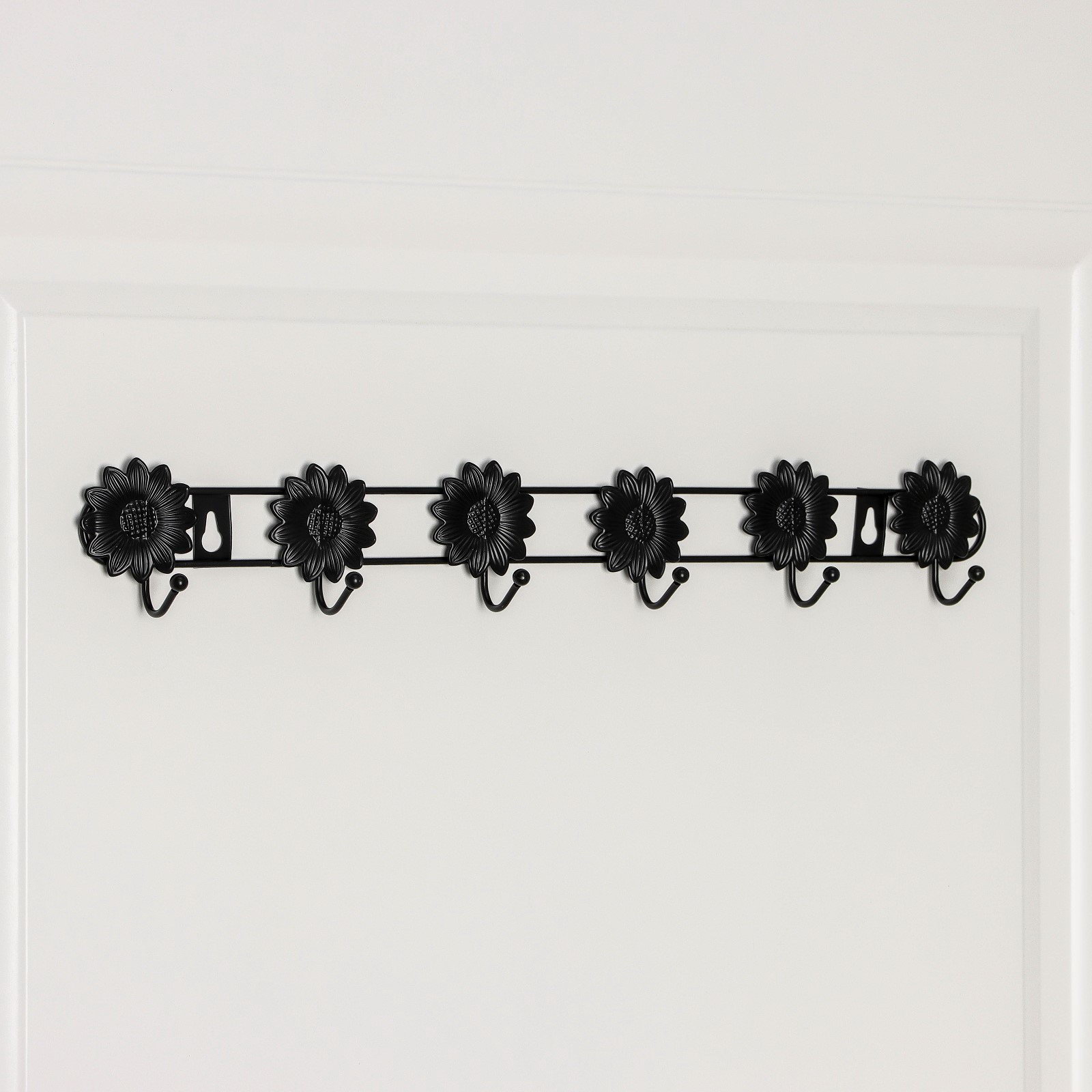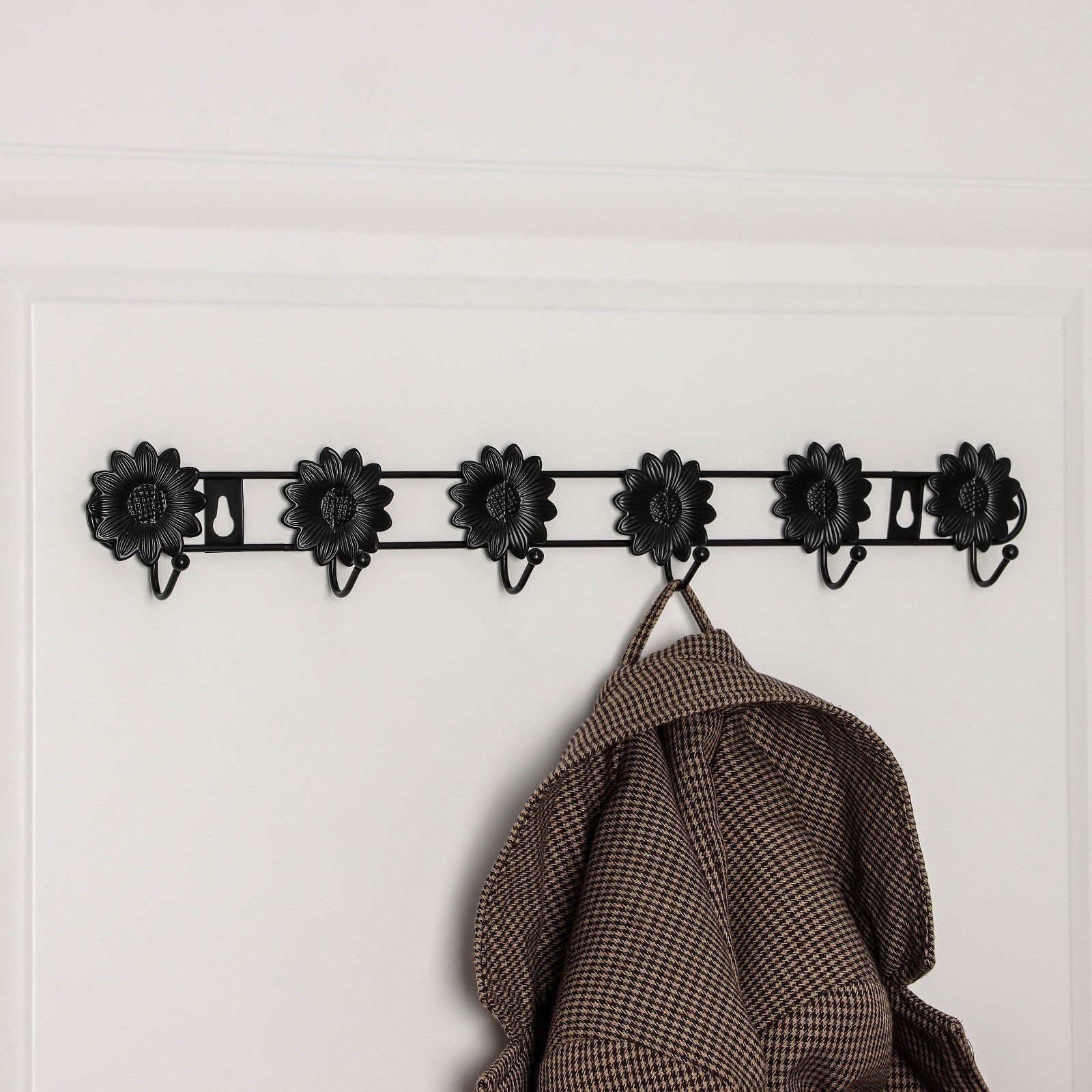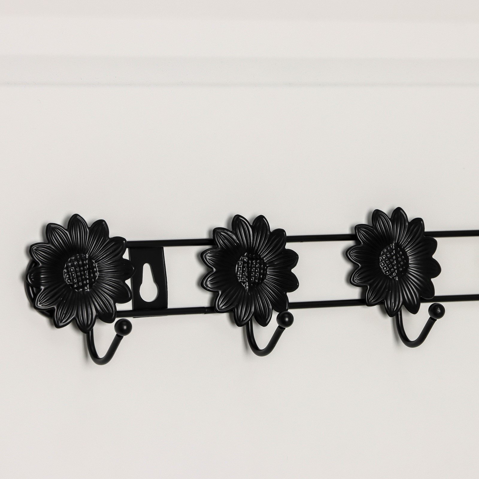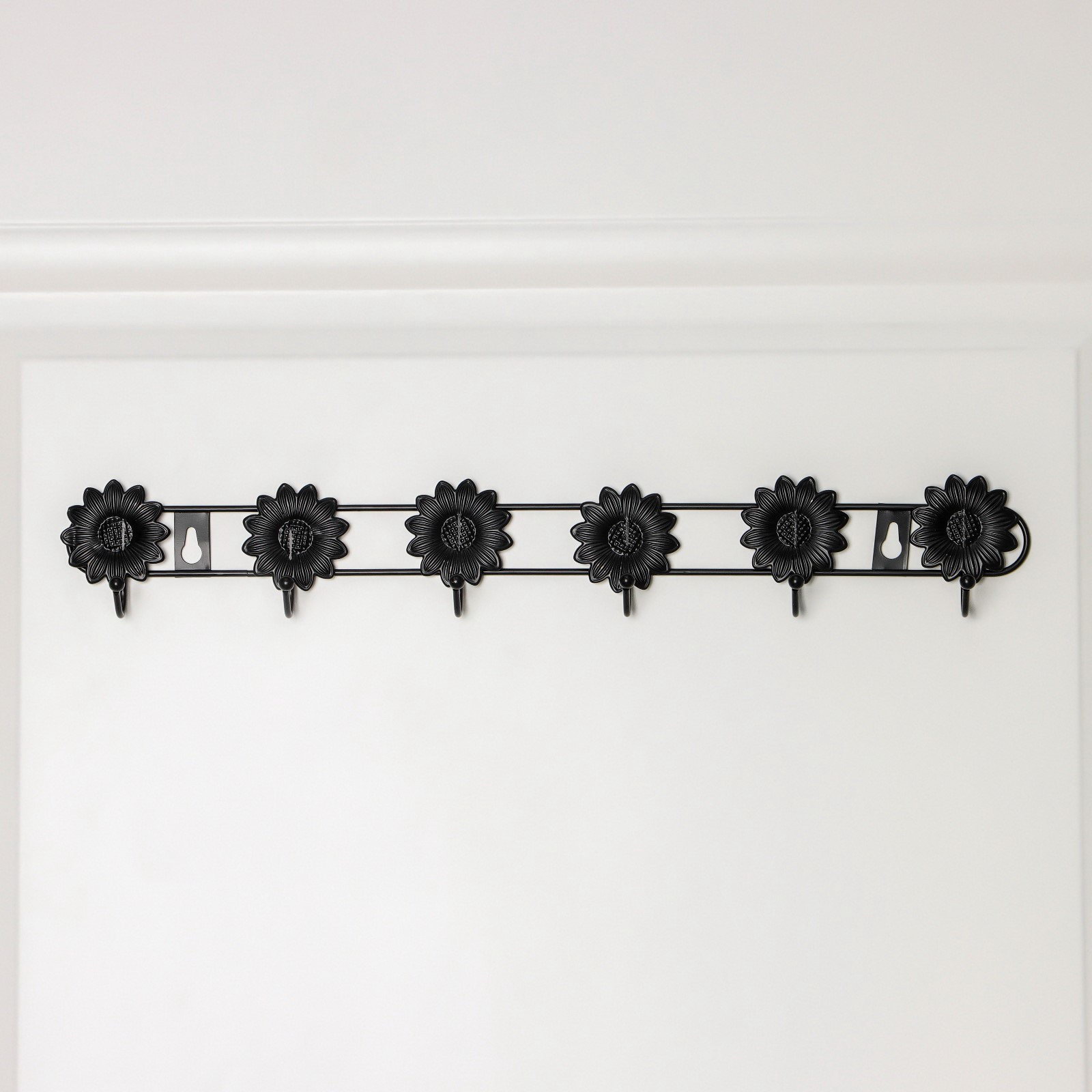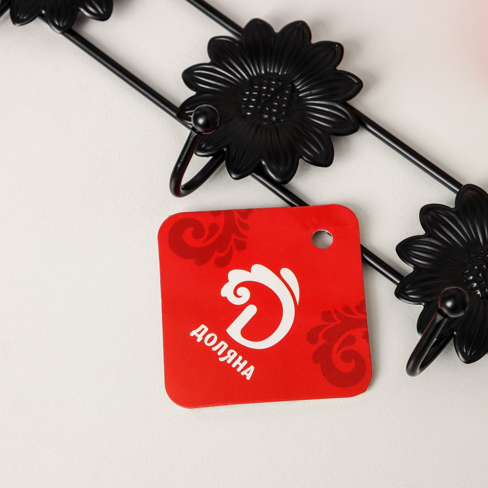 Вешалка настенная на 6 крючков "Ромашки", 41.5x5.5x3 см, цвет чёрный, 5x41.5x3 см., Доляна, Китай