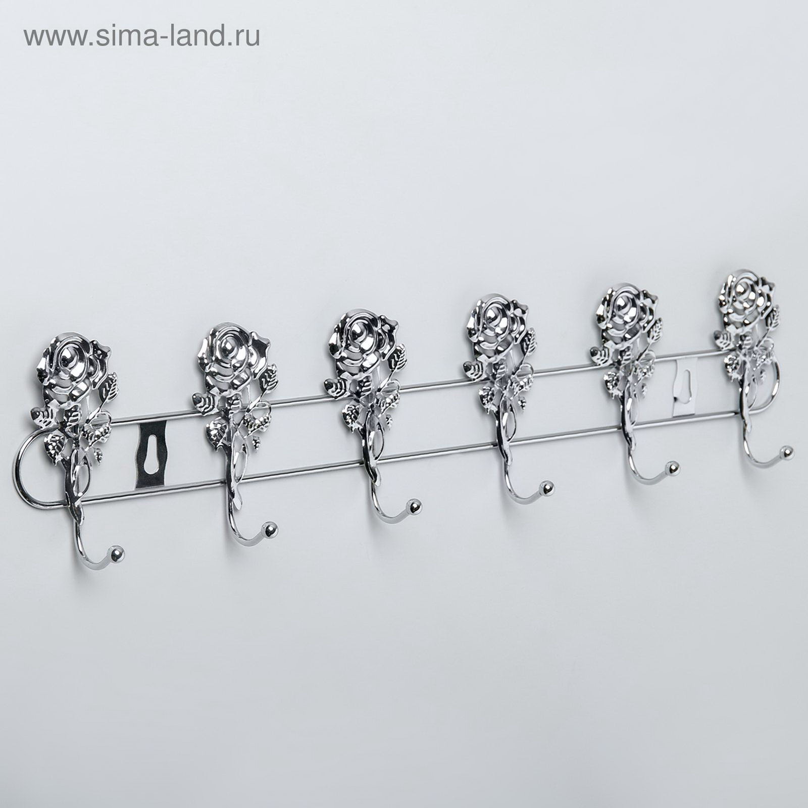 Вешалка настенная на 6 крючков "Розы", 42x8.9x3.3 см, цвет серебряный, 3x34x9 см., Доляна, Китай