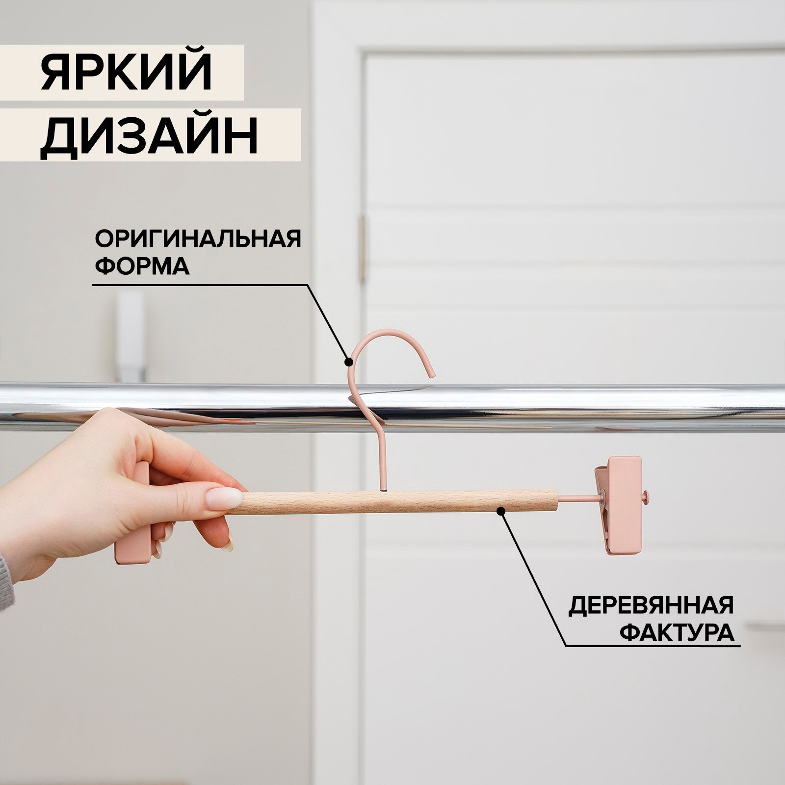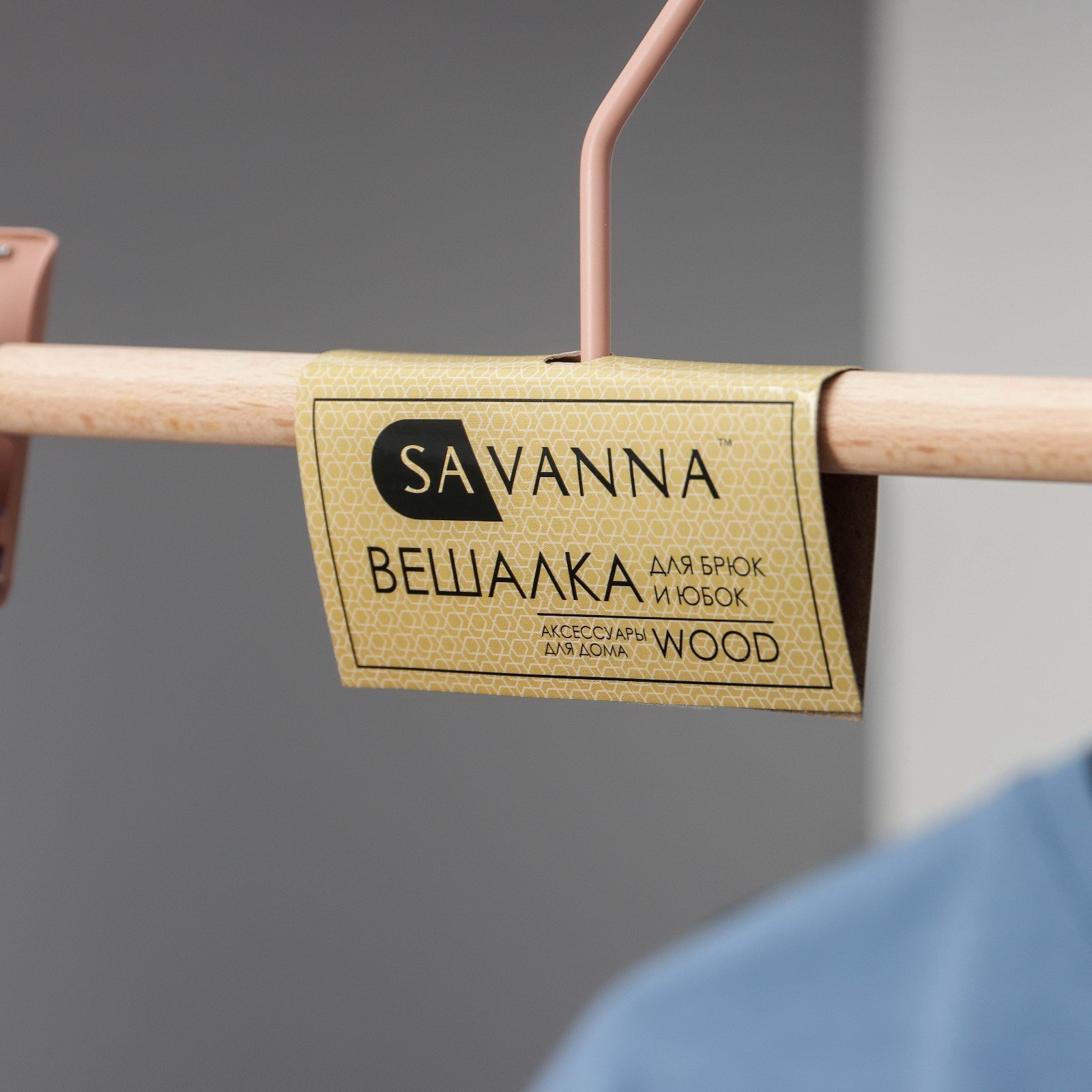 Плечики для брюк и юбок Wood, 28x13x2.8 см, розовые, SAVANNA, Китай