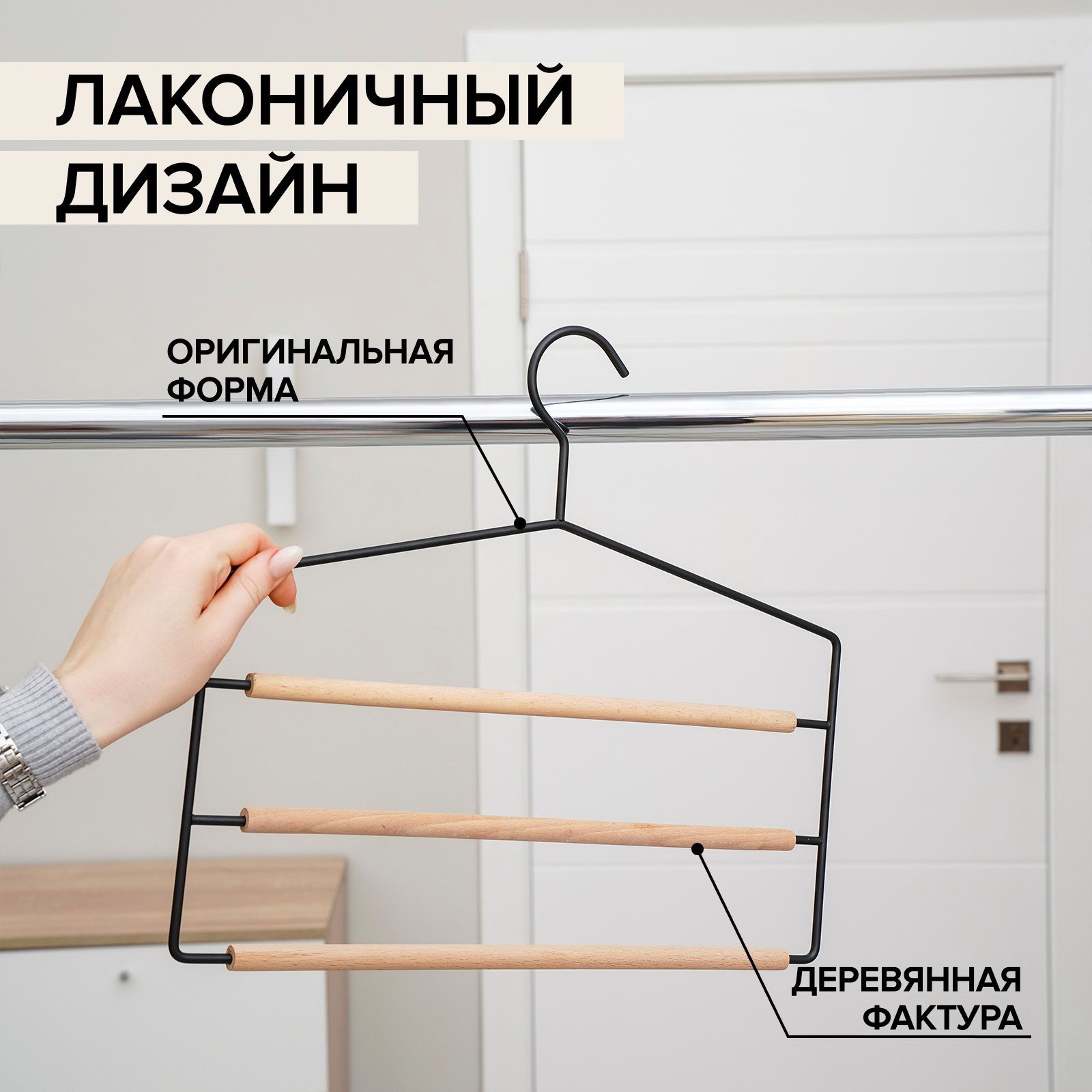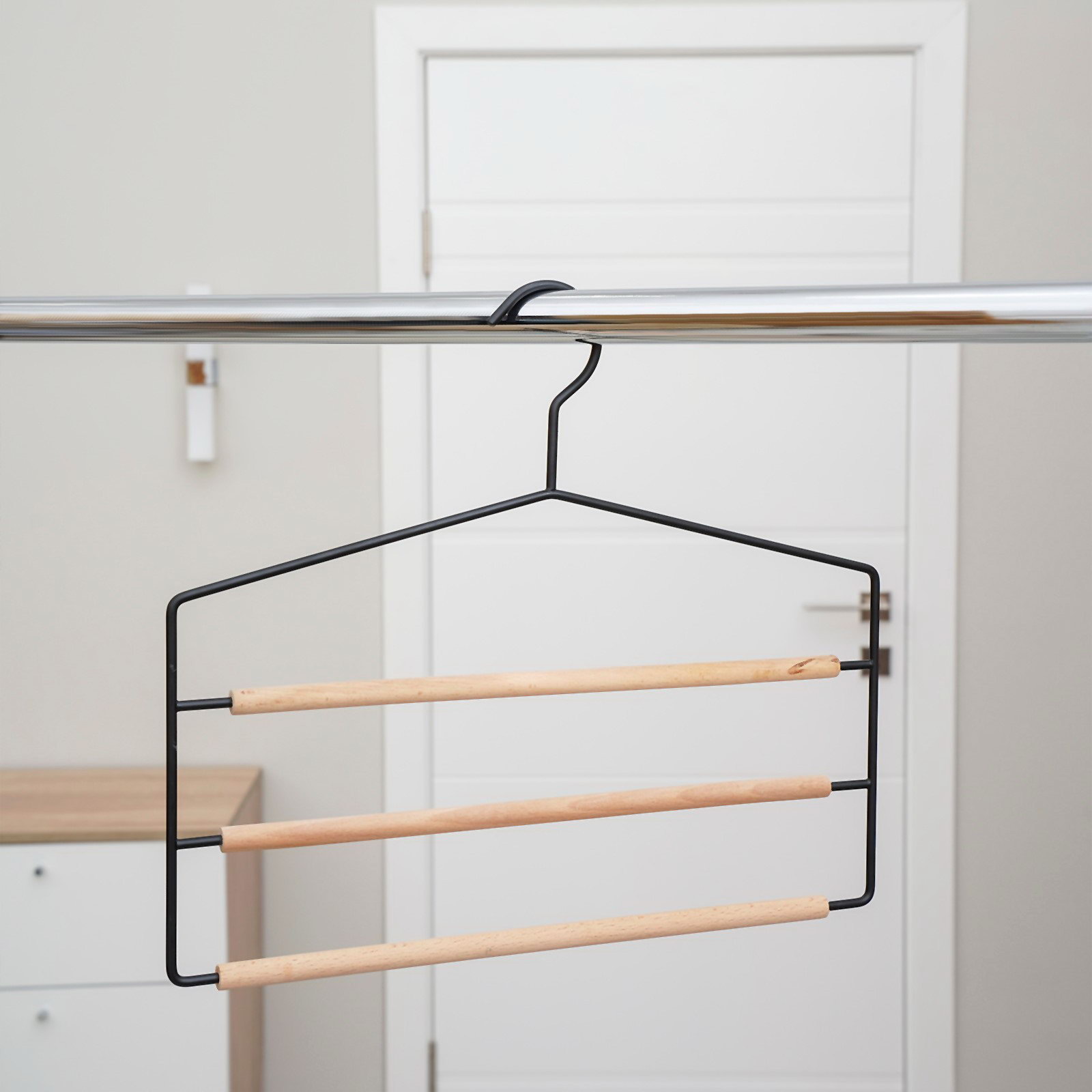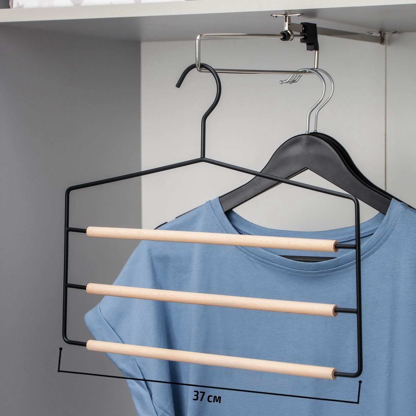 Плечики - вешалки многоуровневые для брюк и юбок Wood, 3 перекладины, 37x32x1.1 см, чёрные, 32x37x1.1 см., SAVANNA, Китай