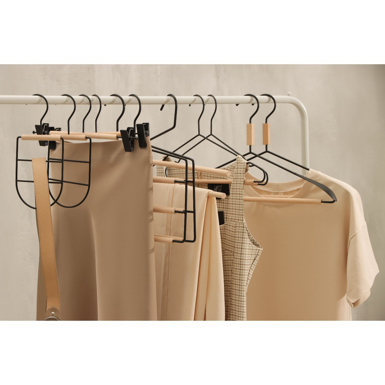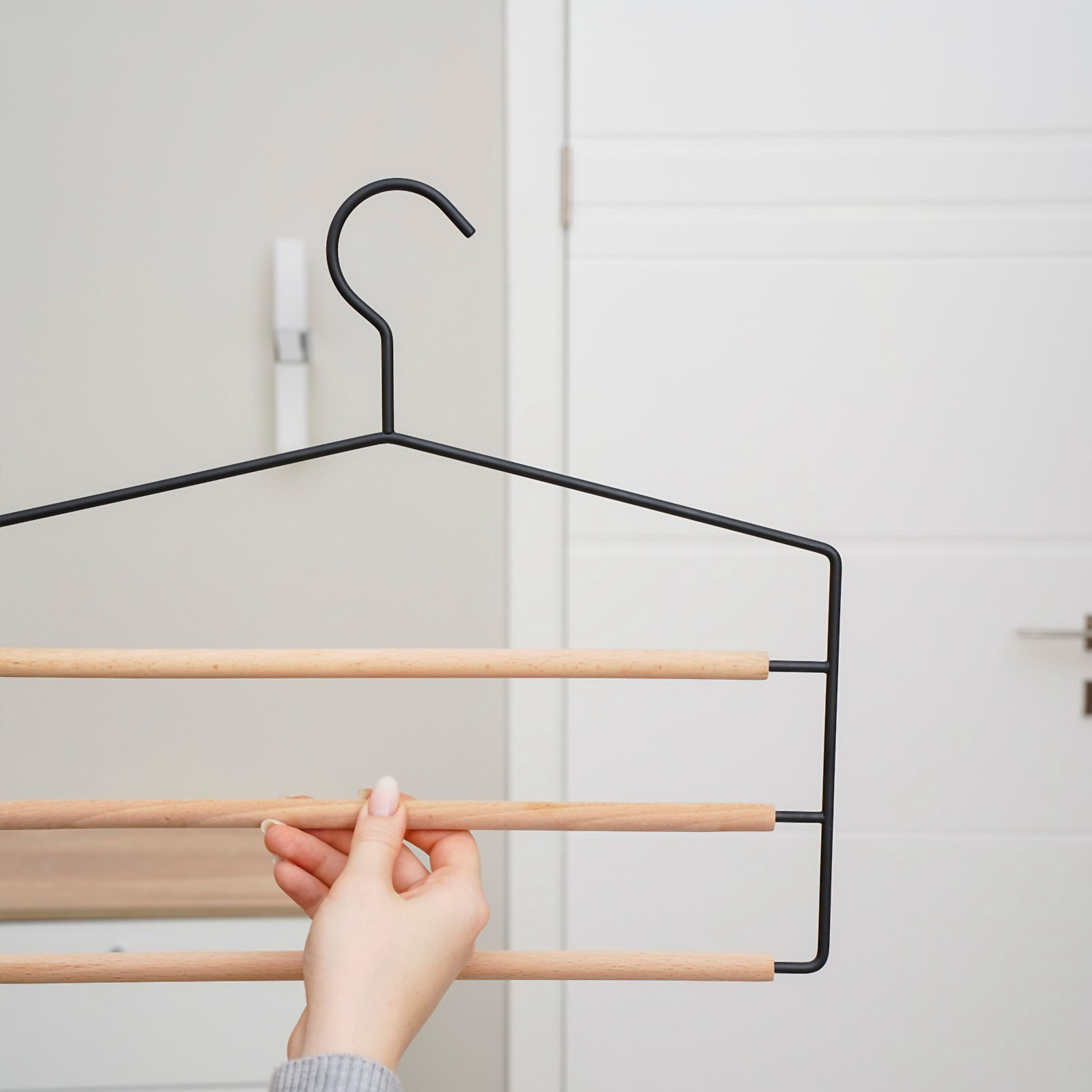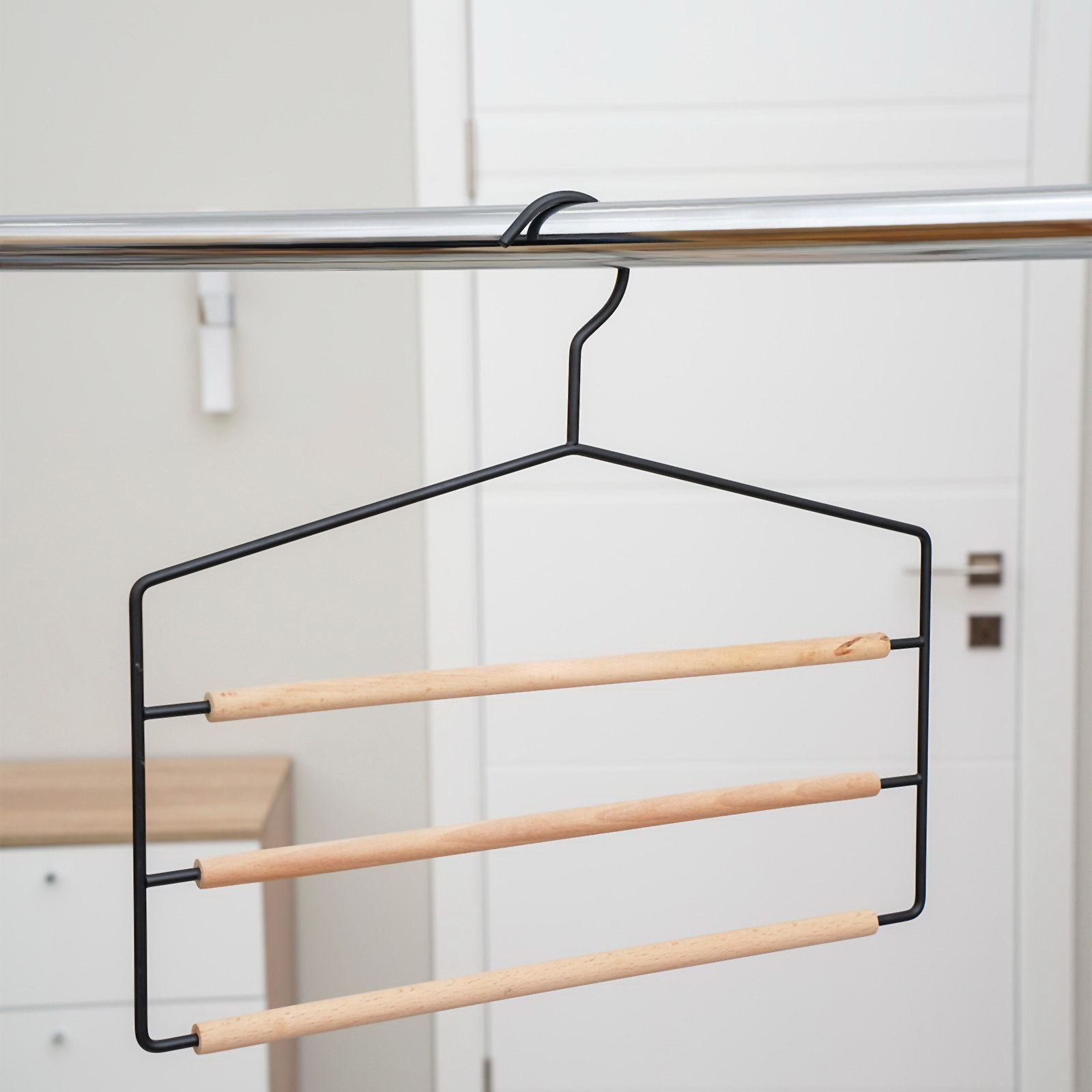 Плечики - вешалки многоуровневые для брюк и юбок Wood, 3 перекладины, 37x32x1.1 см, чёрные, 32x37x1.1 см., SAVANNA, Китай