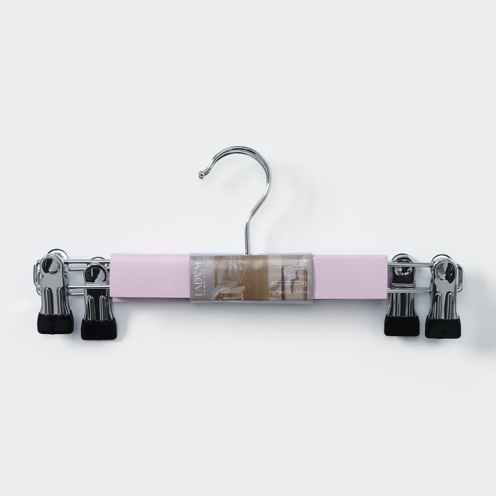 Вешалки для брюк и юбок Brillant, 28x12x2.8 см, 2 шт., деревянные, с зажимами, розовые, 12x28x2.8 см., LaDо?m, Китай