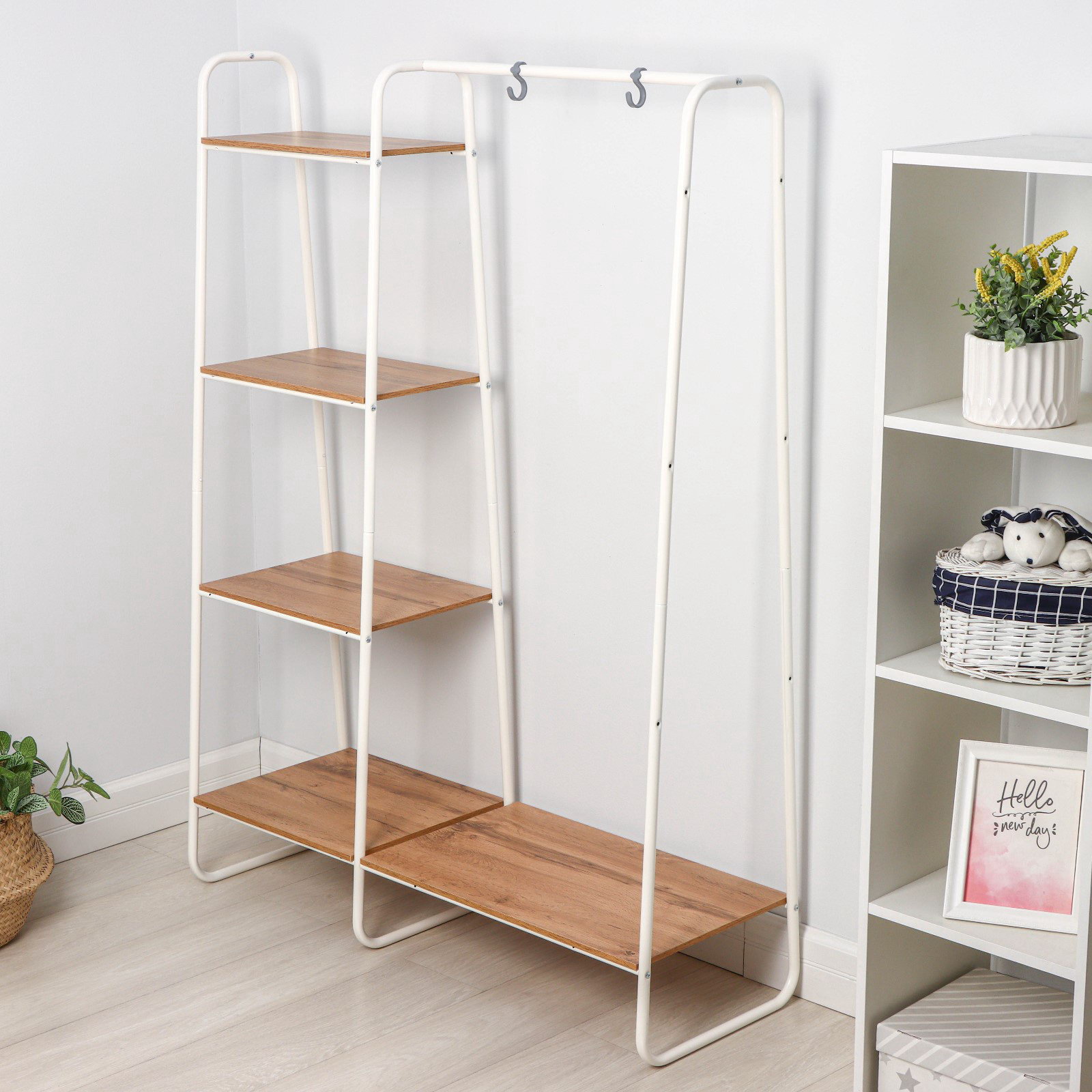 Размер упаковки: 44.6 x 10.1 x 80.6 см. Высота, см: 147 Поставляется в разобранном виде: Да Вид установки: Напольный С полочкой: Да Количество крючков: 1 Цвет: Белый Вид вешалки: Гардеробная tnved: 9403208000 tnved: 9403208000 Количество полок: 5 Температурное ограничение: Нет Оттенок: Белый На колёсиках: Нет Maксимальная нагрузка, кг: 30 Все хотят как можно рациональнее и со вкусом использовать пространство в квартире. Способов много: от гвоздя до гардеробной. Если нет возможности и желания крепить вешалку на стену или тратить большую сумму на целую систему, вам подойдёт напольная стойка. Перекладина имеет большую рабочую площадь и крепкое устойчивое основание. Изделие обладает следующими преимуществами: